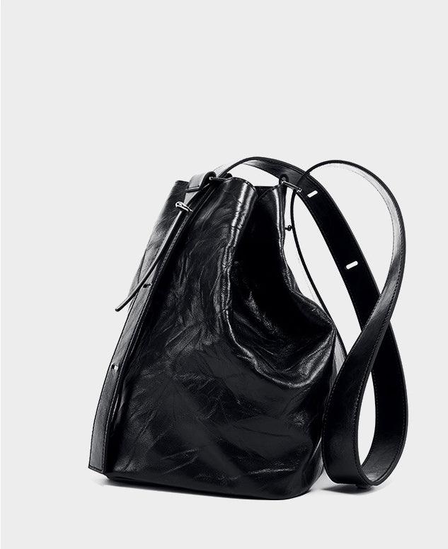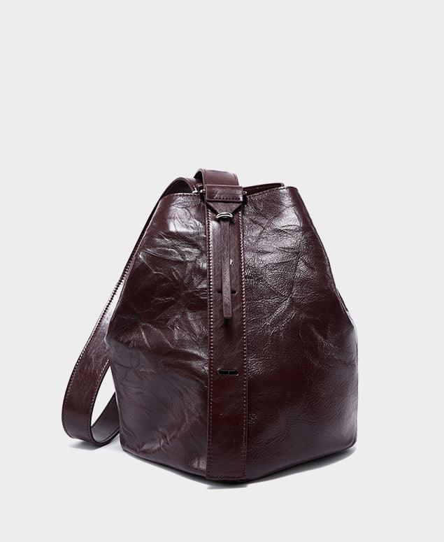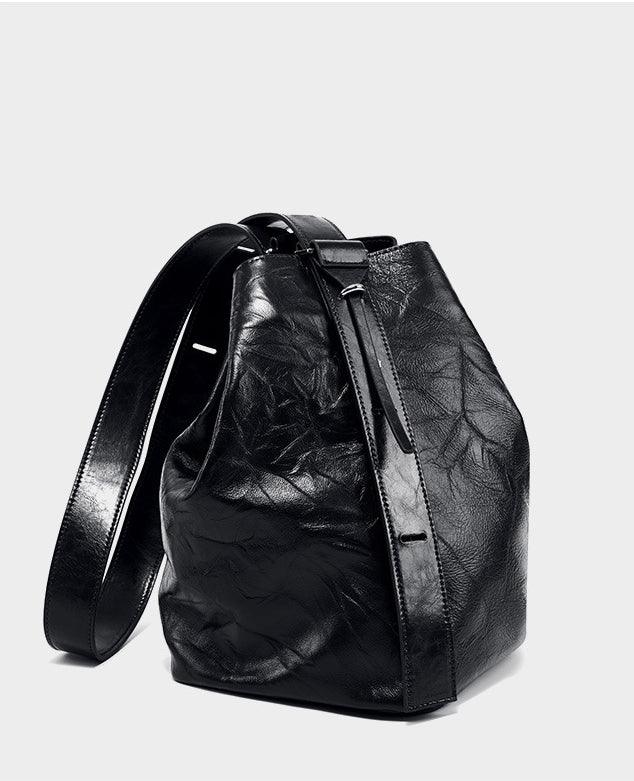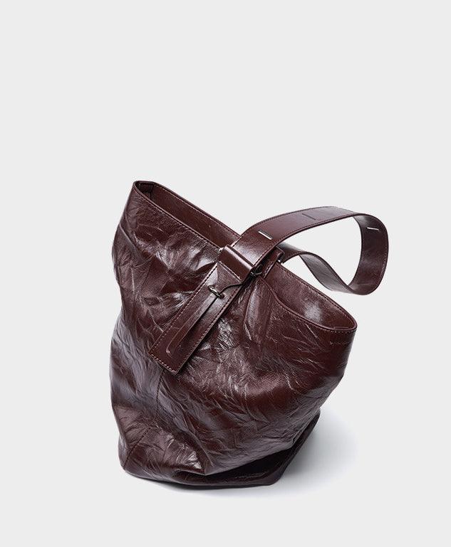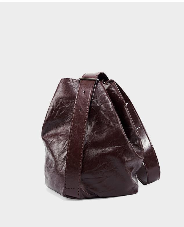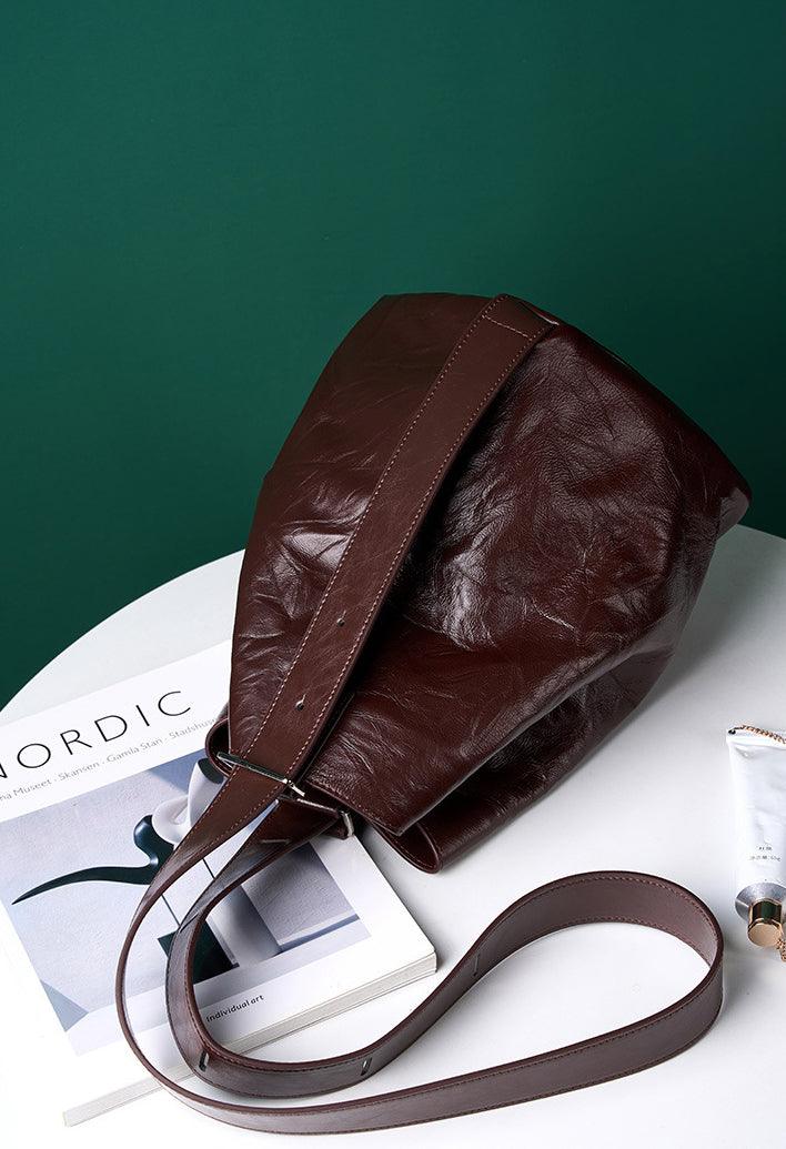 2024 Minimalist Genuine Leather Bucket Bag for Women, Handcrafted Cowhide Leather Shoulder & Crossbody Pleated Design