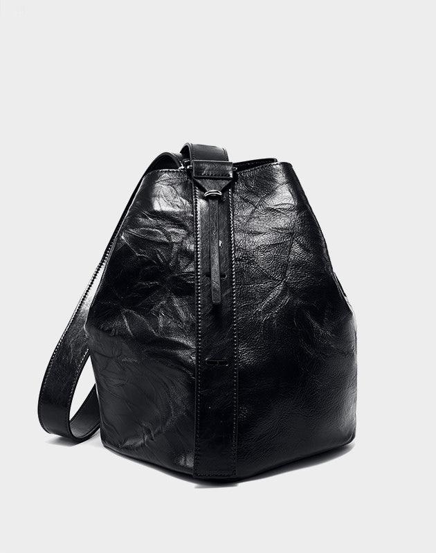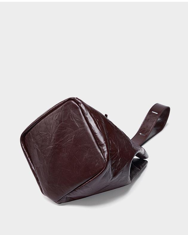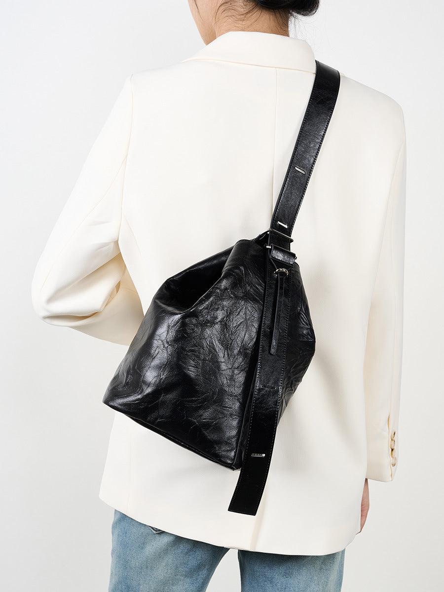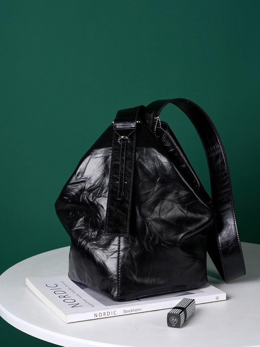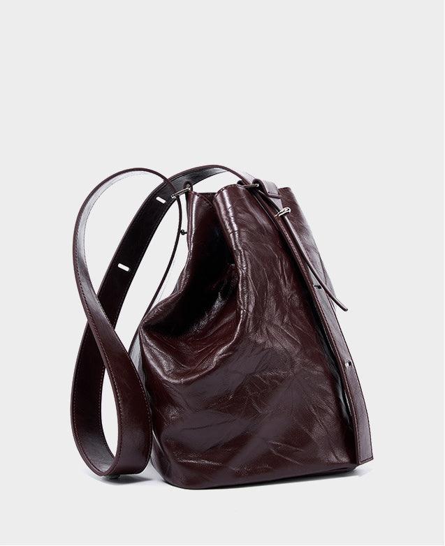 2024 Minimalist Genuine Leather Bucket Bag for Women, Handcrafted Cowhide Leather Shoulder & Crossbody Pleated Design