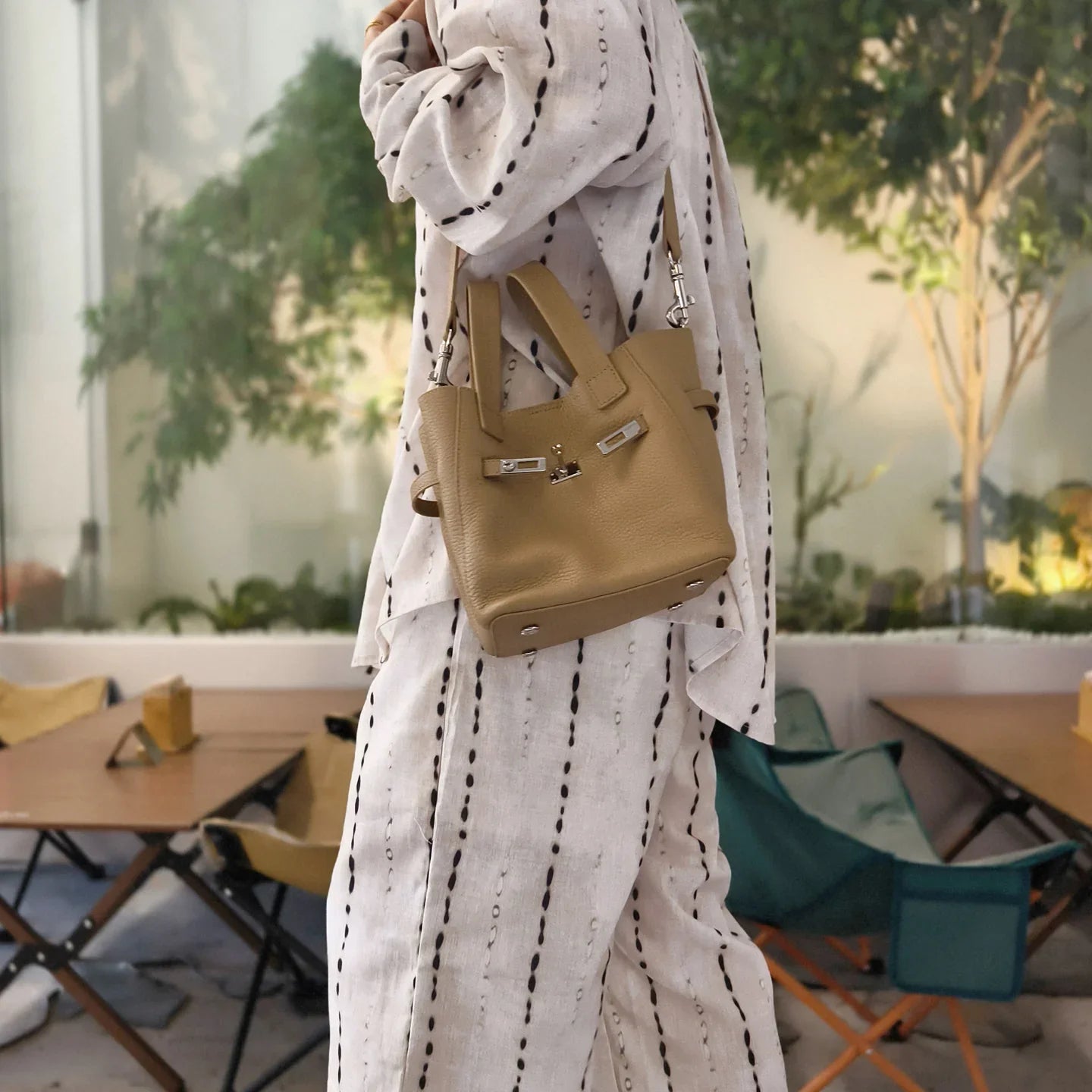 I’m very happy with my woven designer shoulder bag with the gold bow buckle. The quality of the bag is very good and the bag fits everything I need in it. The bag was dispatched promptly and was well packed and came with a thick soft dust bag. Very happy with my purchase.