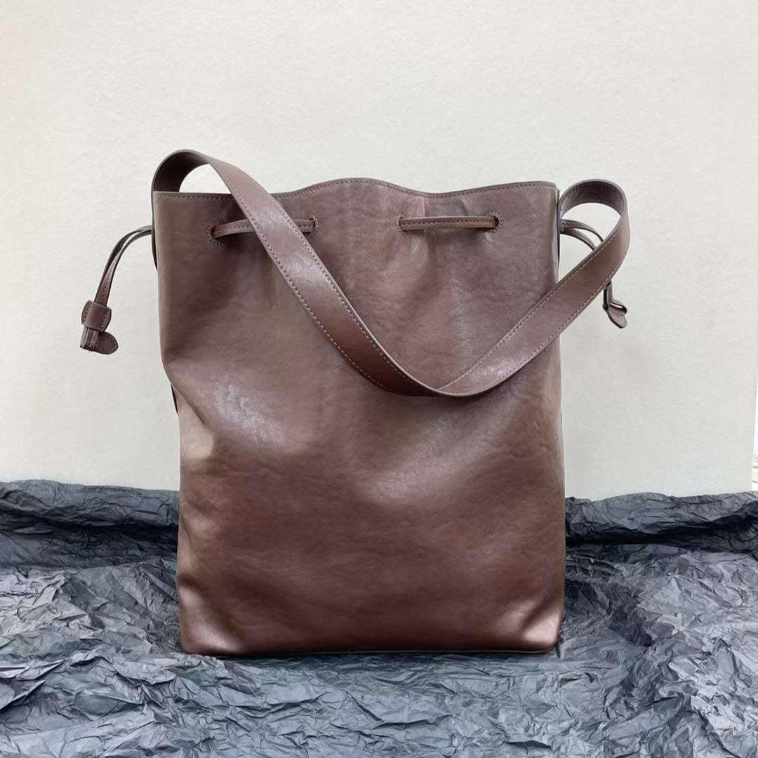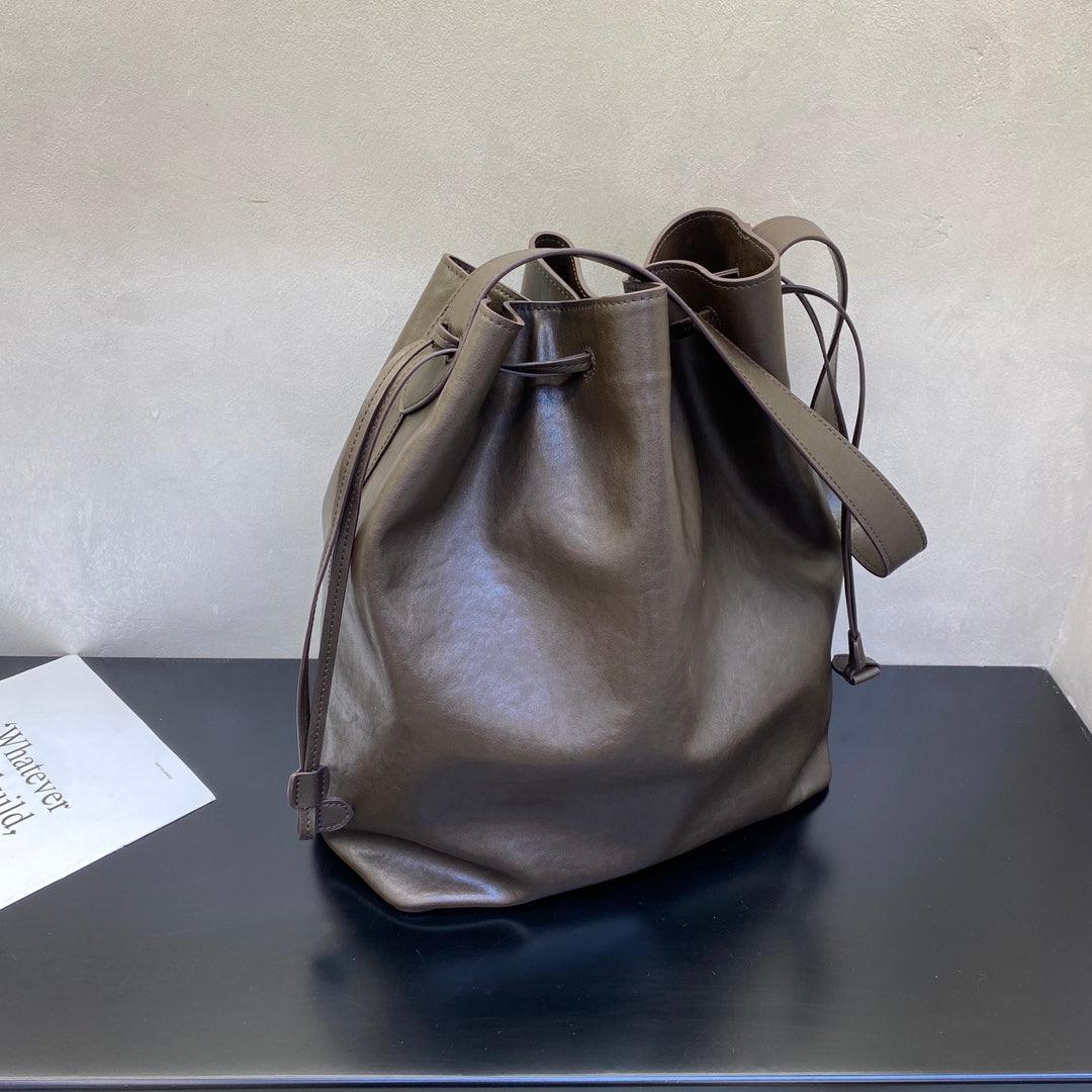 Elegant Cowhide Leather Bucket Tote Bag with Wide Strap– Large Shoulder and Crossbody Bag for Women