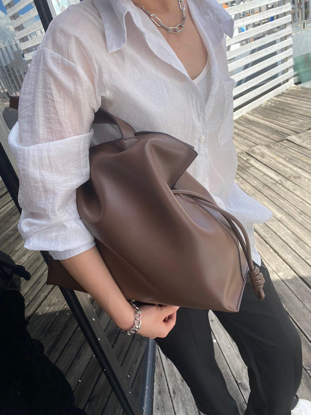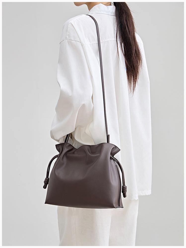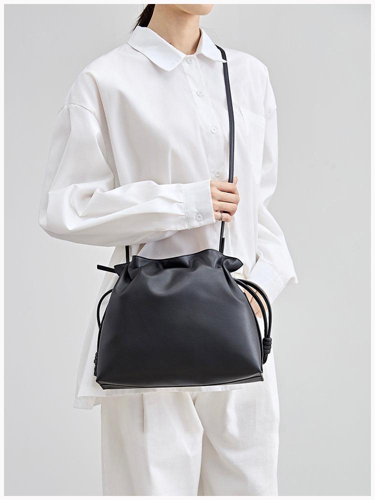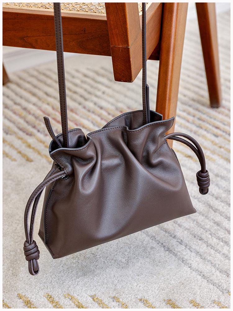 Very light weight, occassional bag. I’ve seen this on many other we sites for less $. I dont believe alexel crafts actually makes this bag since it is offered so widely online. Made me a little disappointed. Feels and smells like leather, lined with cloth. Closes smoothly.