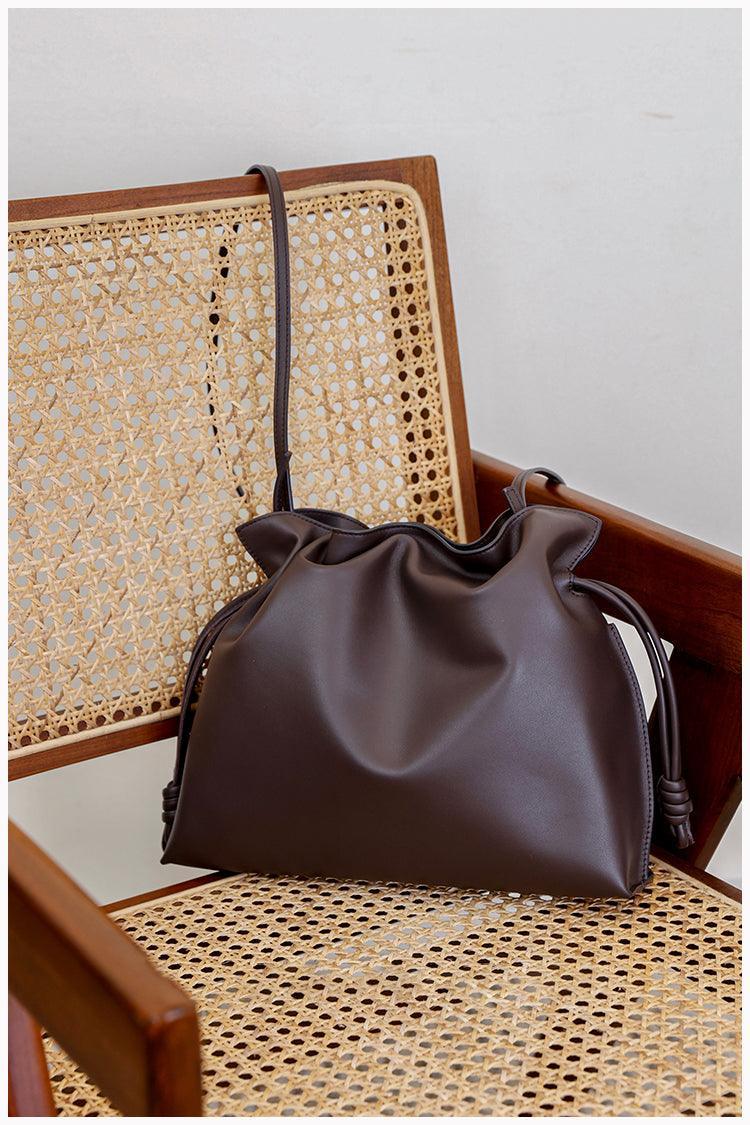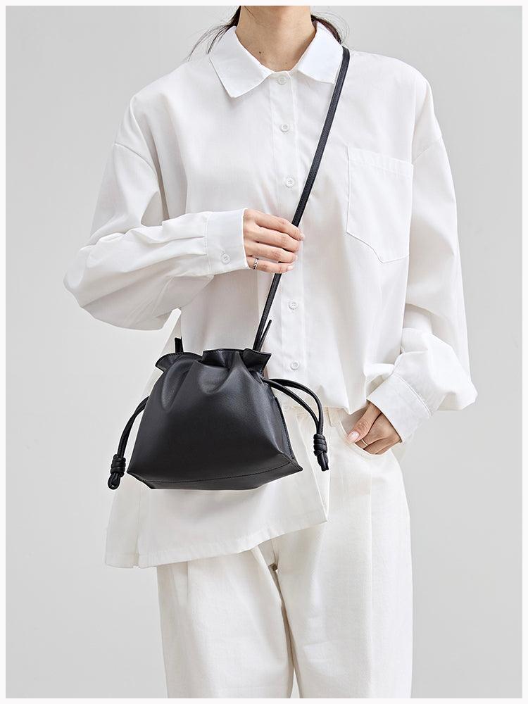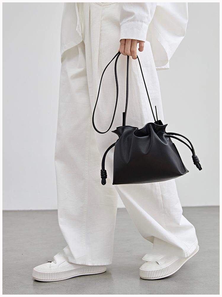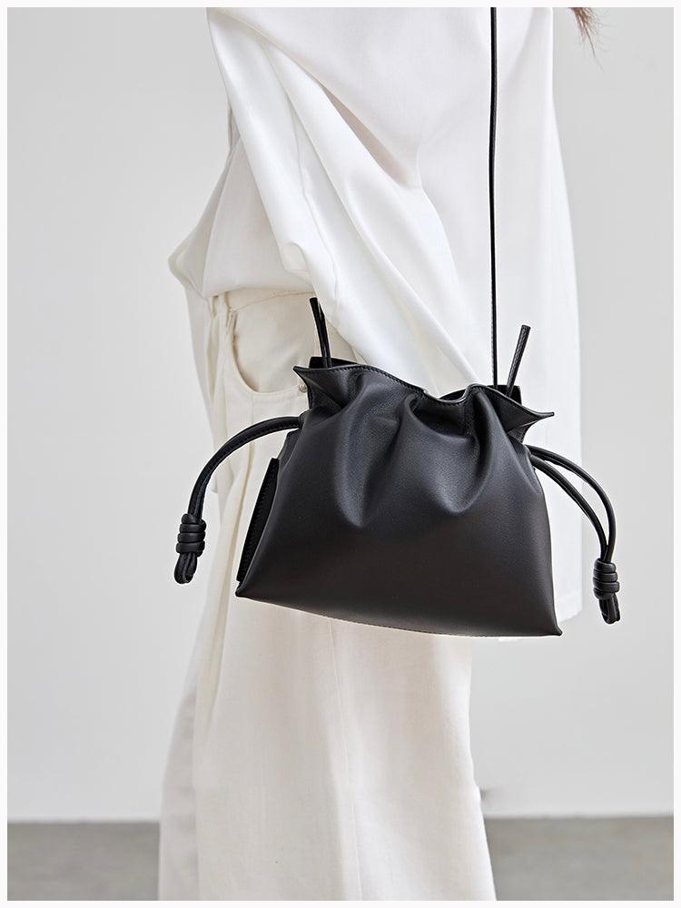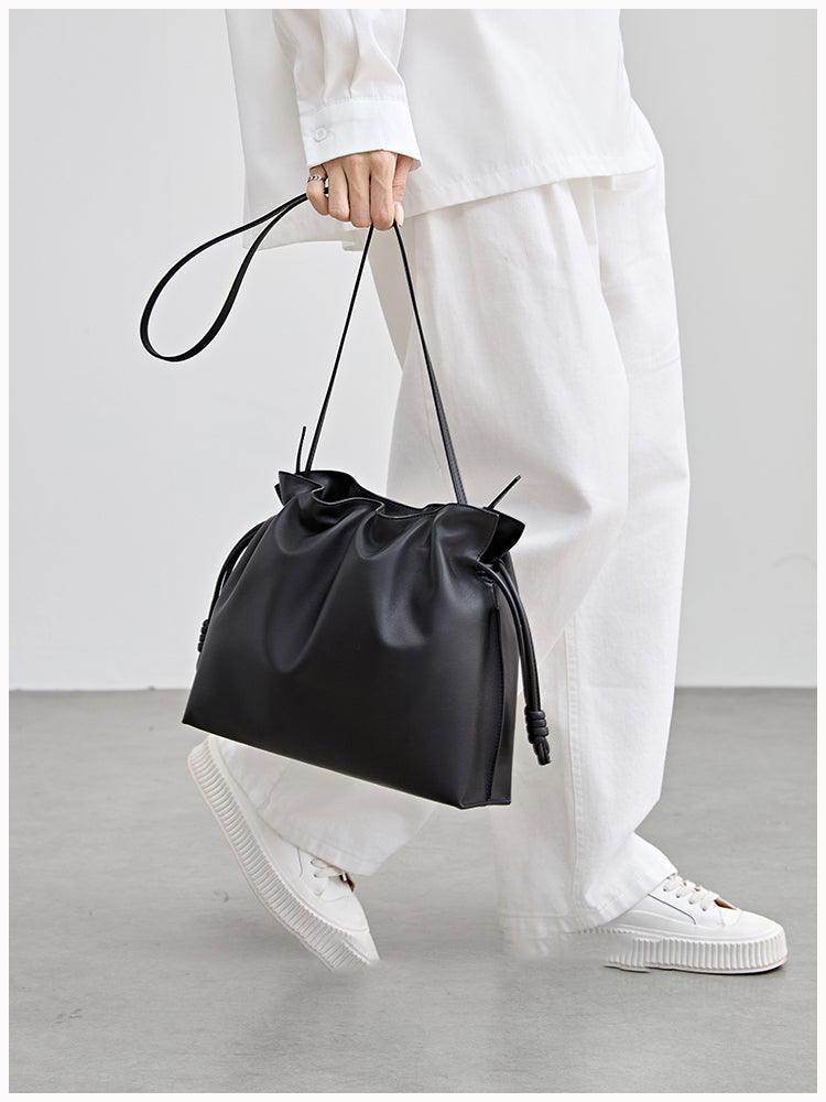 Very light weight, occassional bag. I’ve seen this on many other we sites for less $. I dont believe alexel crafts actually makes this bag since it is offered so widely online. Made me a little disappointed. Feels and smells like leather, lined with cloth. Closes smoothly.