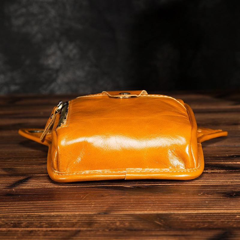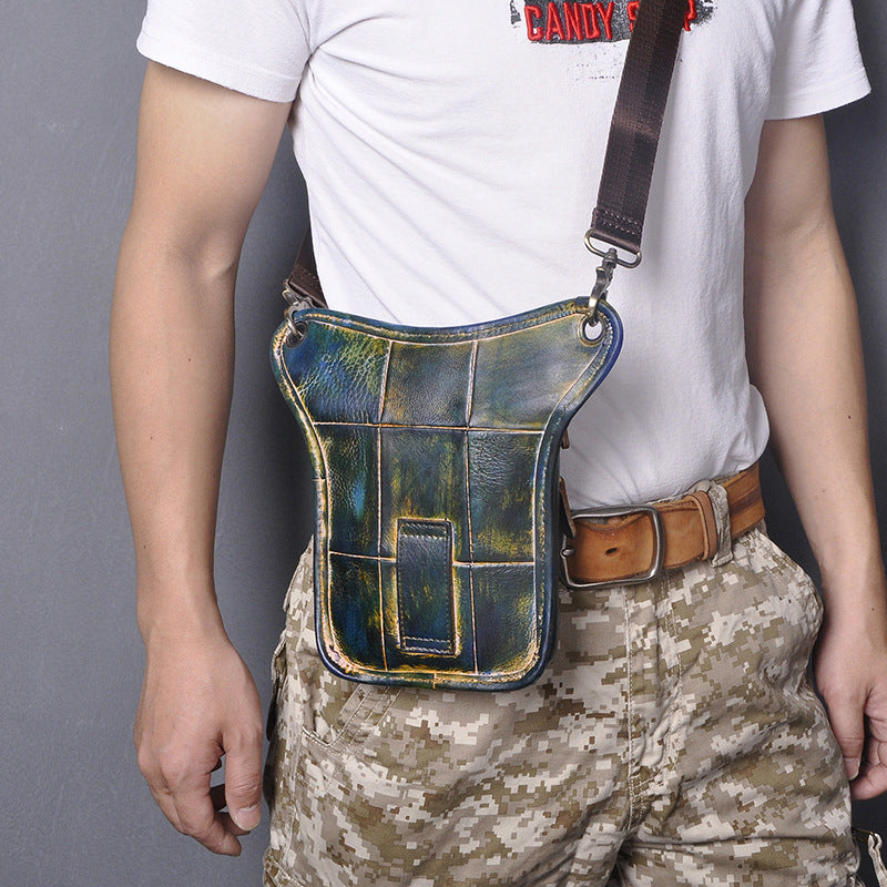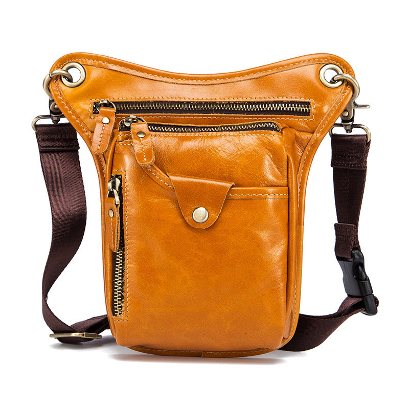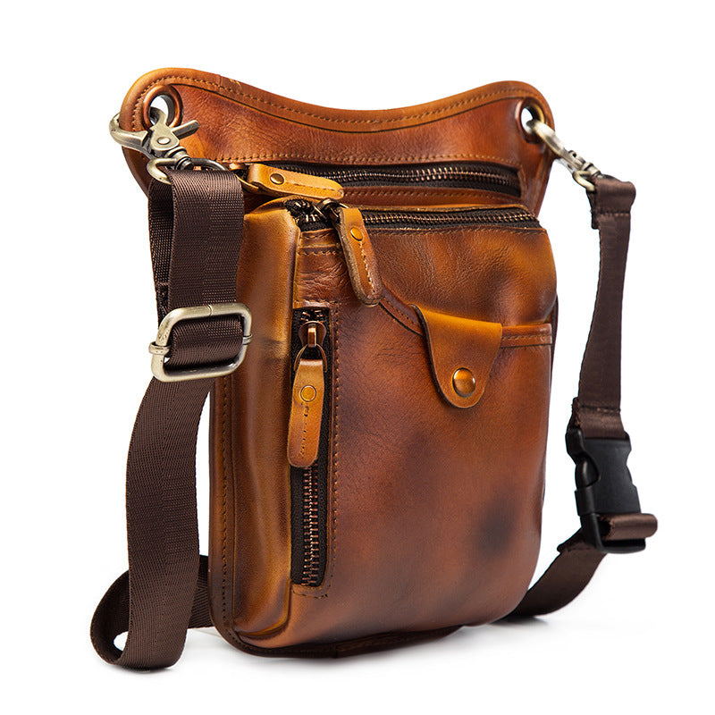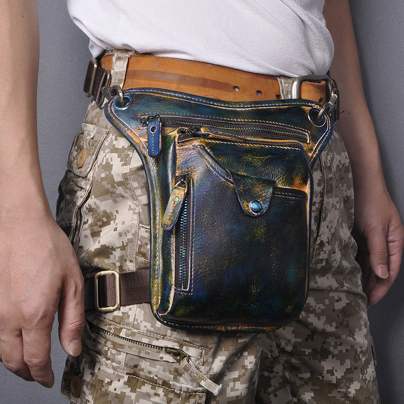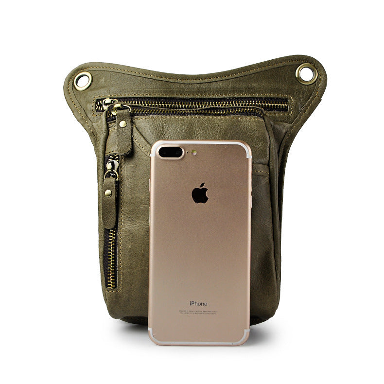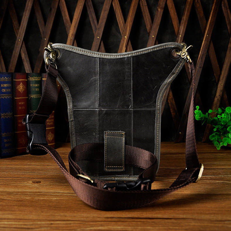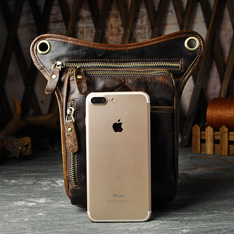 Full Grain Leather Leg Bag Foraging Pouch Leather Motorcycle Waist Bag, Male Knight Bull Head Bag, Crazy Horse Leather Bag for Men Women