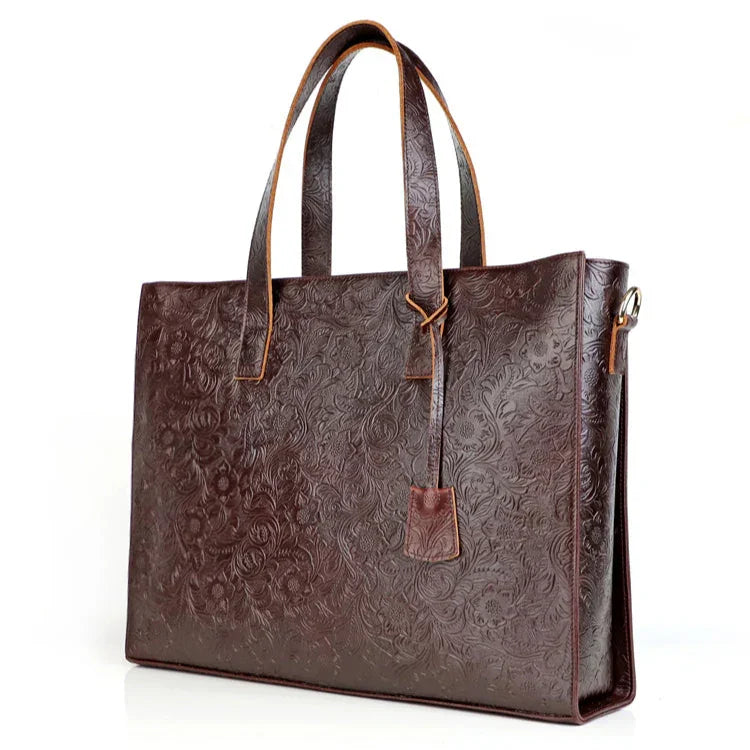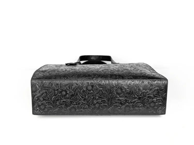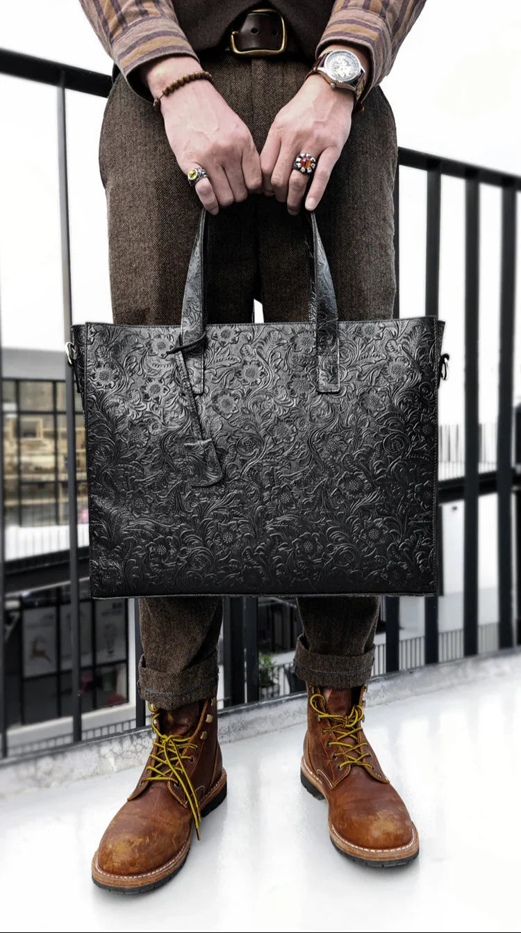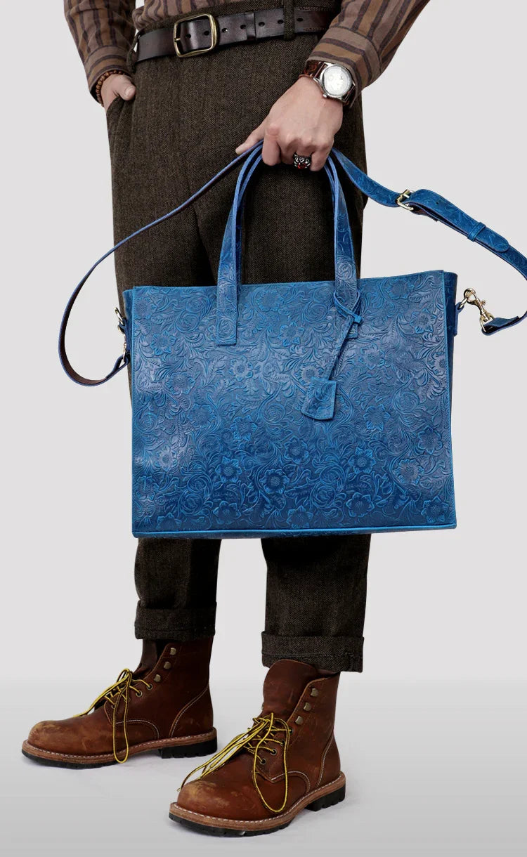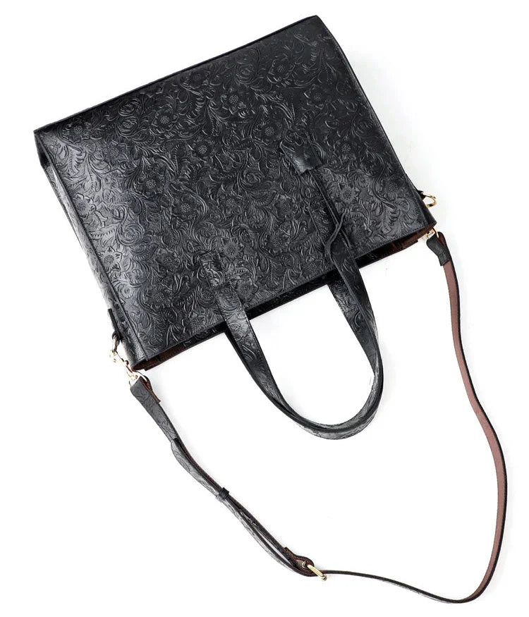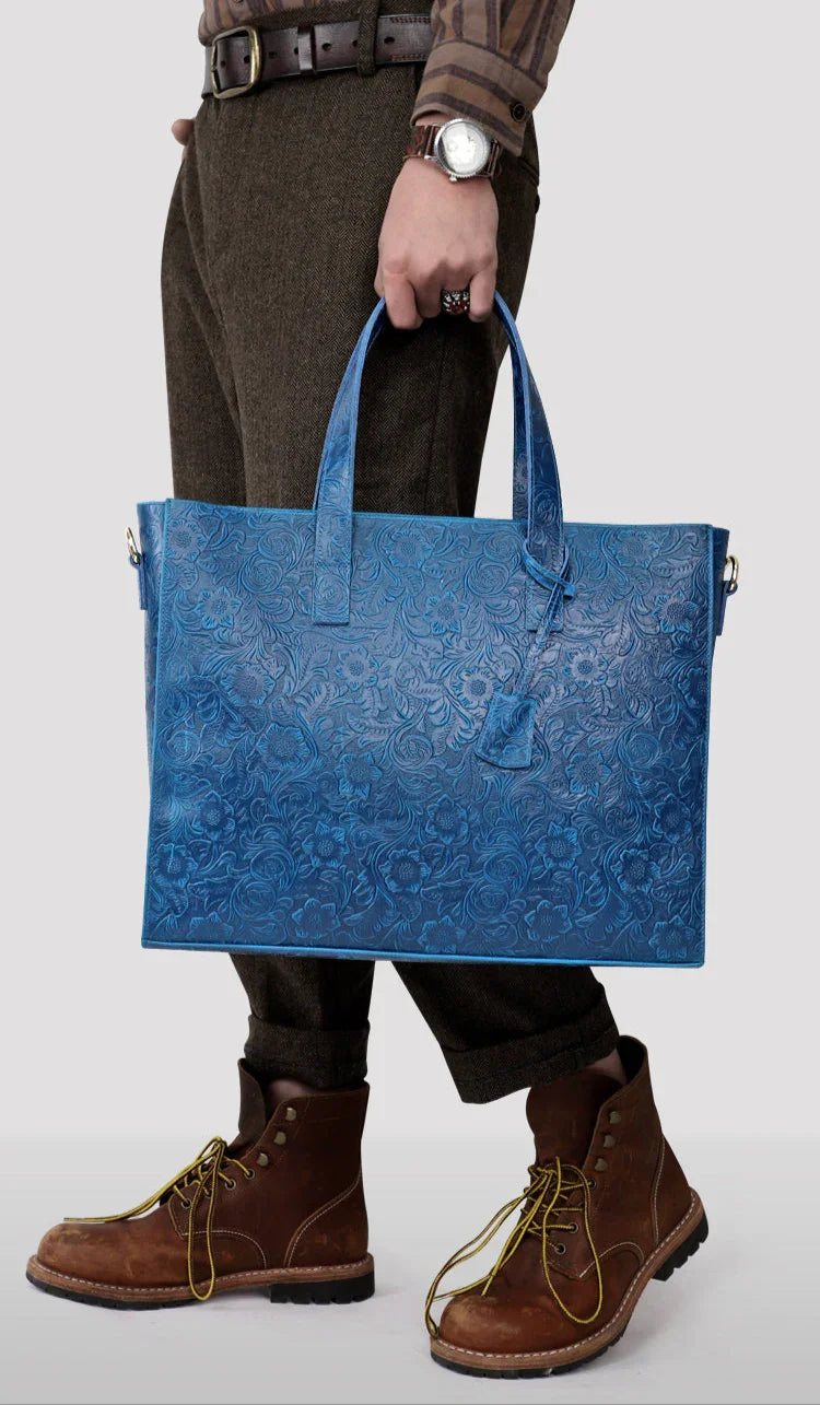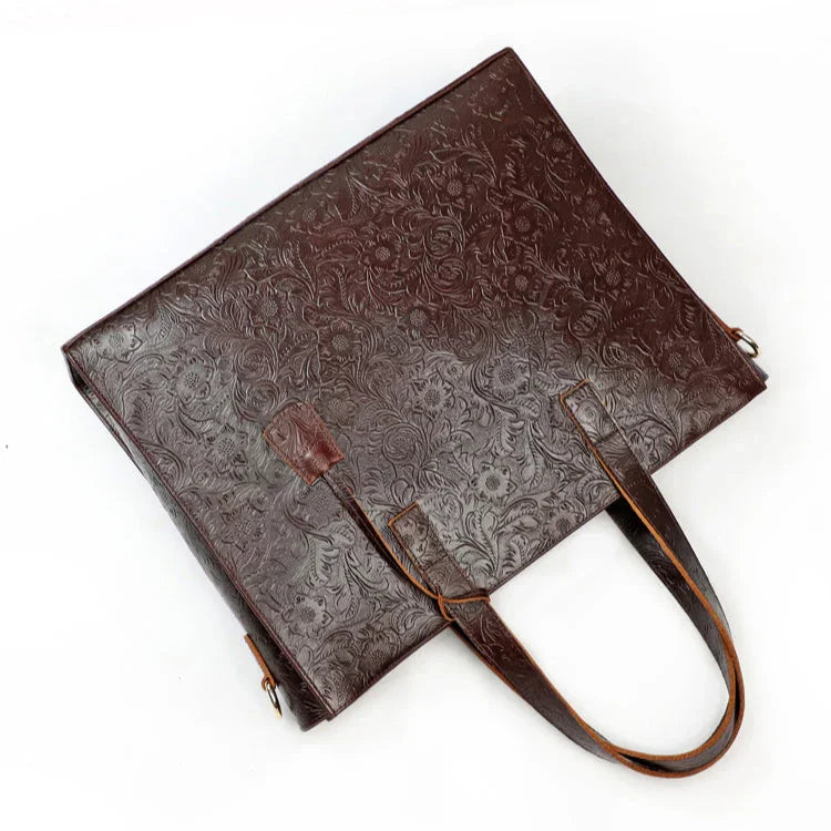 Very light weight, occassional bag. I’ve seen this on many other we sites for less $. I dont believe alexel crafts actually makes this bag since it is offered so widely online. Made me a little disappointed. Feels and smells like leather, lined with cloth. Closes smoothly.
