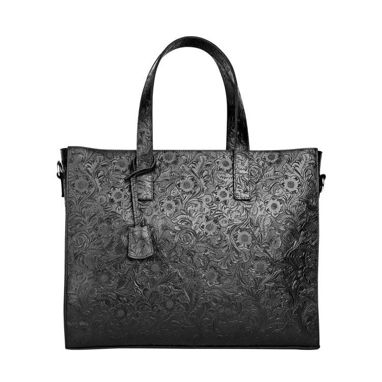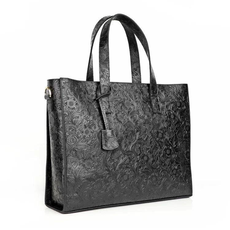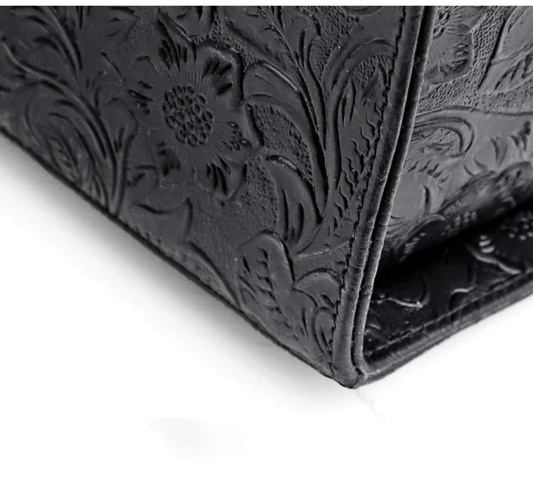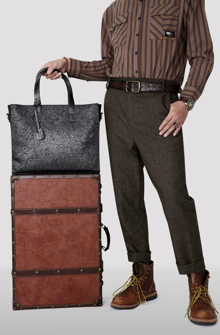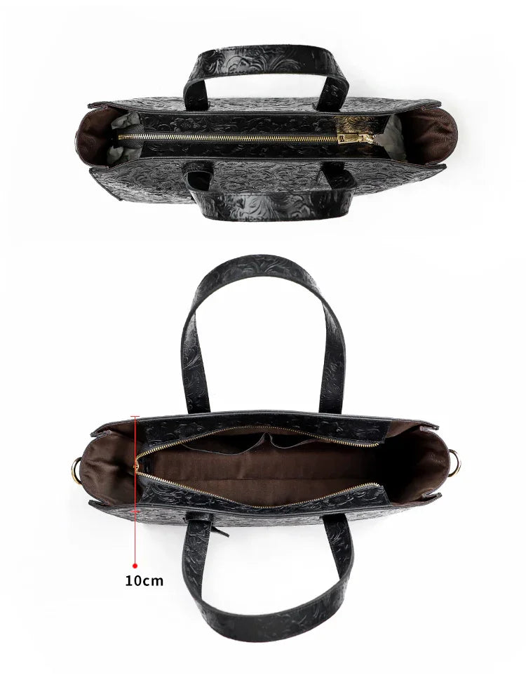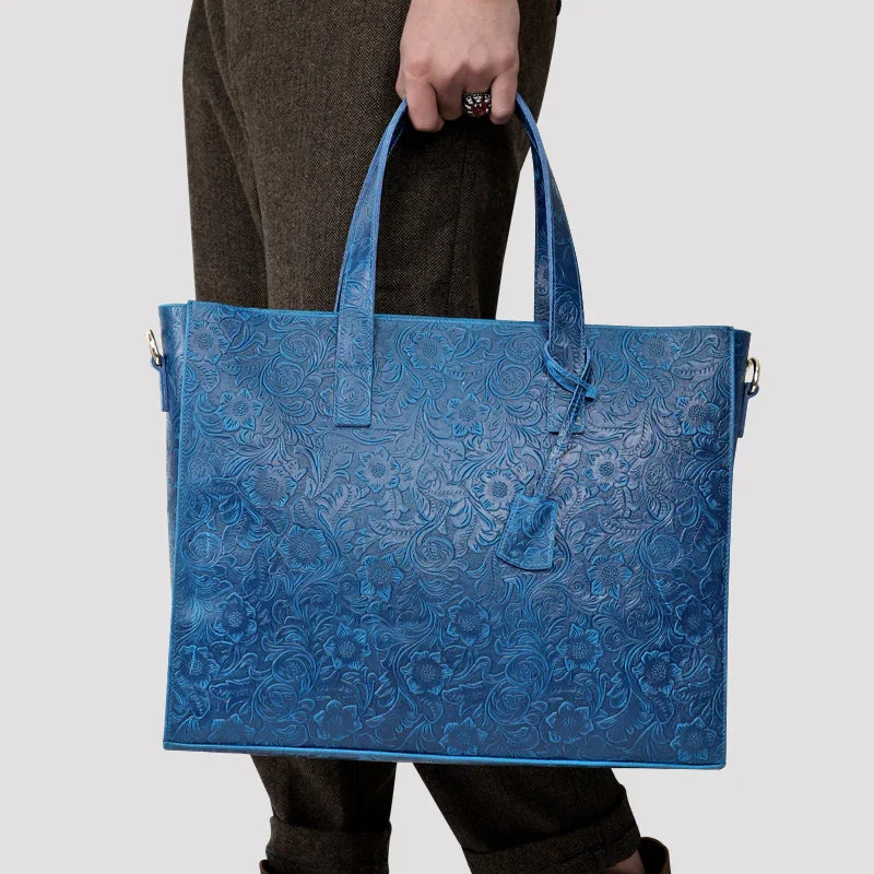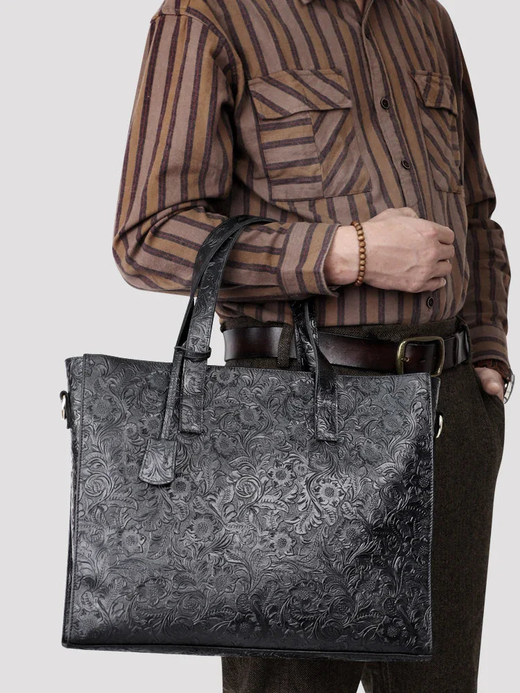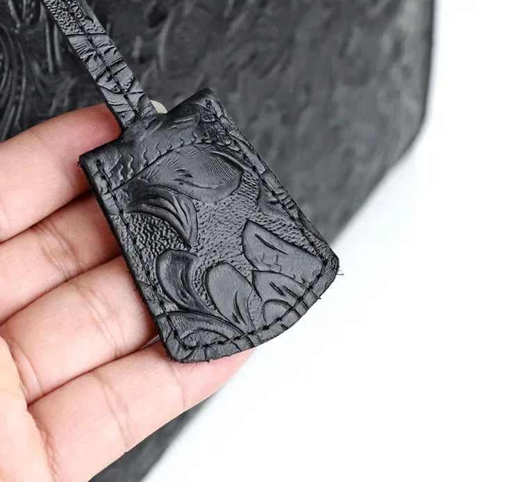 Very light weight, occassional bag. I’ve seen this on many other we sites for less $. I dont believe alexel crafts actually makes this bag since it is offered so widely online. Made me a little disappointed. Feels and smells like leather, lined with cloth. Closes smoothly.