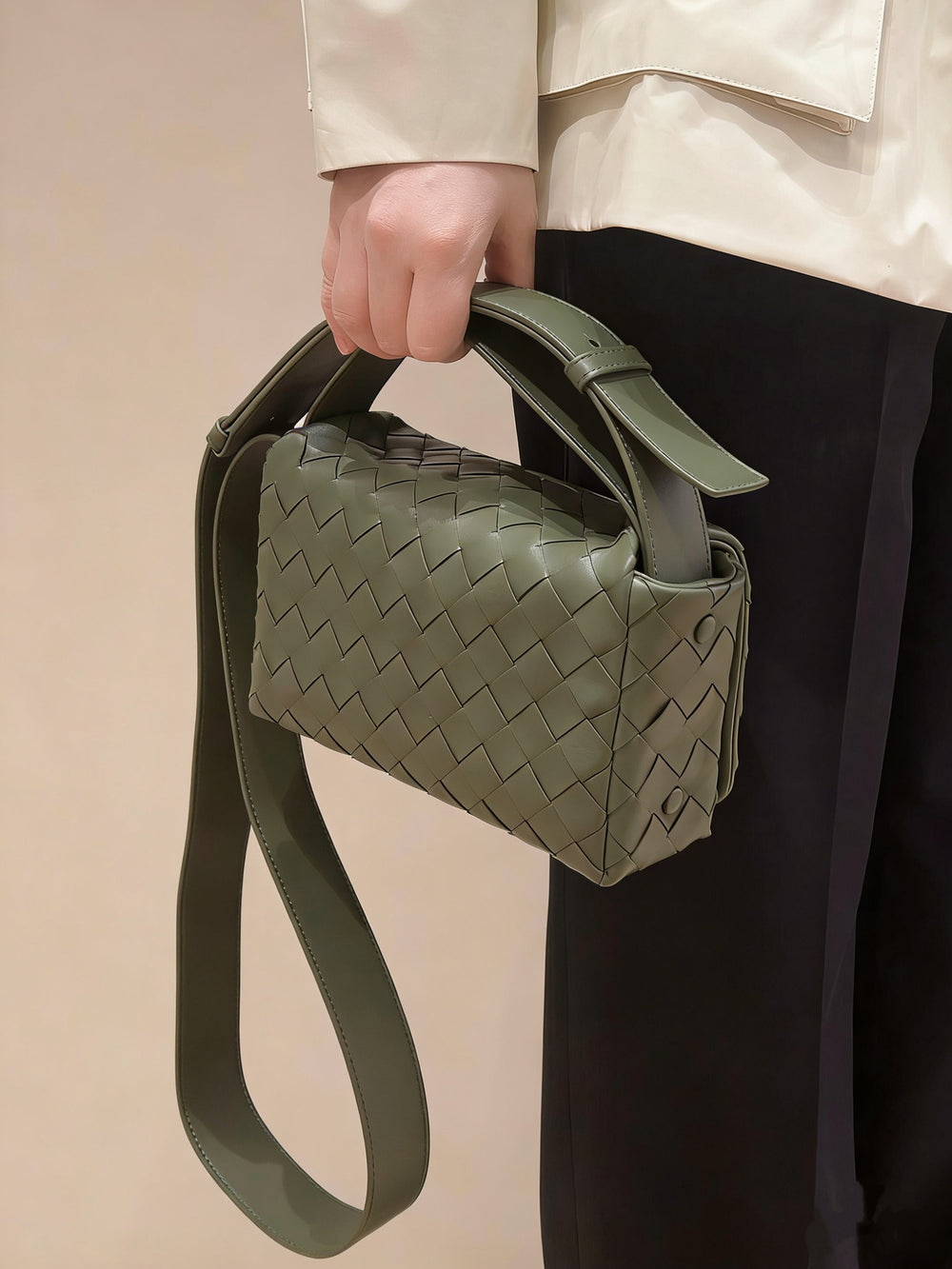 The "soft leather" and "quality craftsmanship" of this handmade handbag. exceptional material quality and designer-level construction. No unpleasant chemical smell requiring airing out, and no color accuracy issues with orders. it's "smaller than expected."I ordered Large Lambskin Leather Knotted Intrecciato Handbag, Handcrafted Premium Quality Dumpling Bag, Daily Fashion Lady Bag, Designer Tote Bag Overall highly rated for quality.