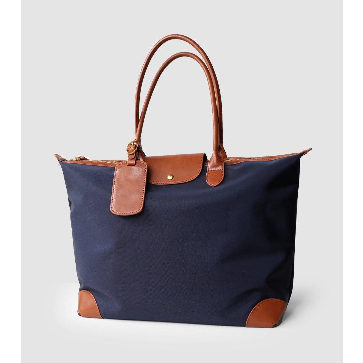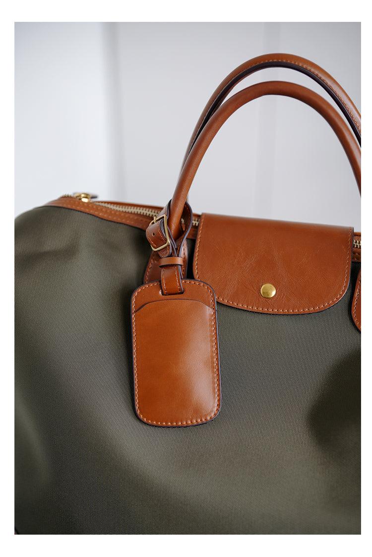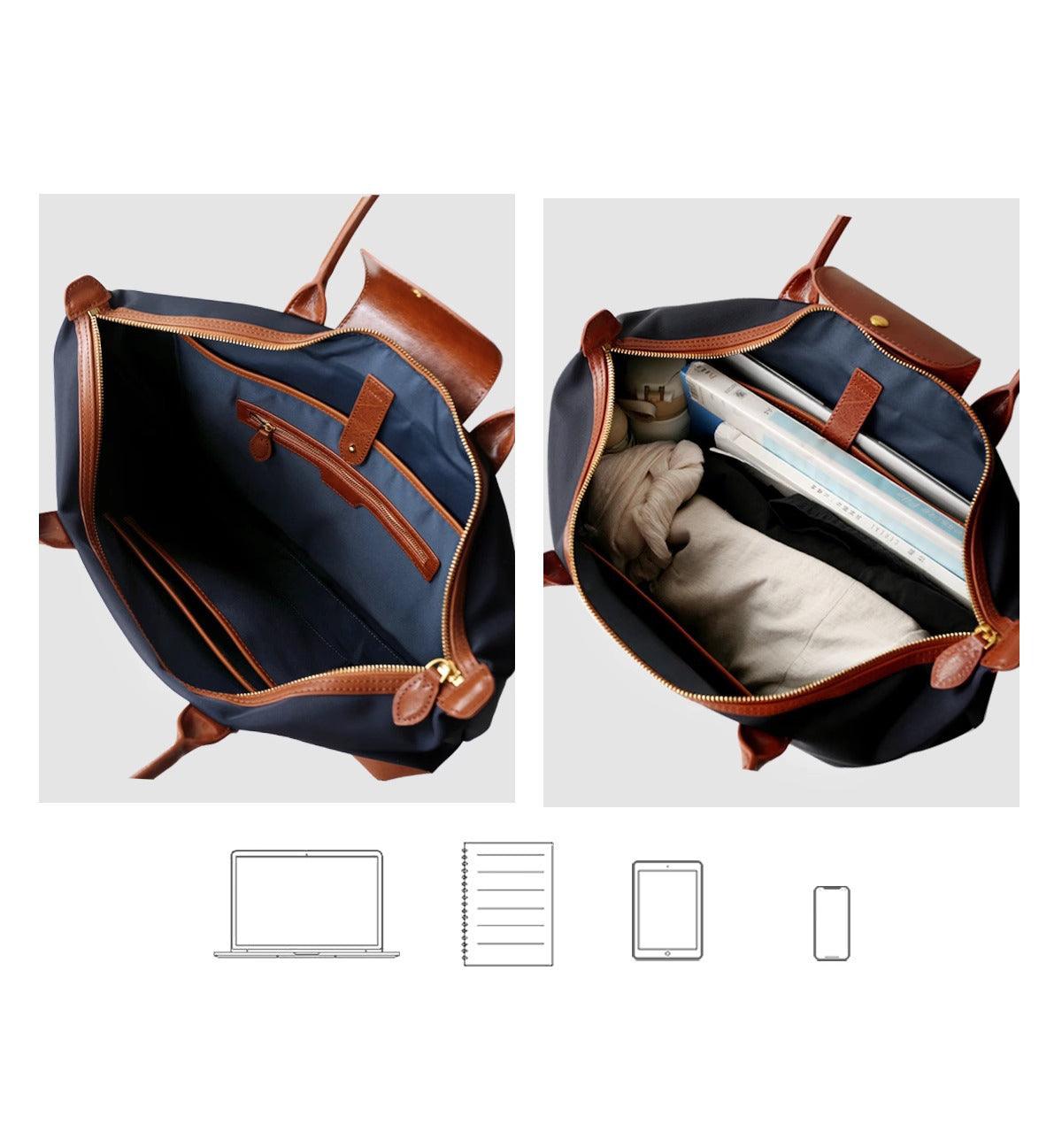 Handcrafted Large Waterproof Nylon and Cowhide Tote Bag, Women Shoulder Bag, Men Traveling Bag, Laptop Bag, Weekend Bag, Work Commutes Bag