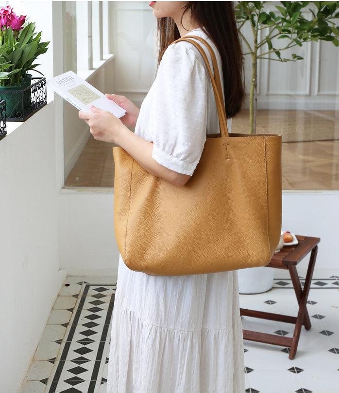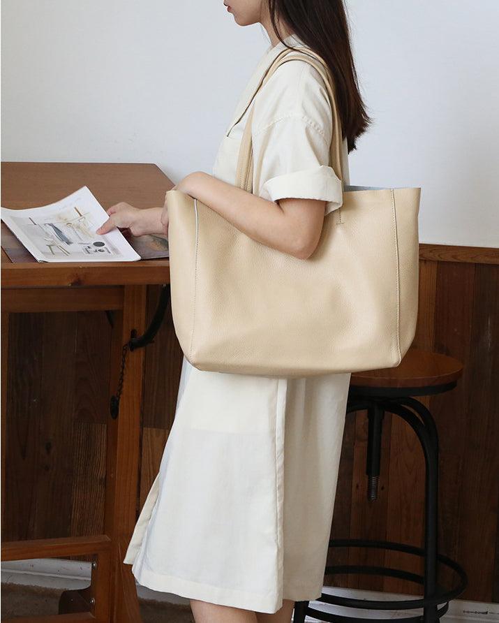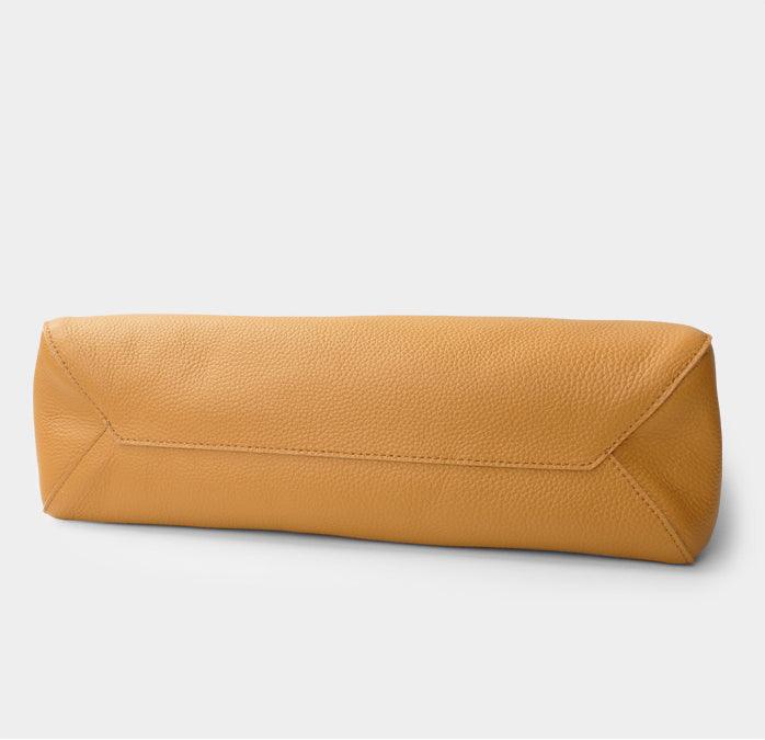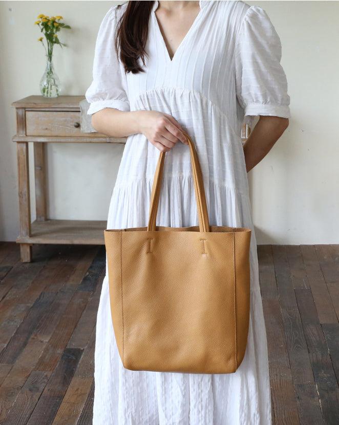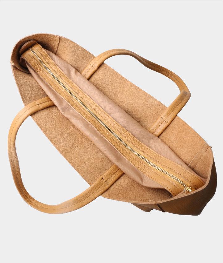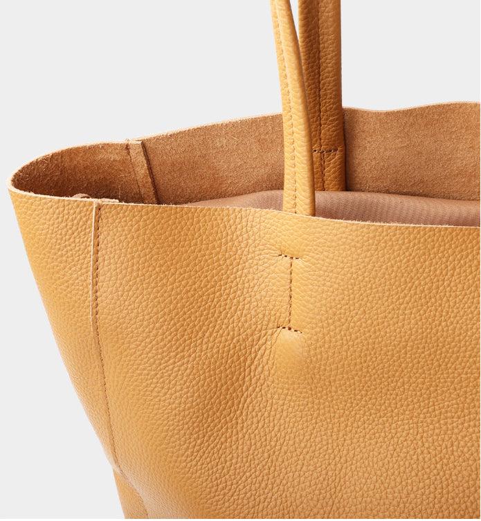 Lovely soft leather. Looks great. Perfect size for a laptop and a few other items. It’s unlined but comes with an insert. I wish it had a little slim inside pocket for items like a security card and lipstick, so they’re easily located