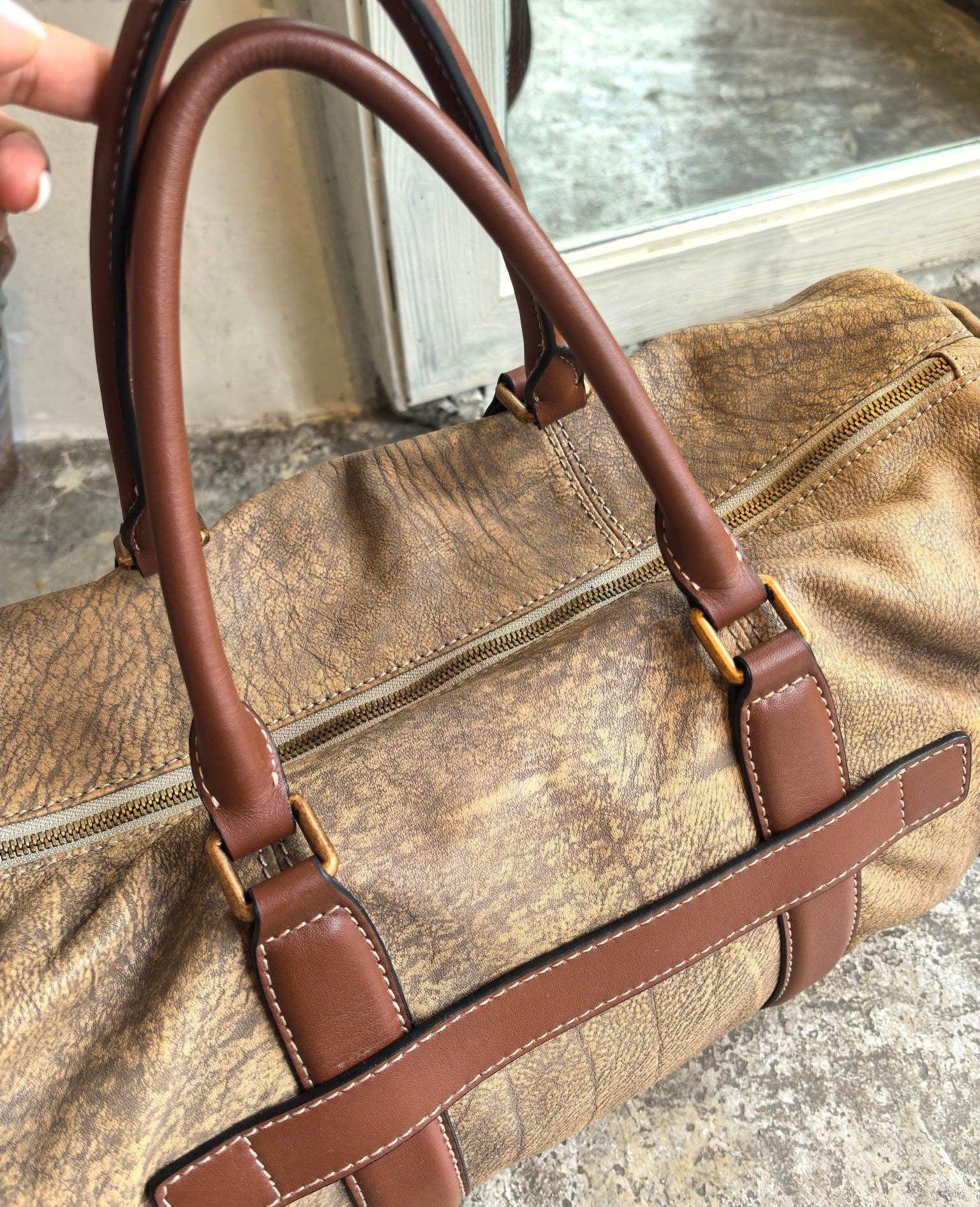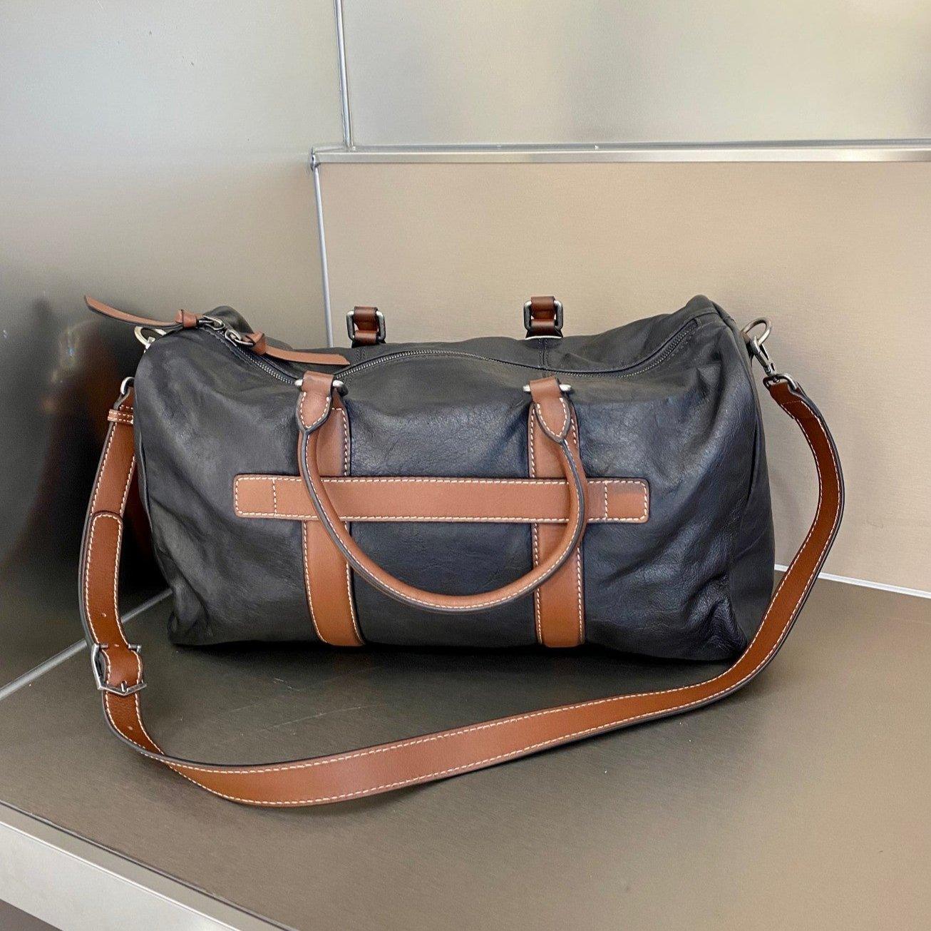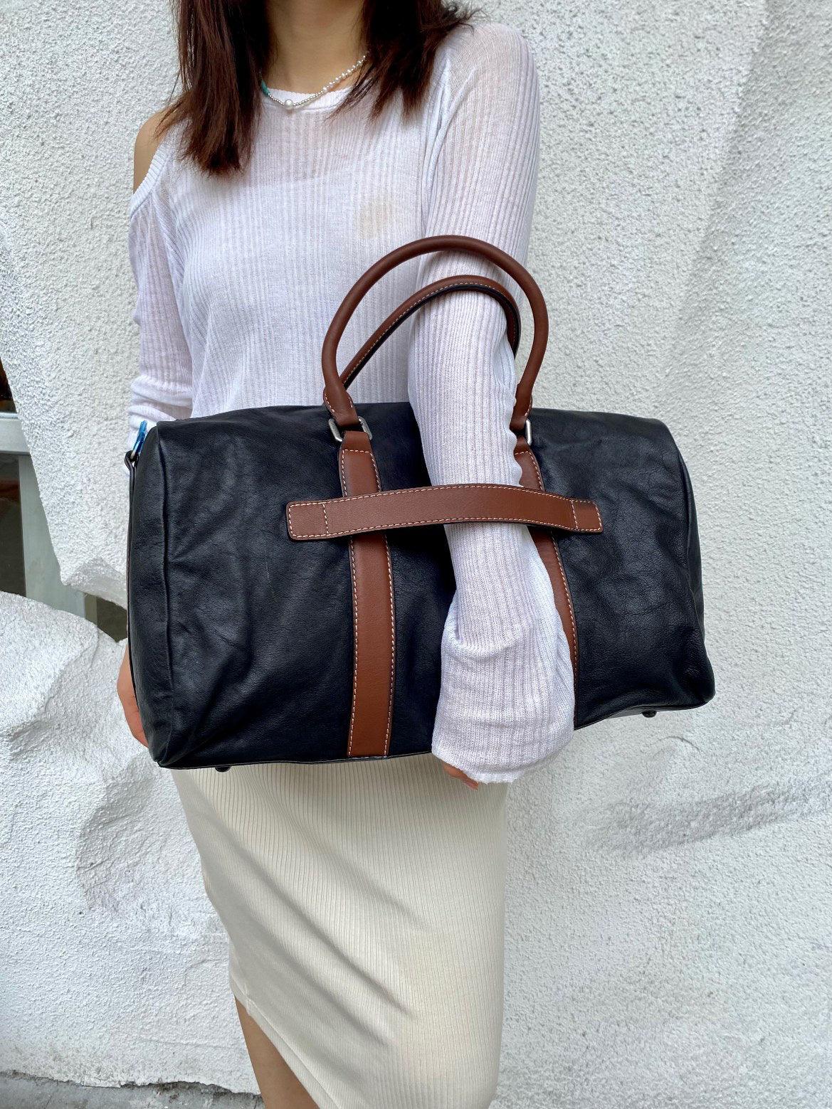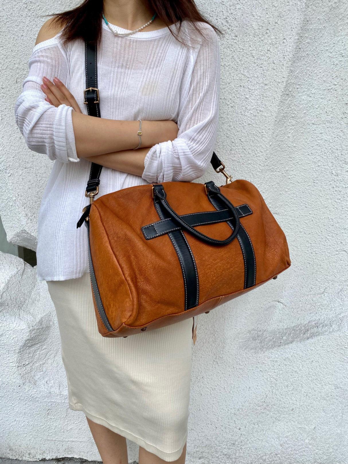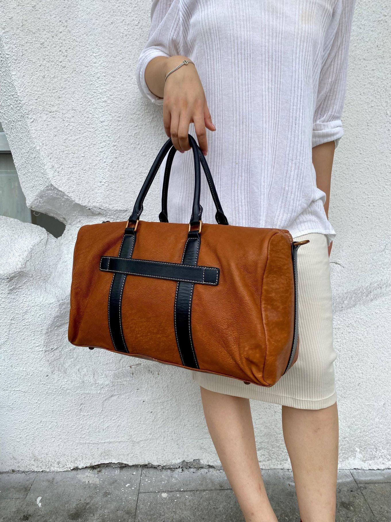 Handcrafted Unisex Minimalist Full-Grain Leather Duffle Bag, Durable & Stylish Travel Companion, Camping Bag with Handheld and Crossbody Design