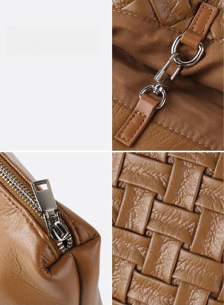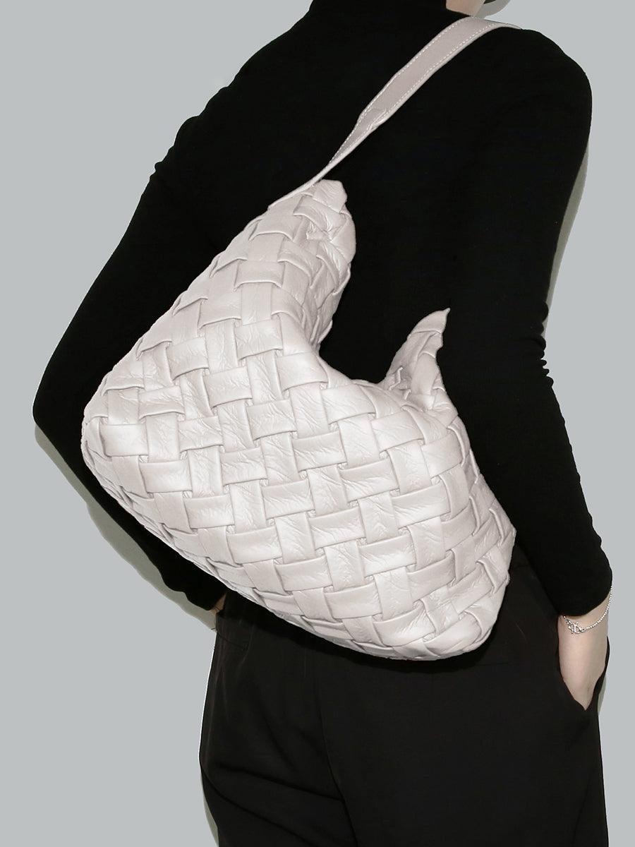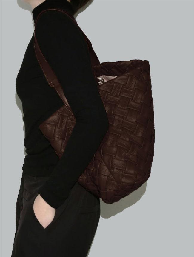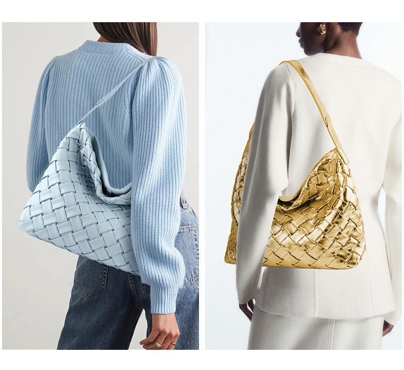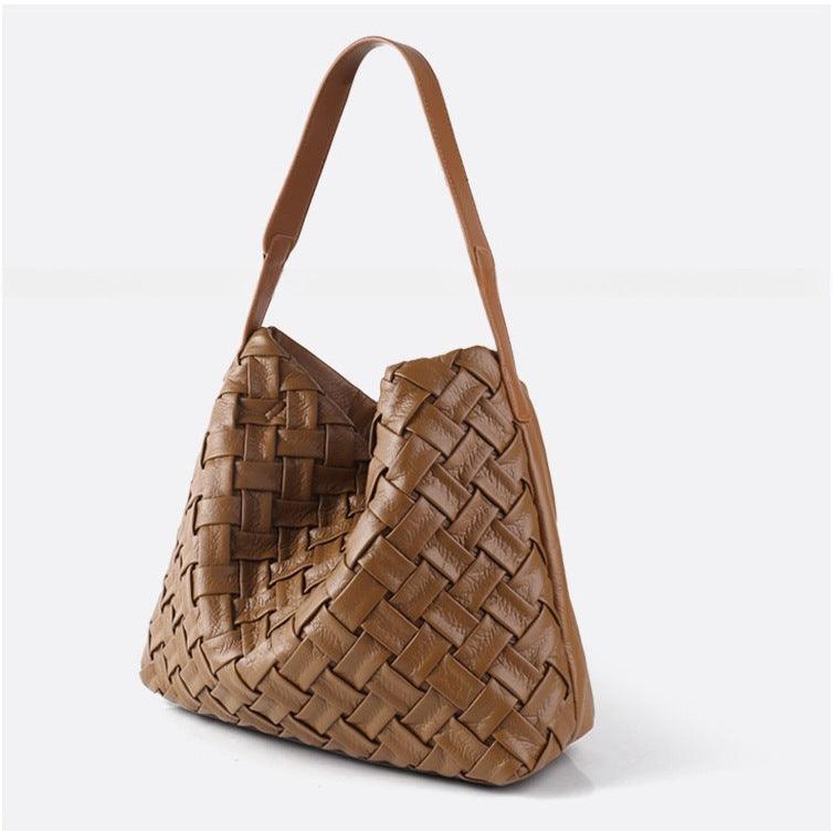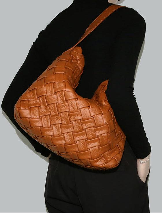 Handmade Soft Vegan Leather Woven Tote Bag for Women, Large Minimalist Commuter Shoulder Bag with Inner Pouch