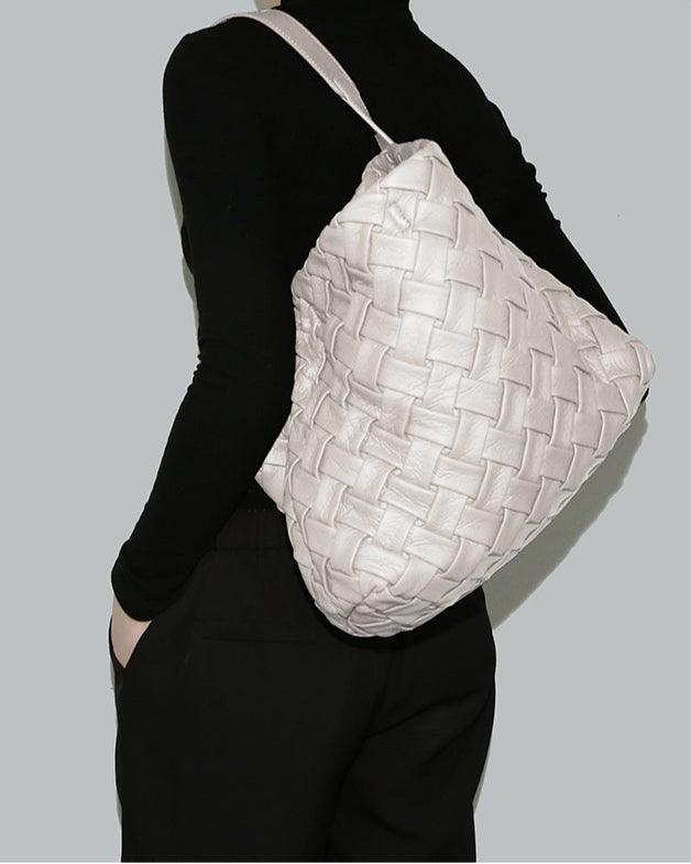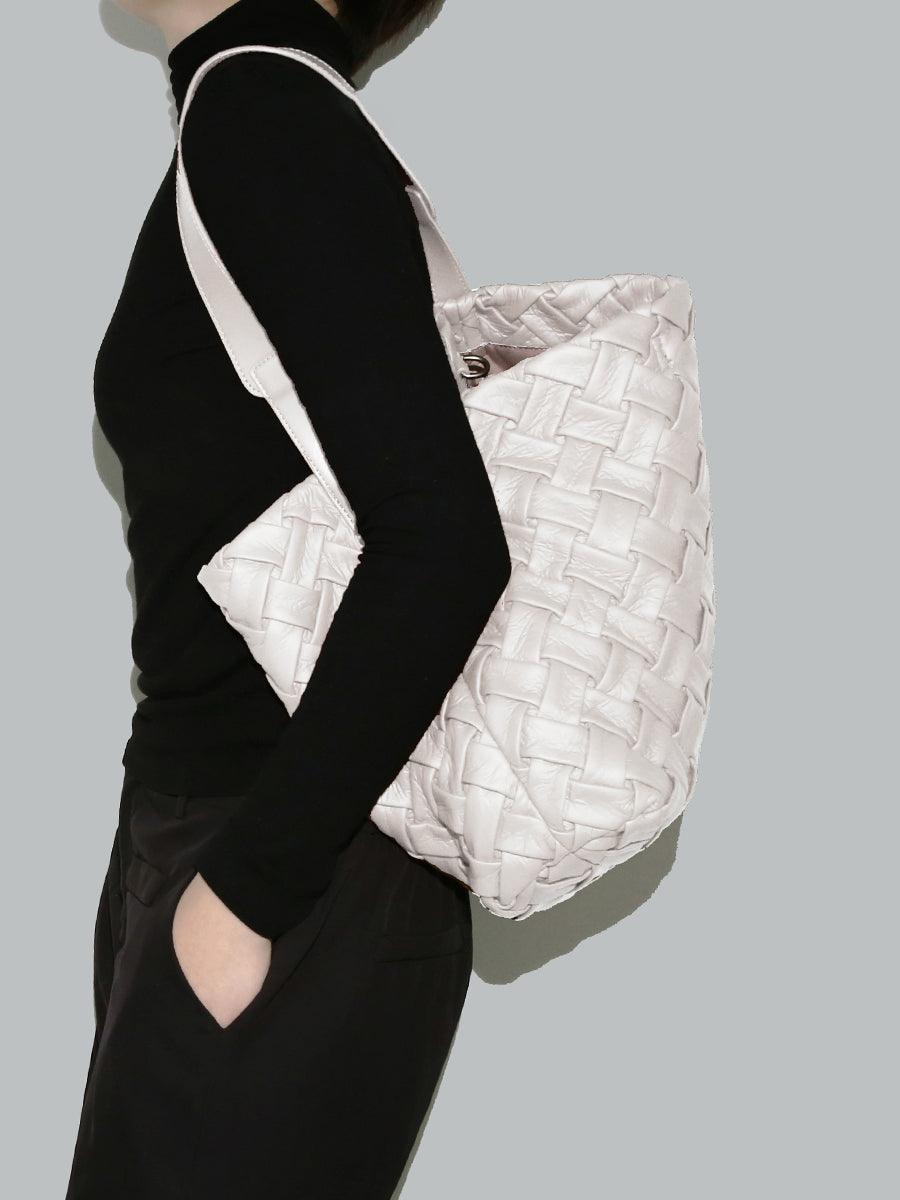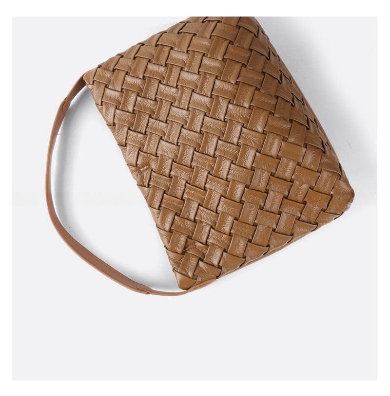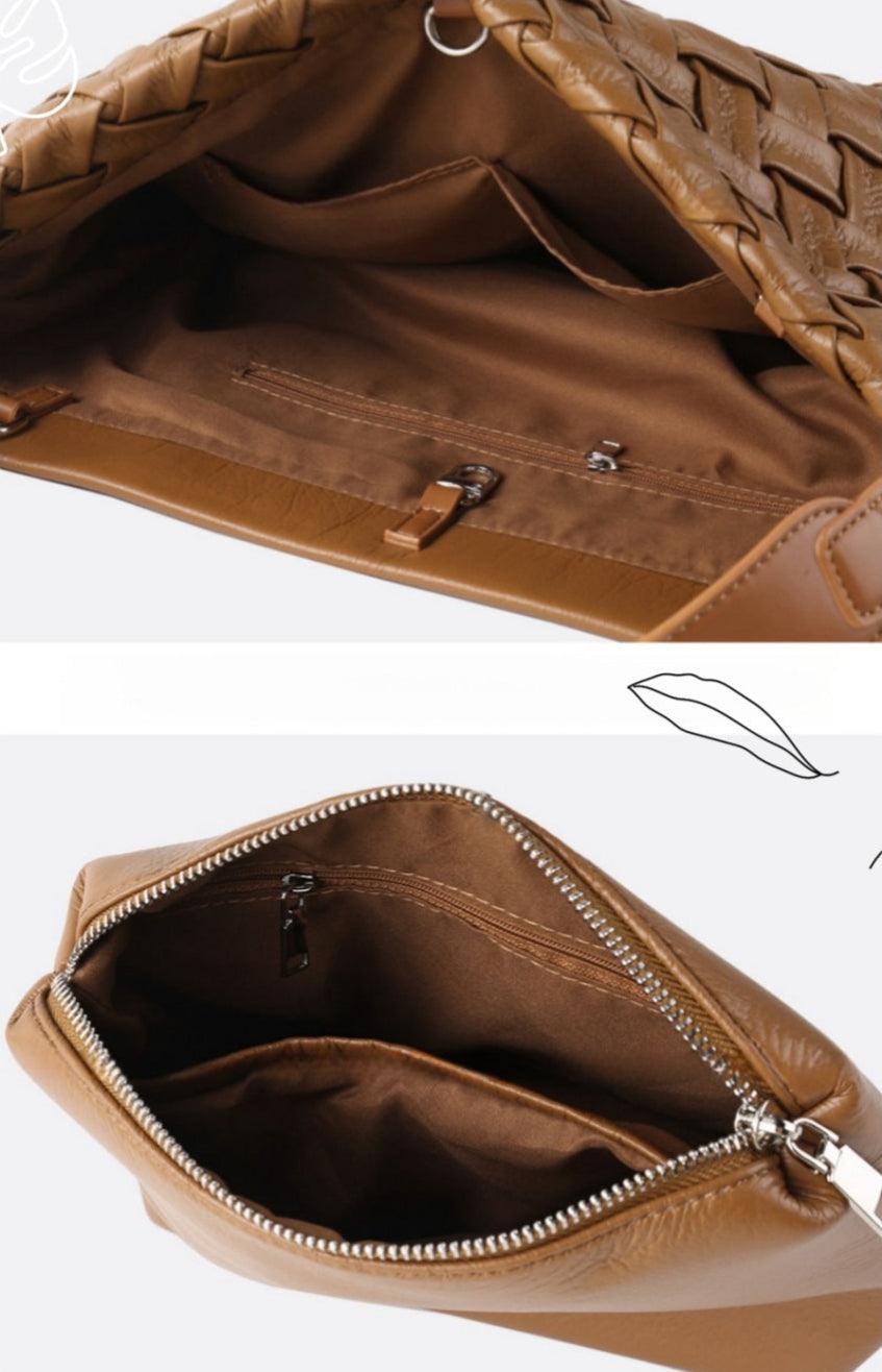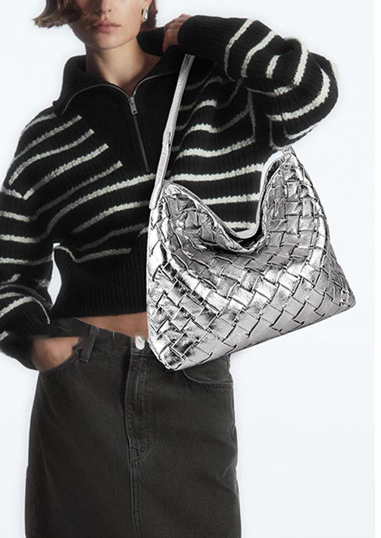 Handmade Soft Vegan Leather Woven Tote Bag for Women, Large Minimalist Commuter Shoulder Bag with Inner Pouch