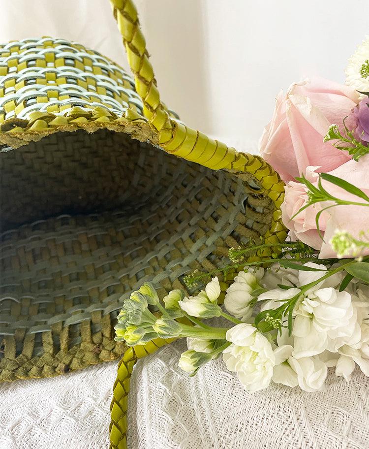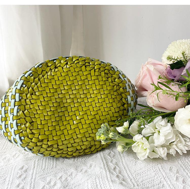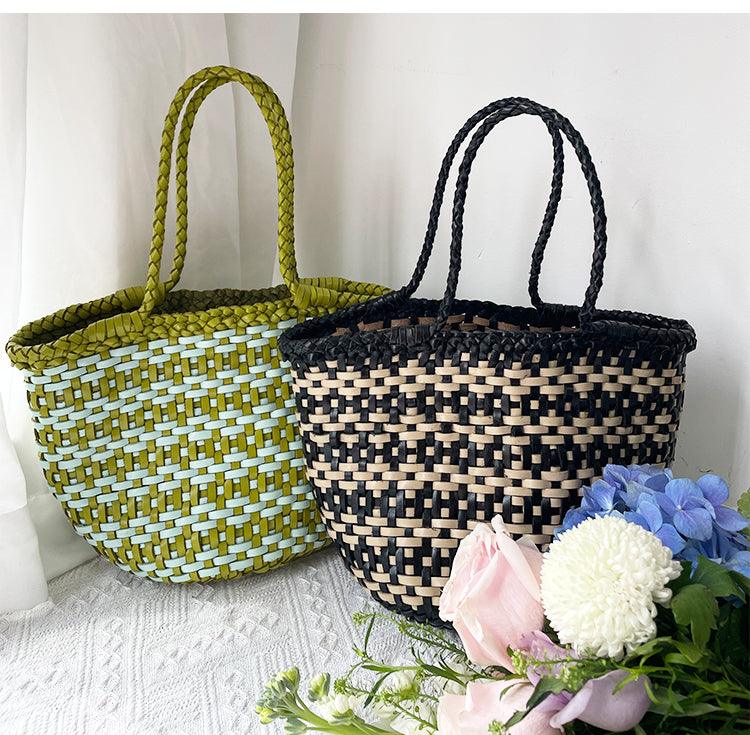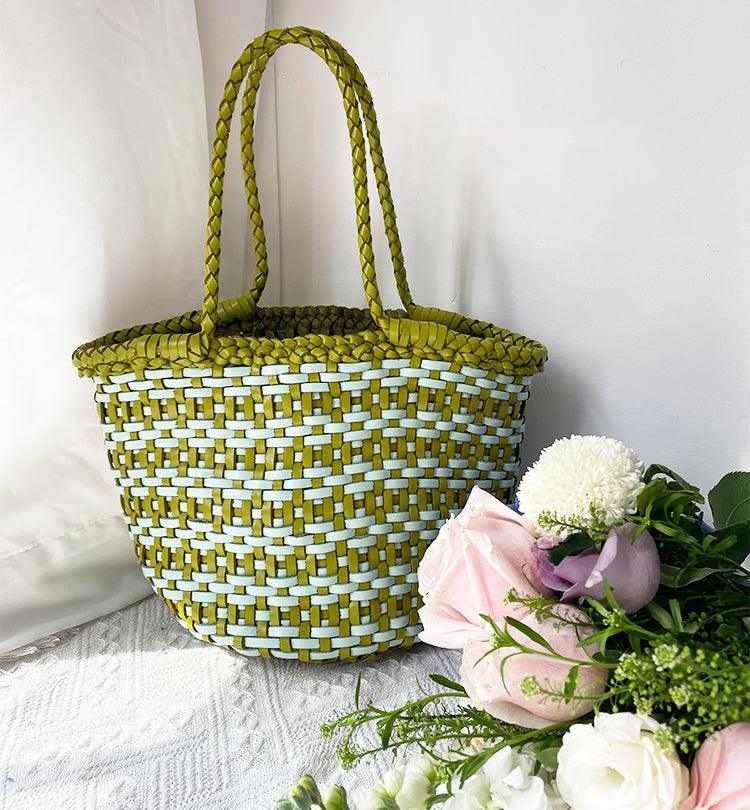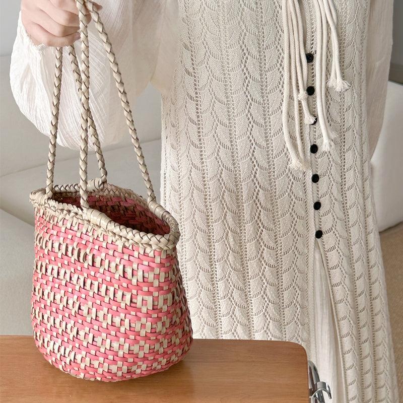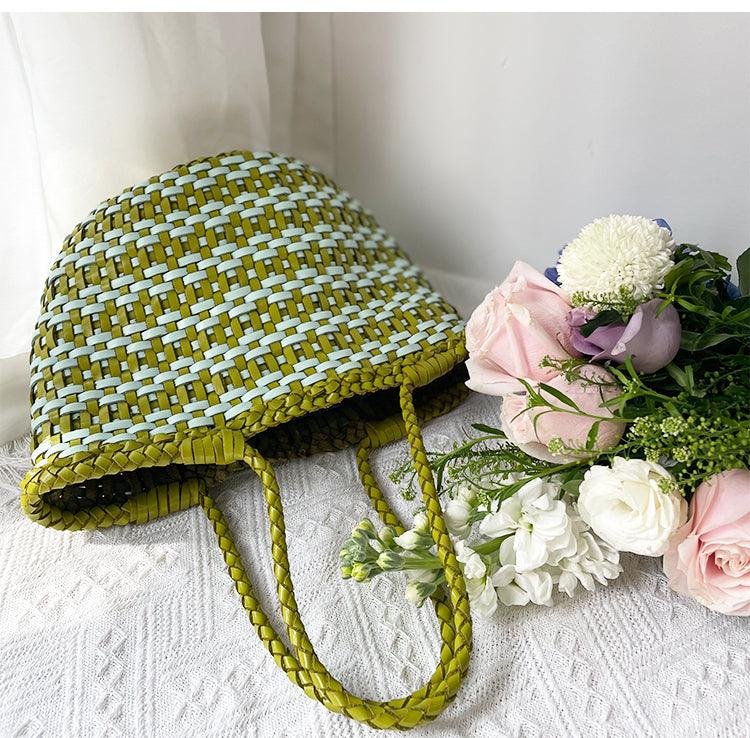 Gorgeous leather woven bag, the colour is darker than pictured, a very smooth rich tone of grey. Took a long tome to ship to Canada, but worth the wait.