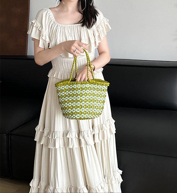 I’m very happy with my woven designer shoulder bag with the gold bow buckle. The quality of the bag is very good and the bag fits everything I need in it. The bag was dispatched promptly and was well packed and came with a thick soft dust bag. Very happy with my purchase.