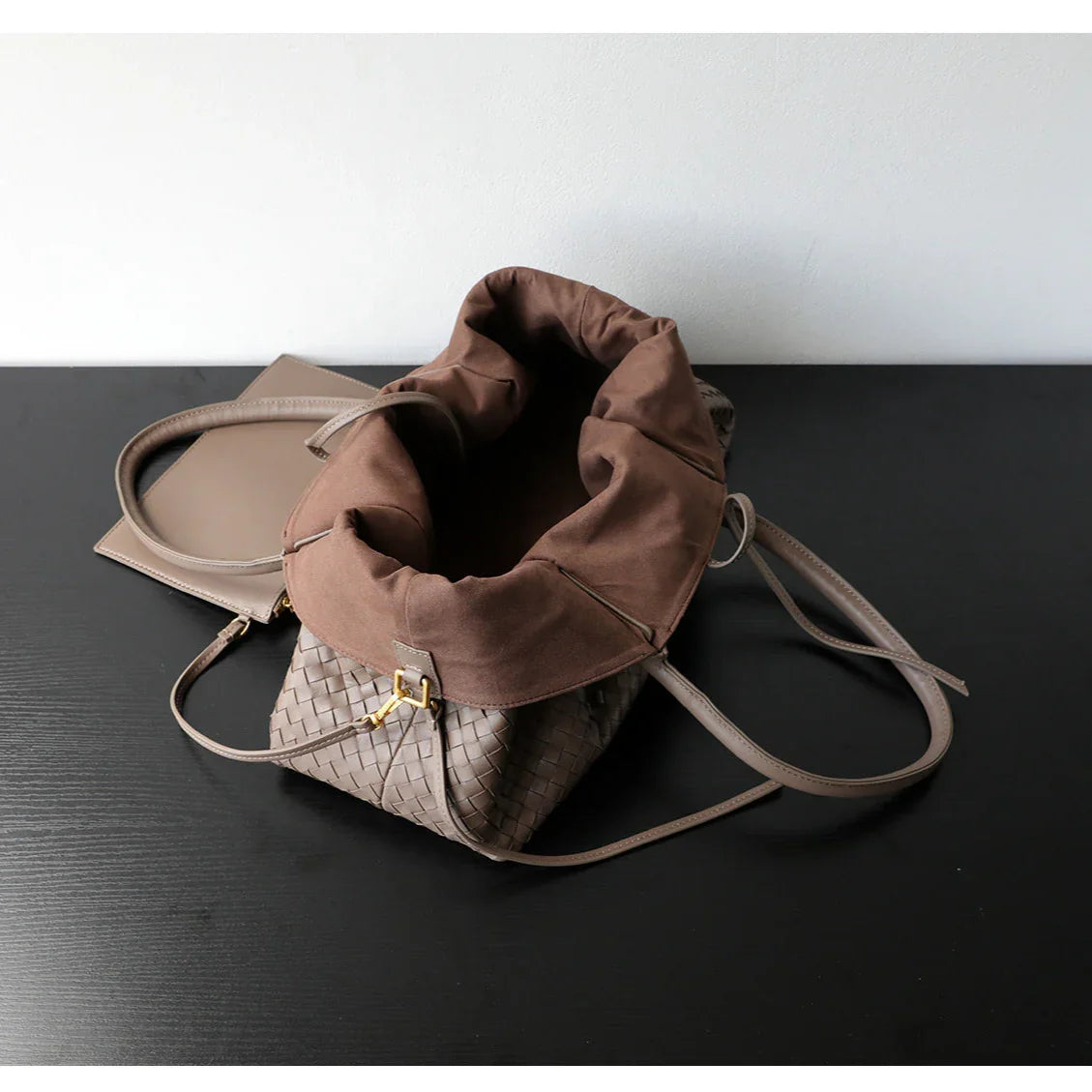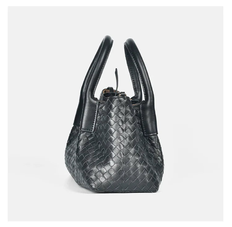 Handwoven Lambskin Leather Tote Bag | Woven Shoulder Bag for Women | Luxury Designer Handbag with Top Handles & Crossbody Strap
