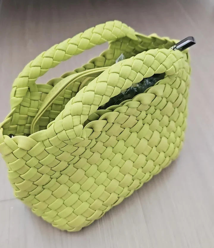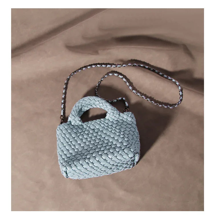 Very light weight, occassional bag. I’ve seen this on many other we sites for less $. I dont believe alexel crafts actually makes this bag since it is offered so widely online. Made me a little disappointed. Feels and smells like leather, lined with cloth. Closes smoothly.