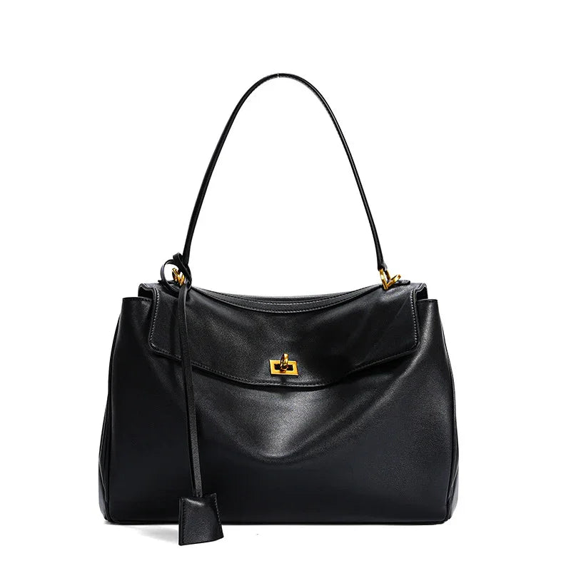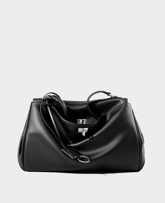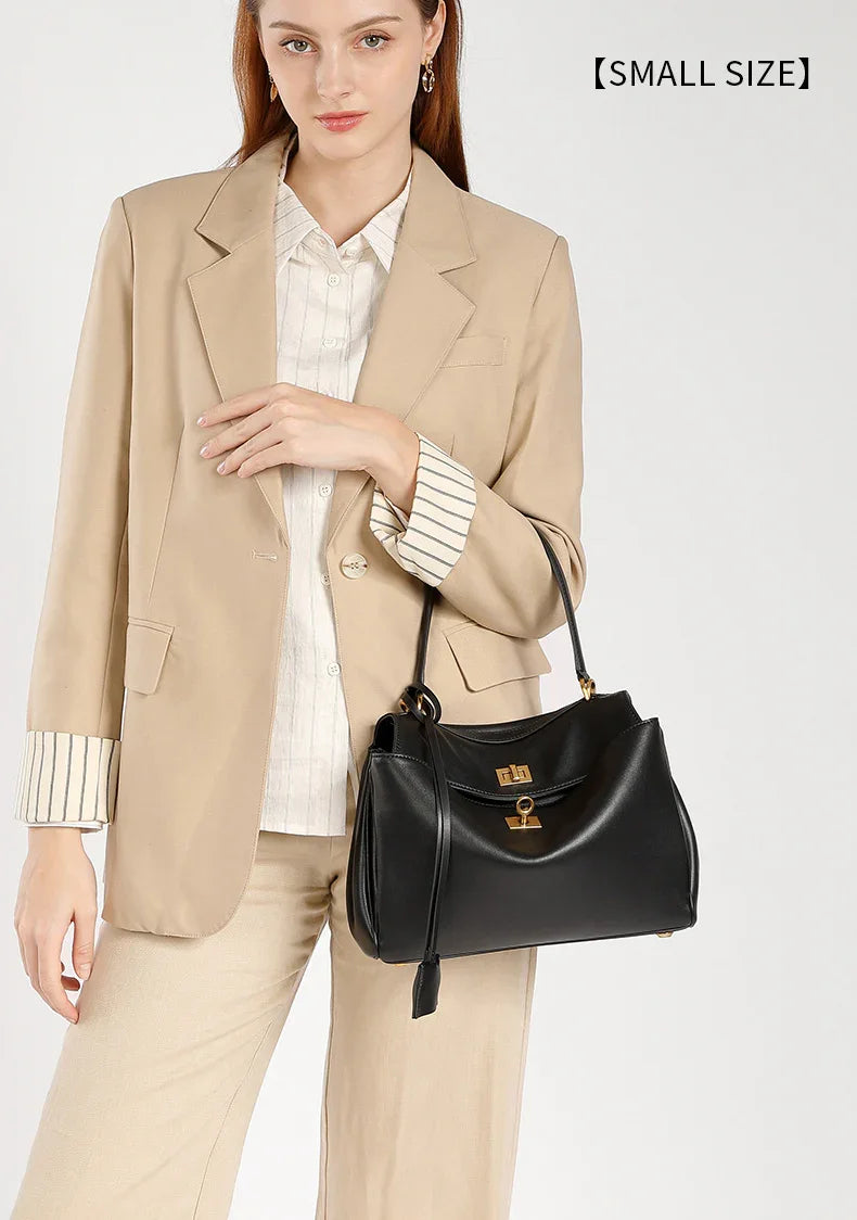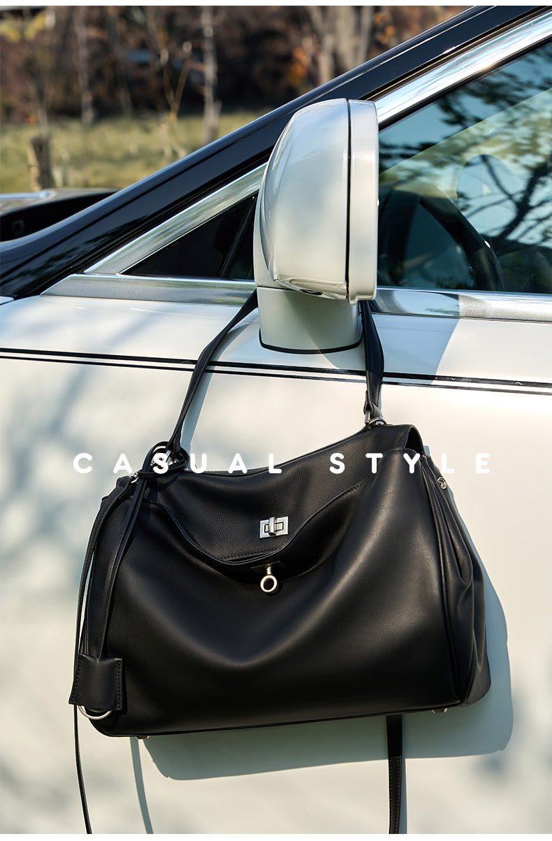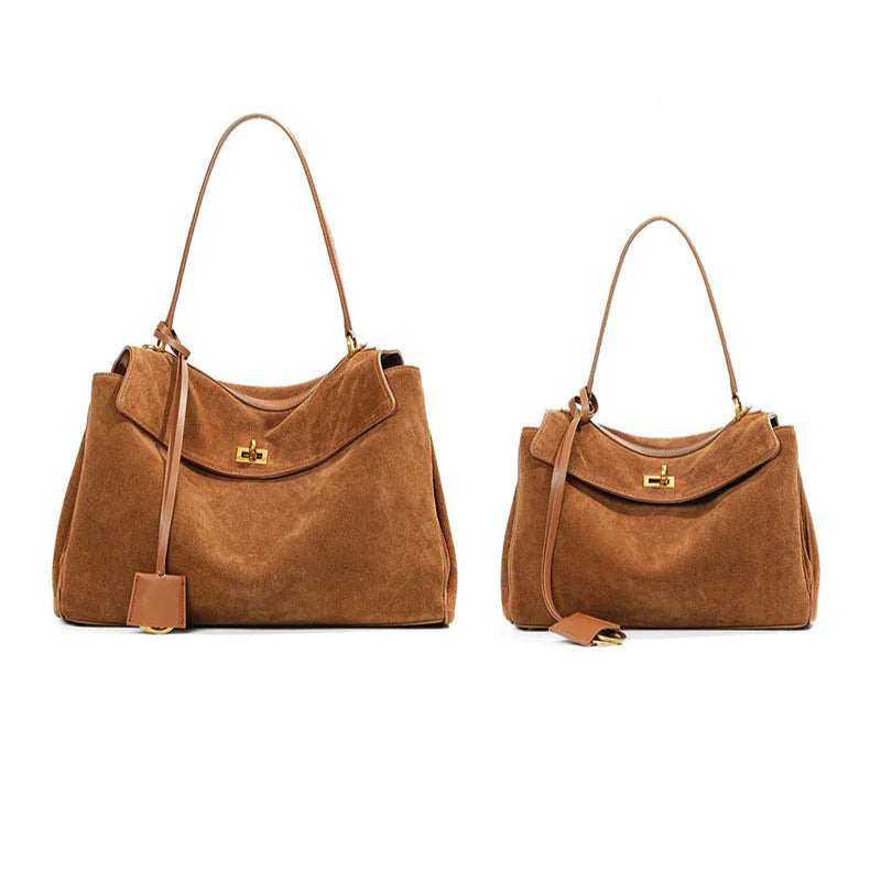 High-End Genuine Leather and Suede Leather Handbag with Lock Clasp, Women's Versatile Shoulder & Crossbody Bag for Commuting