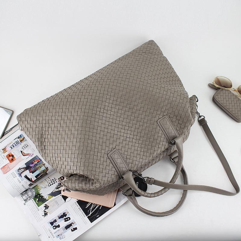Italy Lambskin Leather Tote Black, Large Intrecciato Leather Bag, Quilted Elegant Tote in Trendy, Boutique Bag, Classic Gift to Her