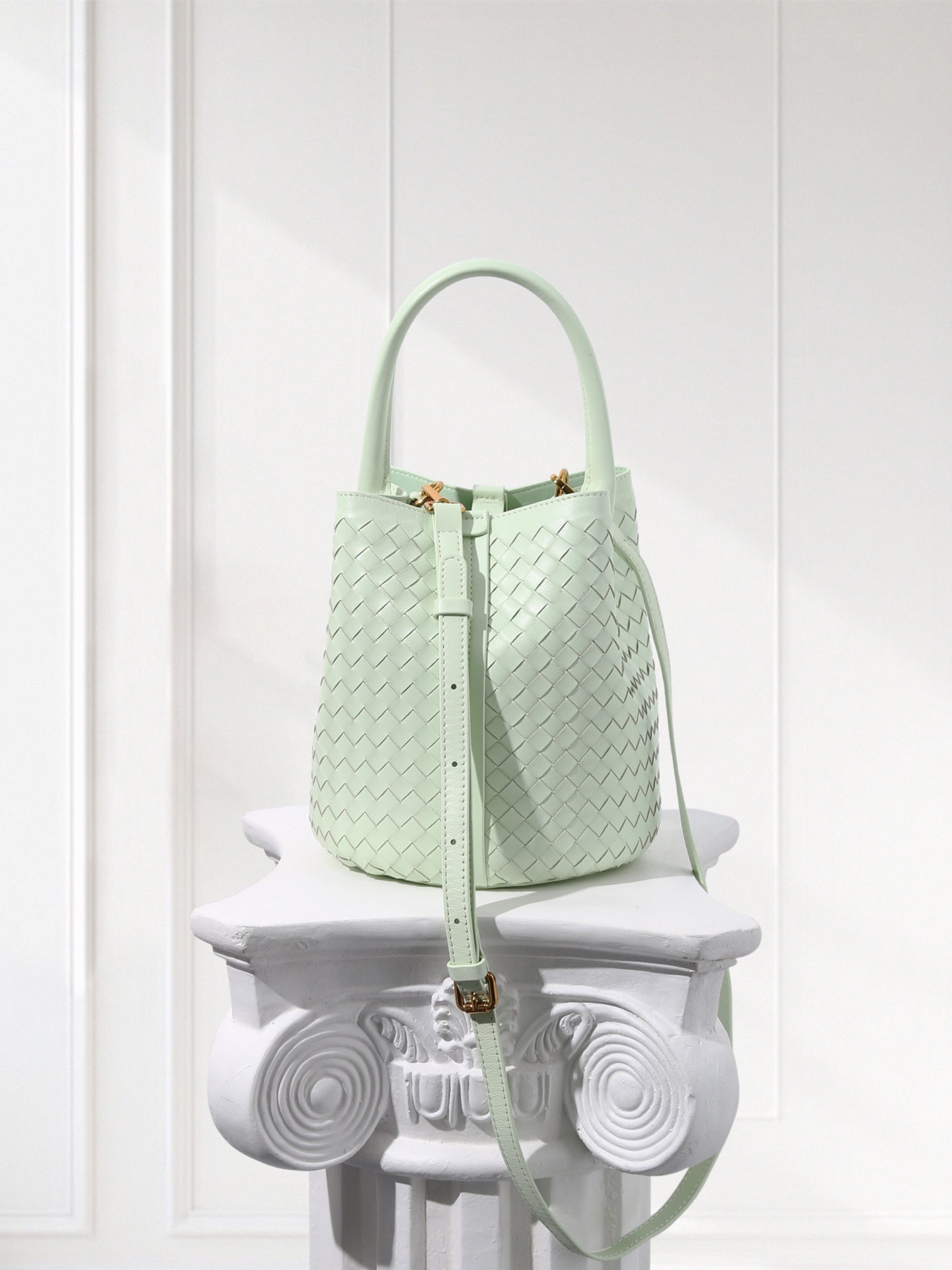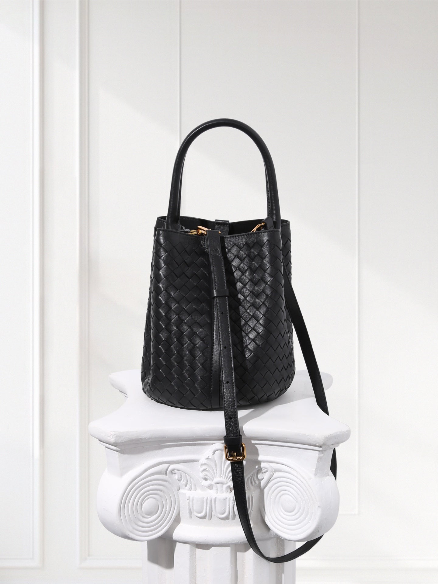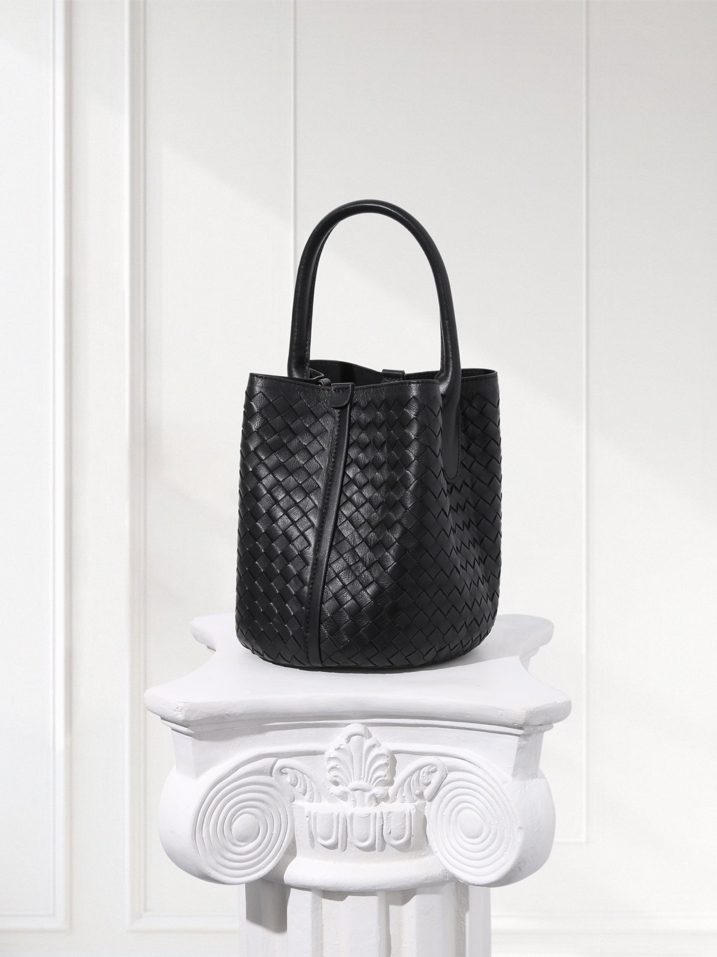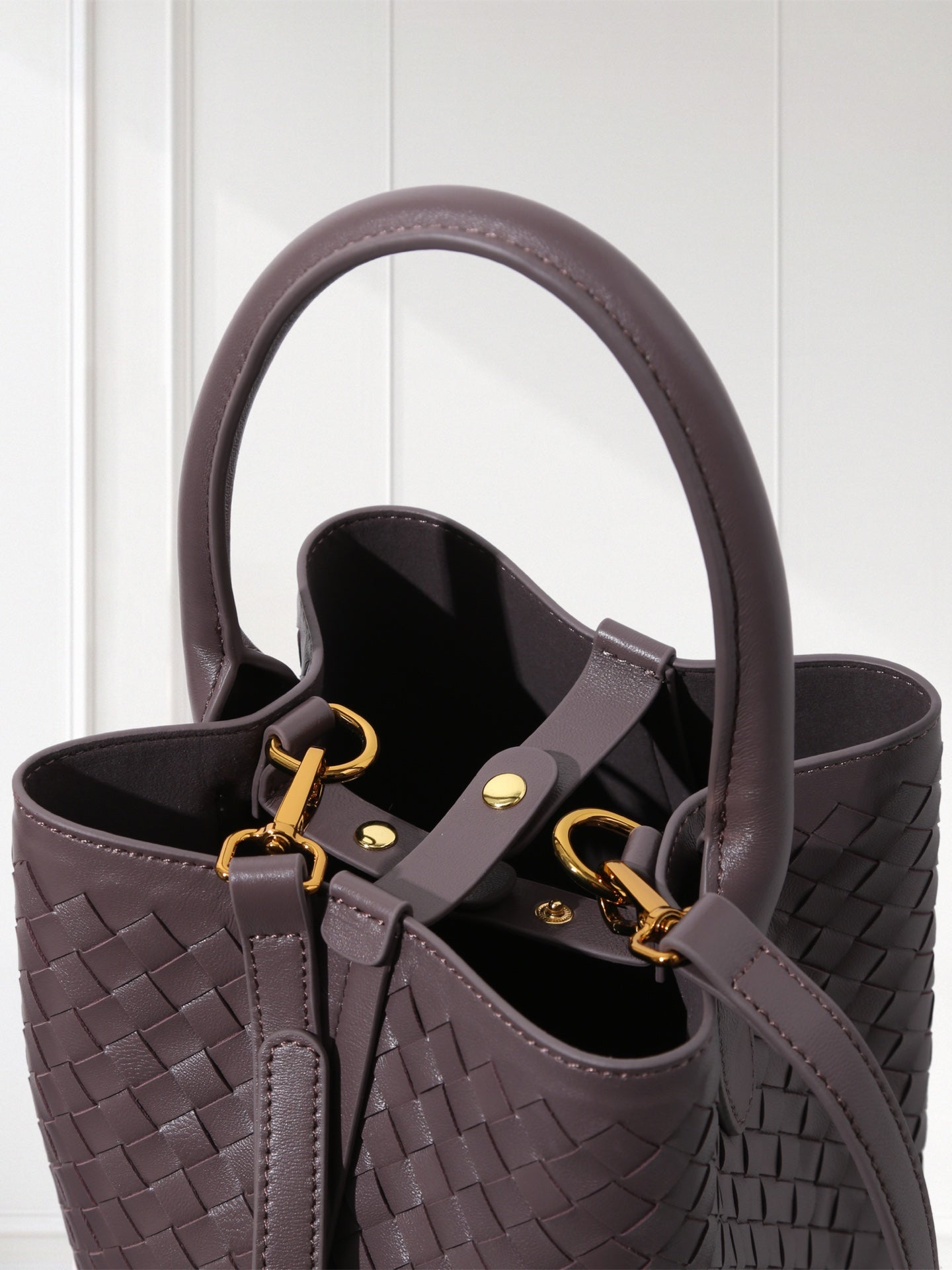 Lambskin Leather Bucket Bag Handwoven, Small Shoulder Bag, Woven Purse Women Classic bag Crossbody Designer Bag, Birthday Gift For Her