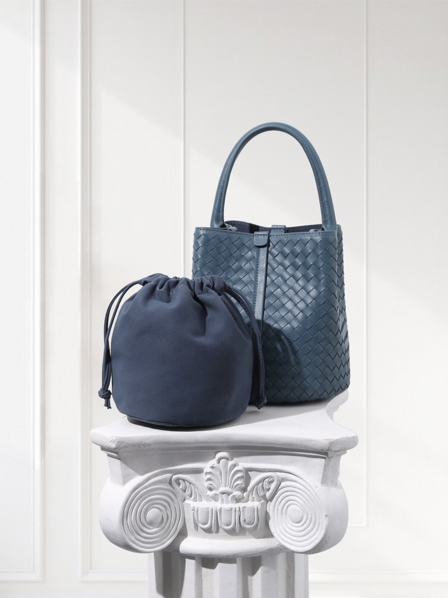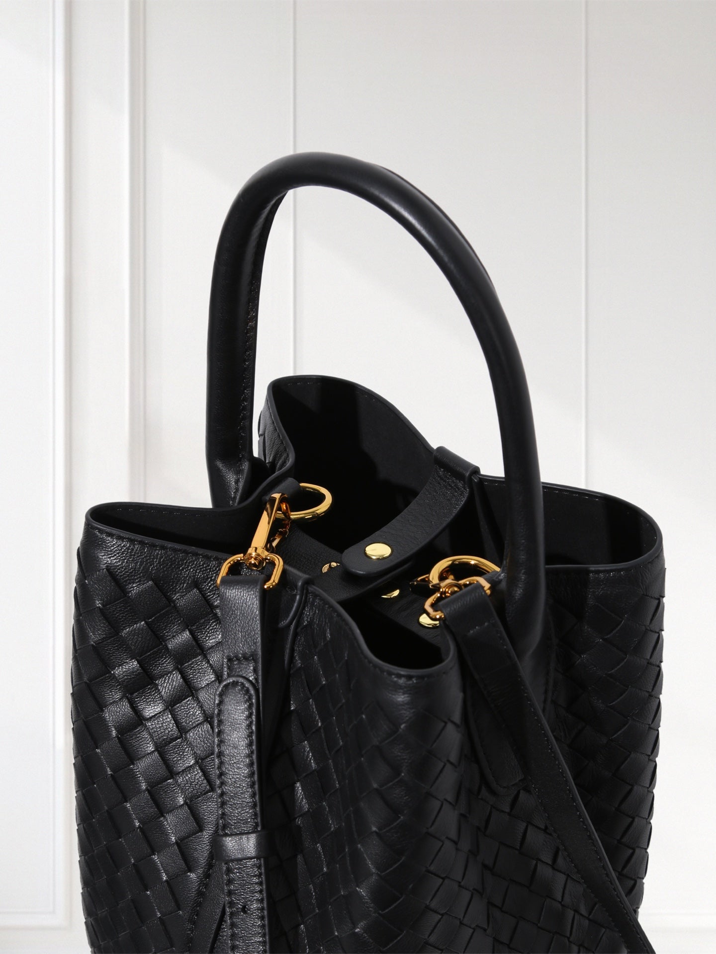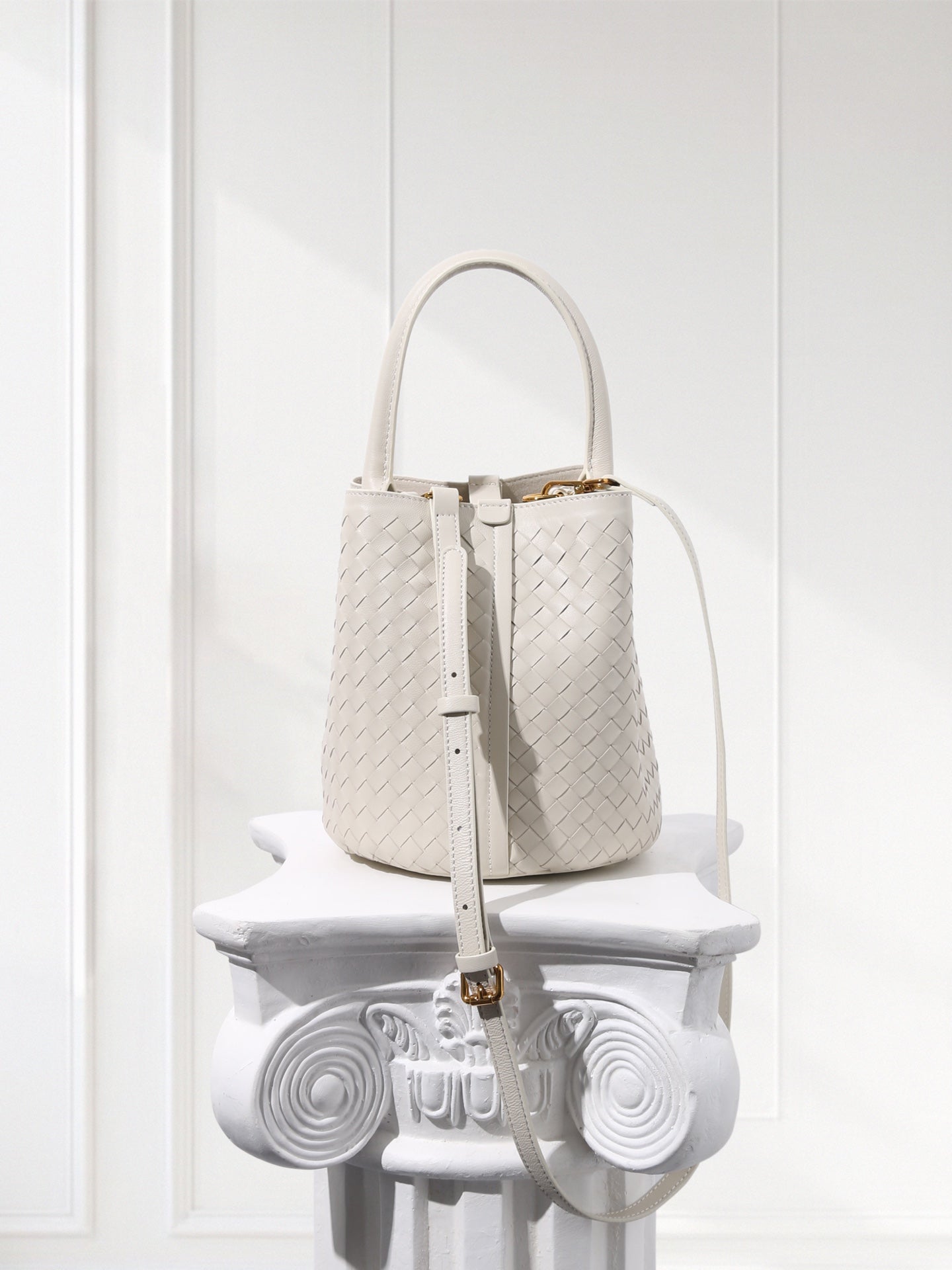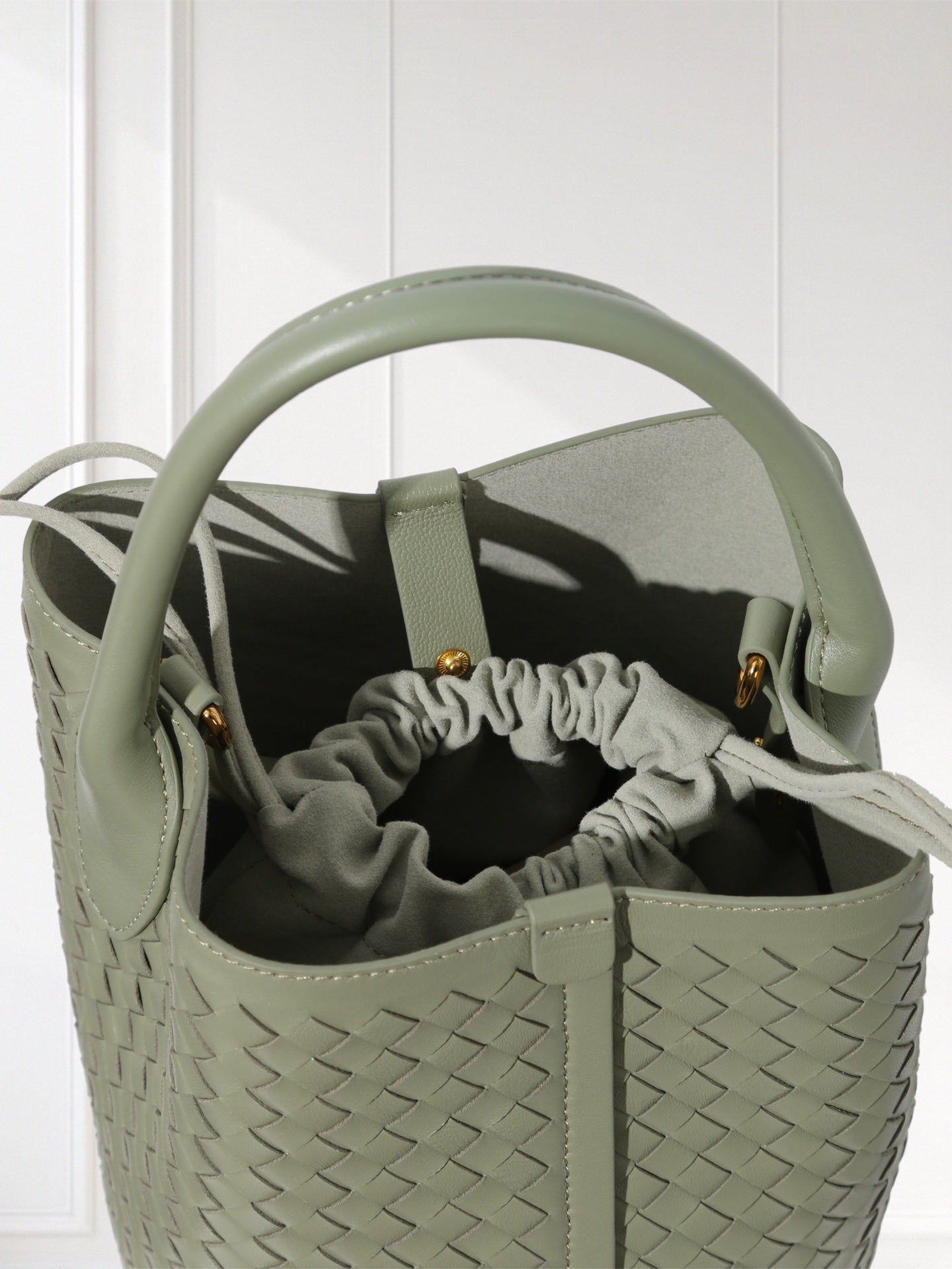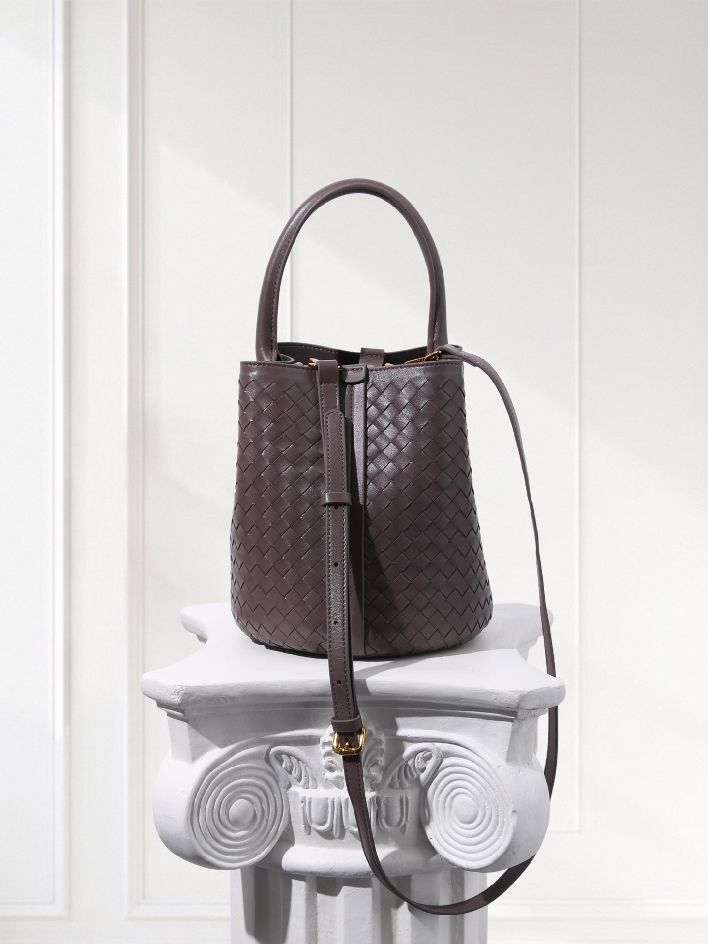 Lambskin Leather Bucket Bag Handwoven, Small Shoulder Bag, Woven Purse Women Classic bag Crossbody Designer Bag, Birthday Gift For Her