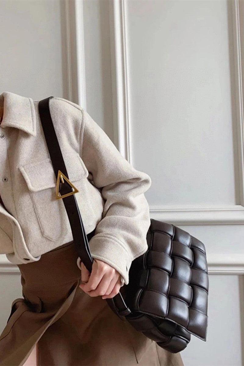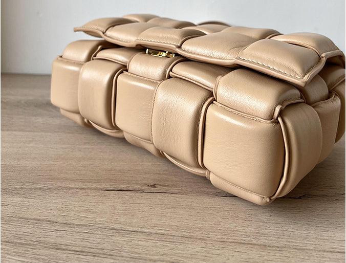 Lambskin Leather Quilted Elegant Shoulder Bag, Small Handwoven Leather Bag, Trendy Boutique Designer Bag, Classic Style Leather Bag, Gift