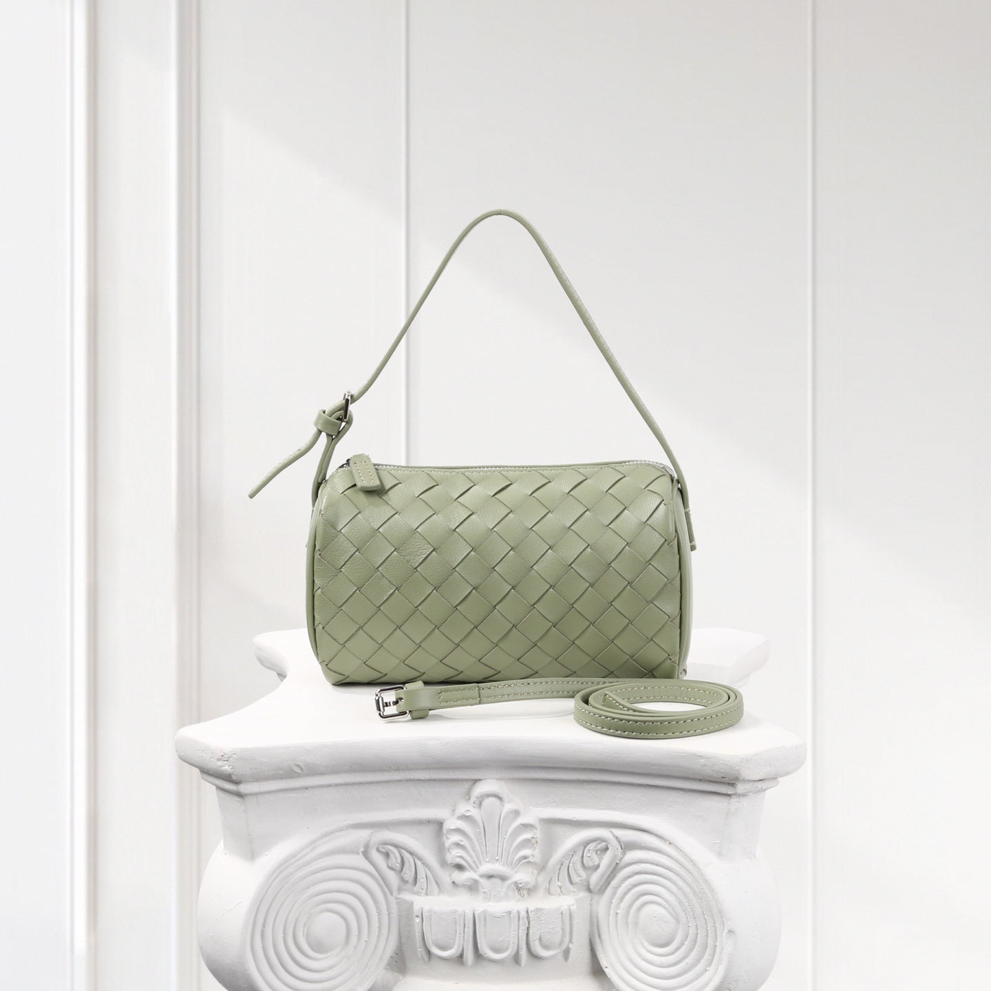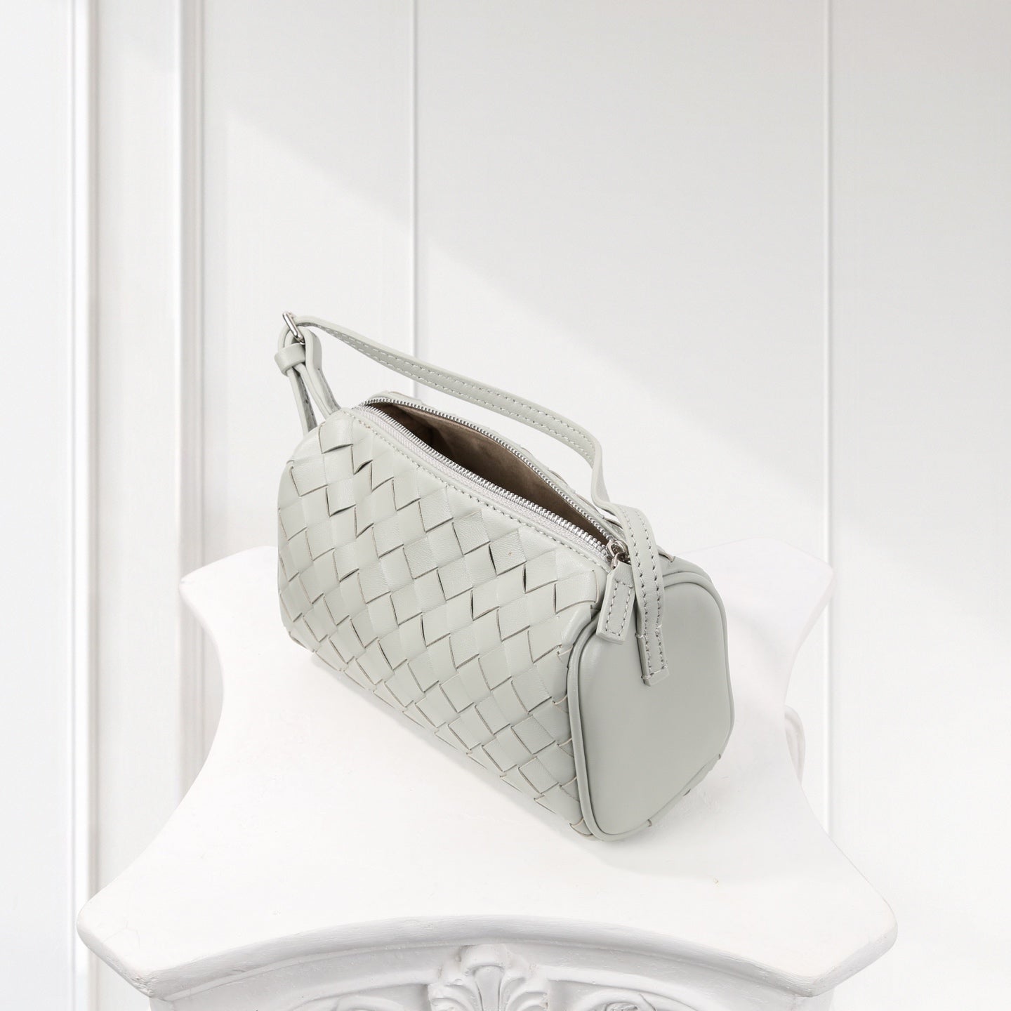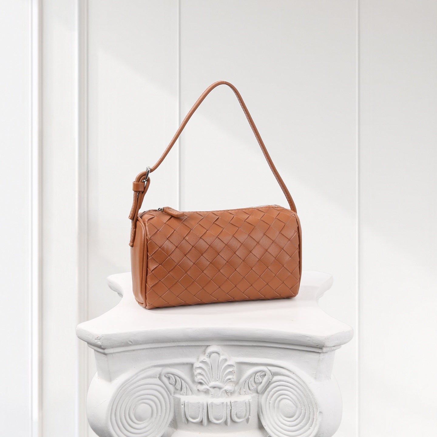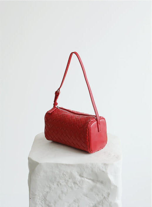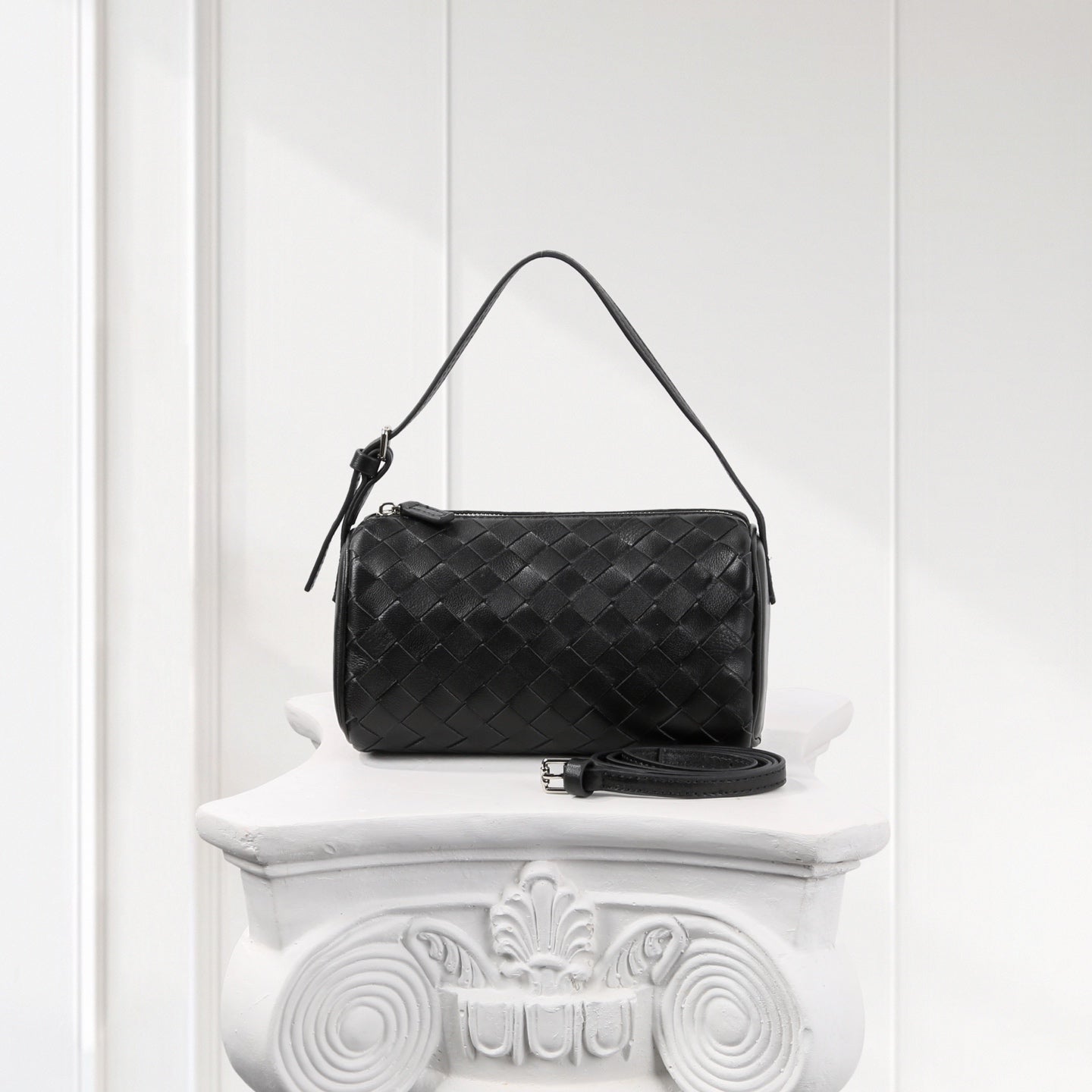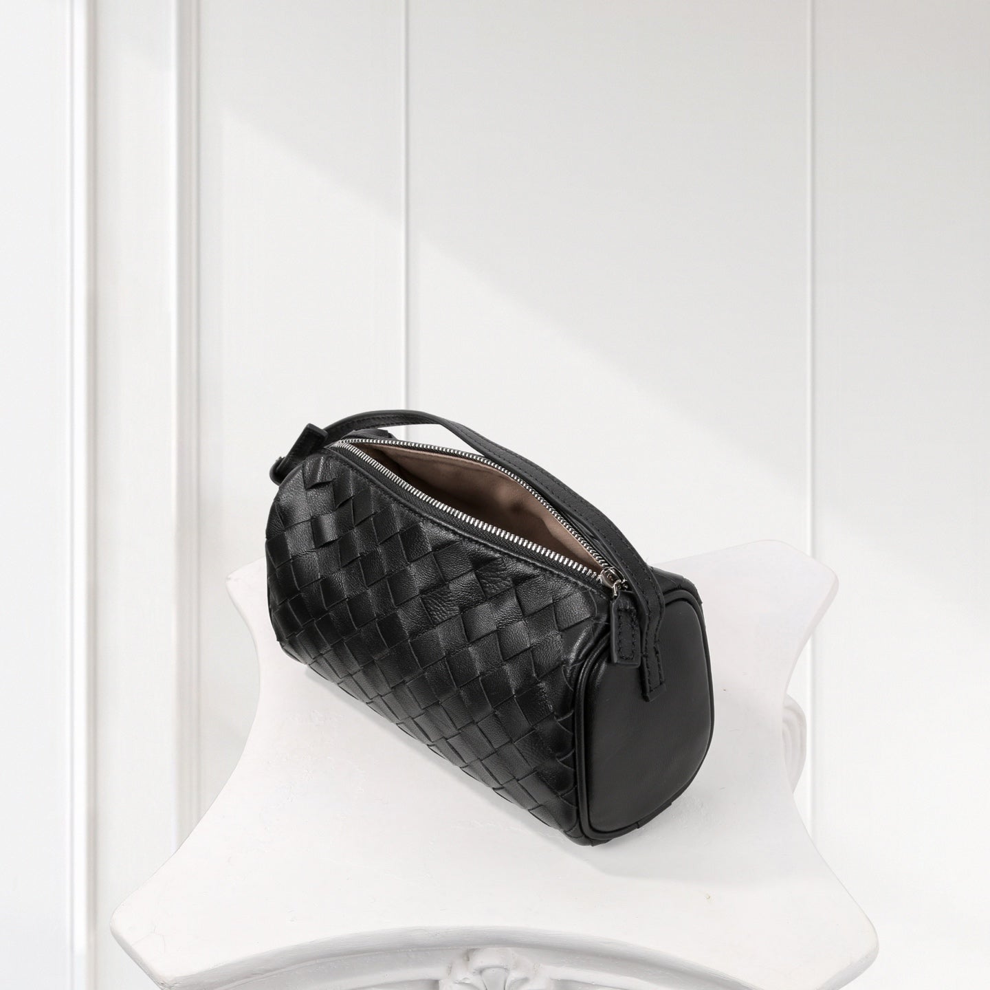 Lambskin Leather Woven Boston Bag, Mini Designer Bag, Leather Box Shoulder Bag, Classic Leather Handbag, Minimalist Genuine Leather Crossbody Purse
