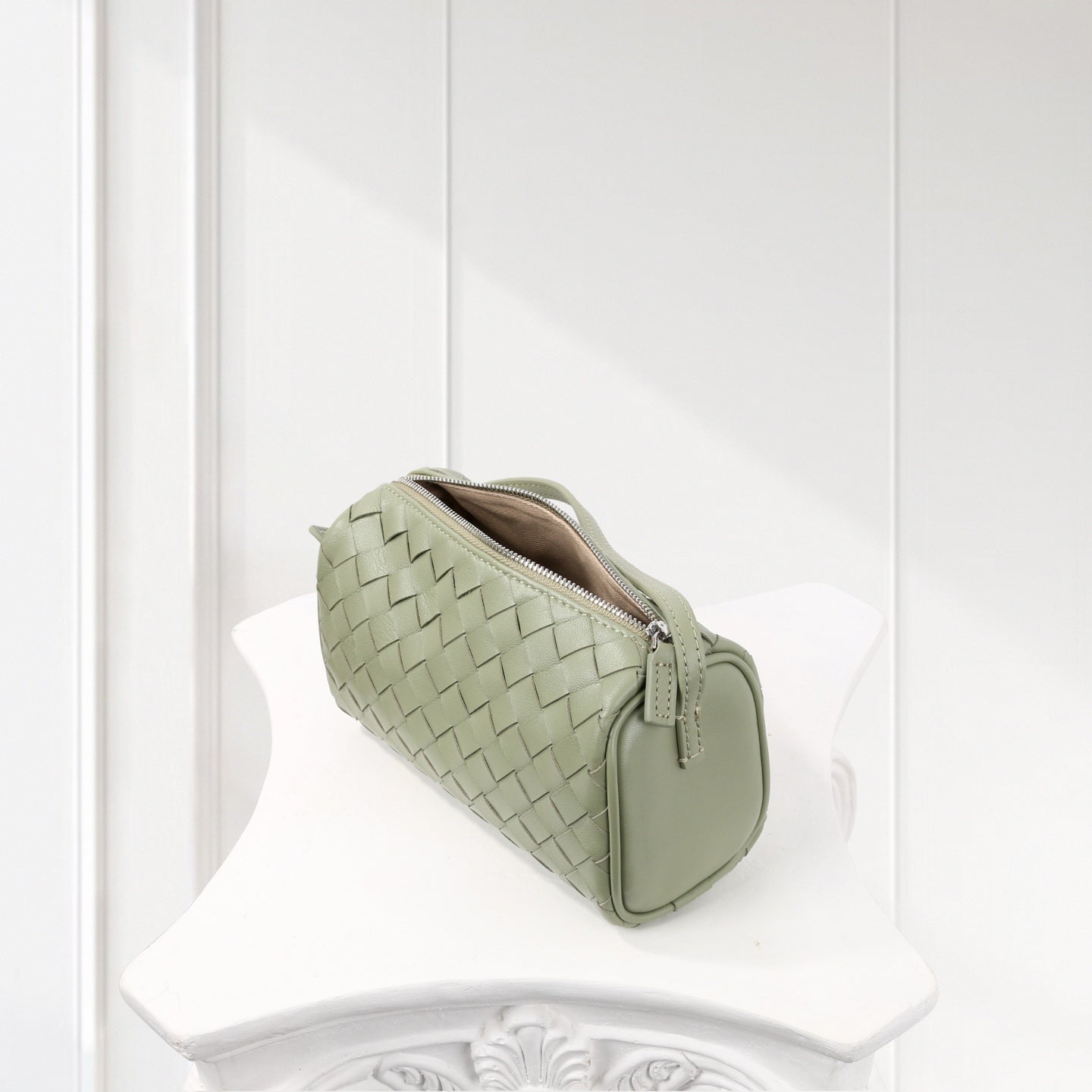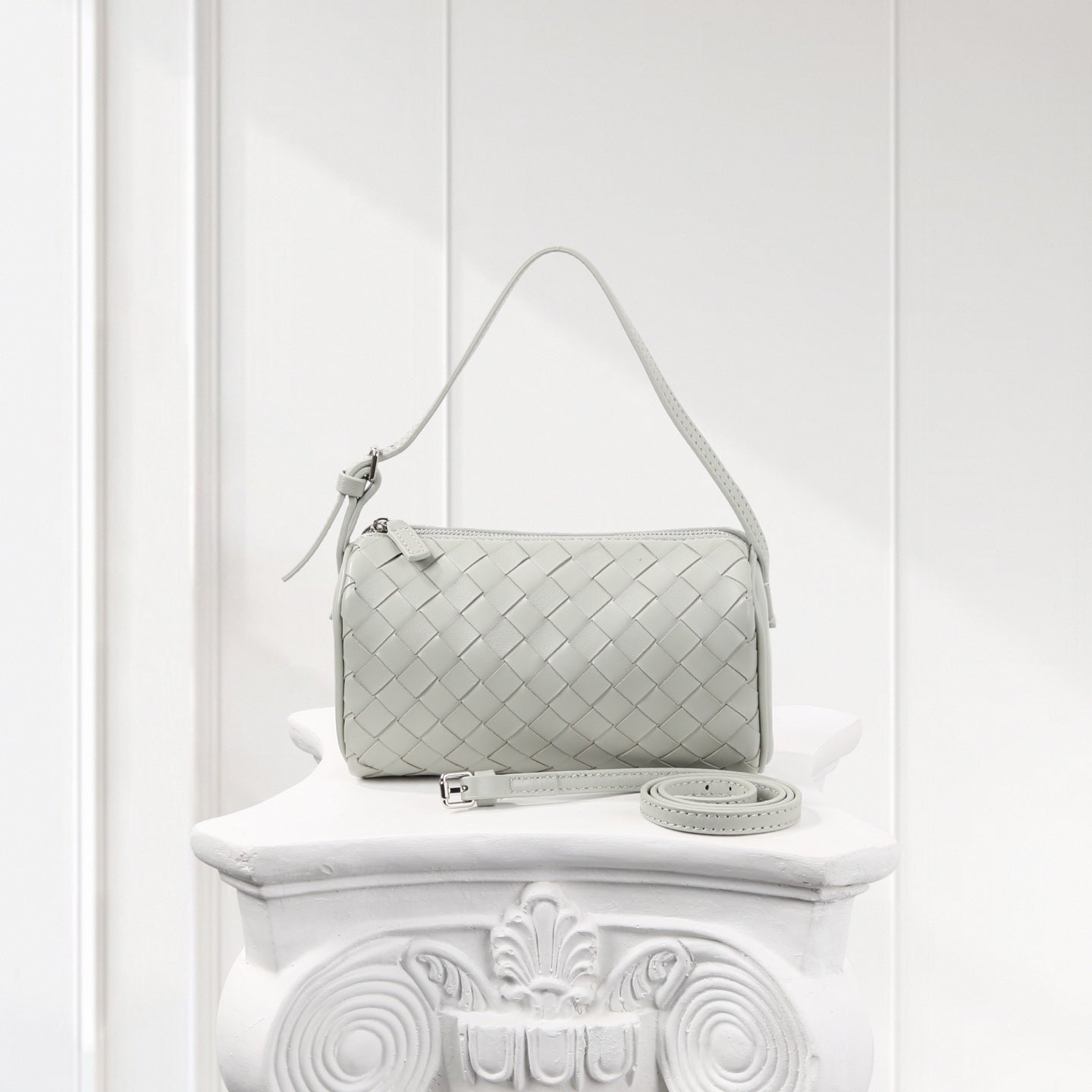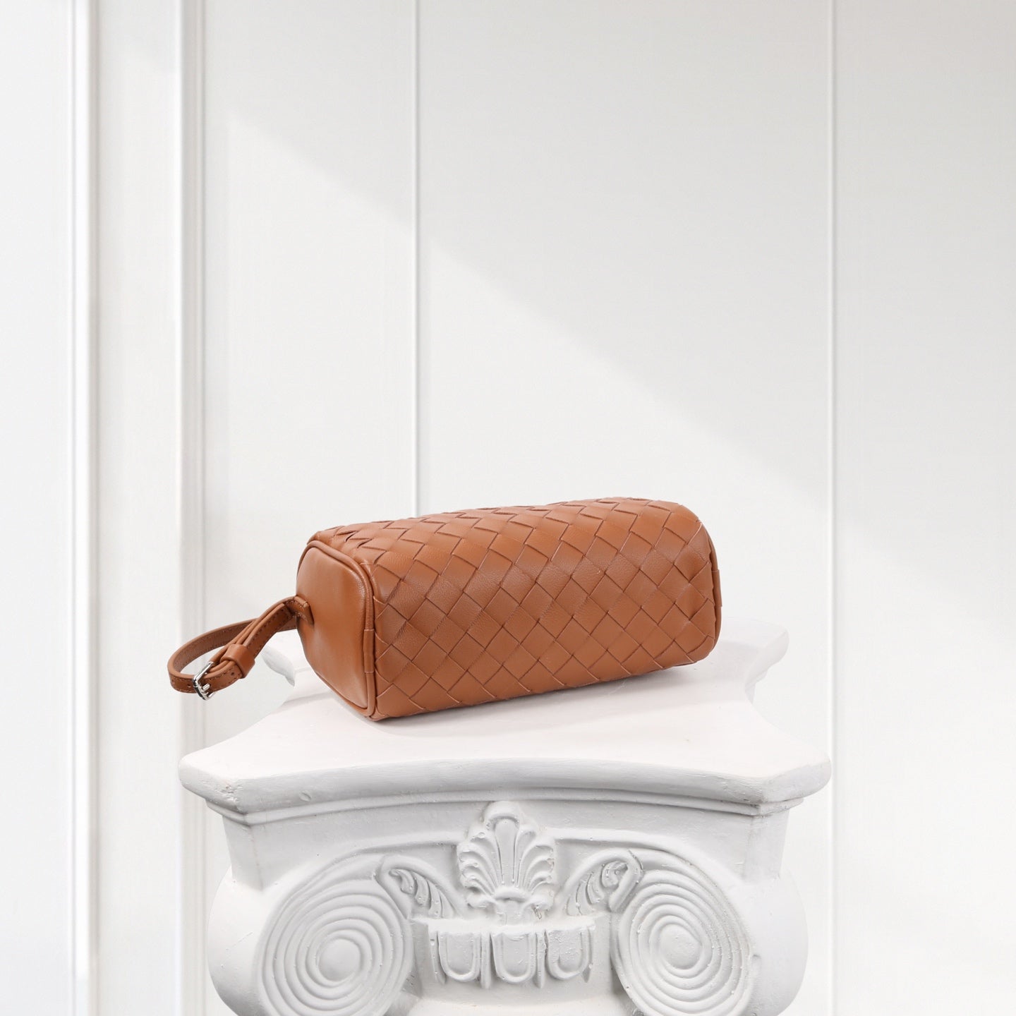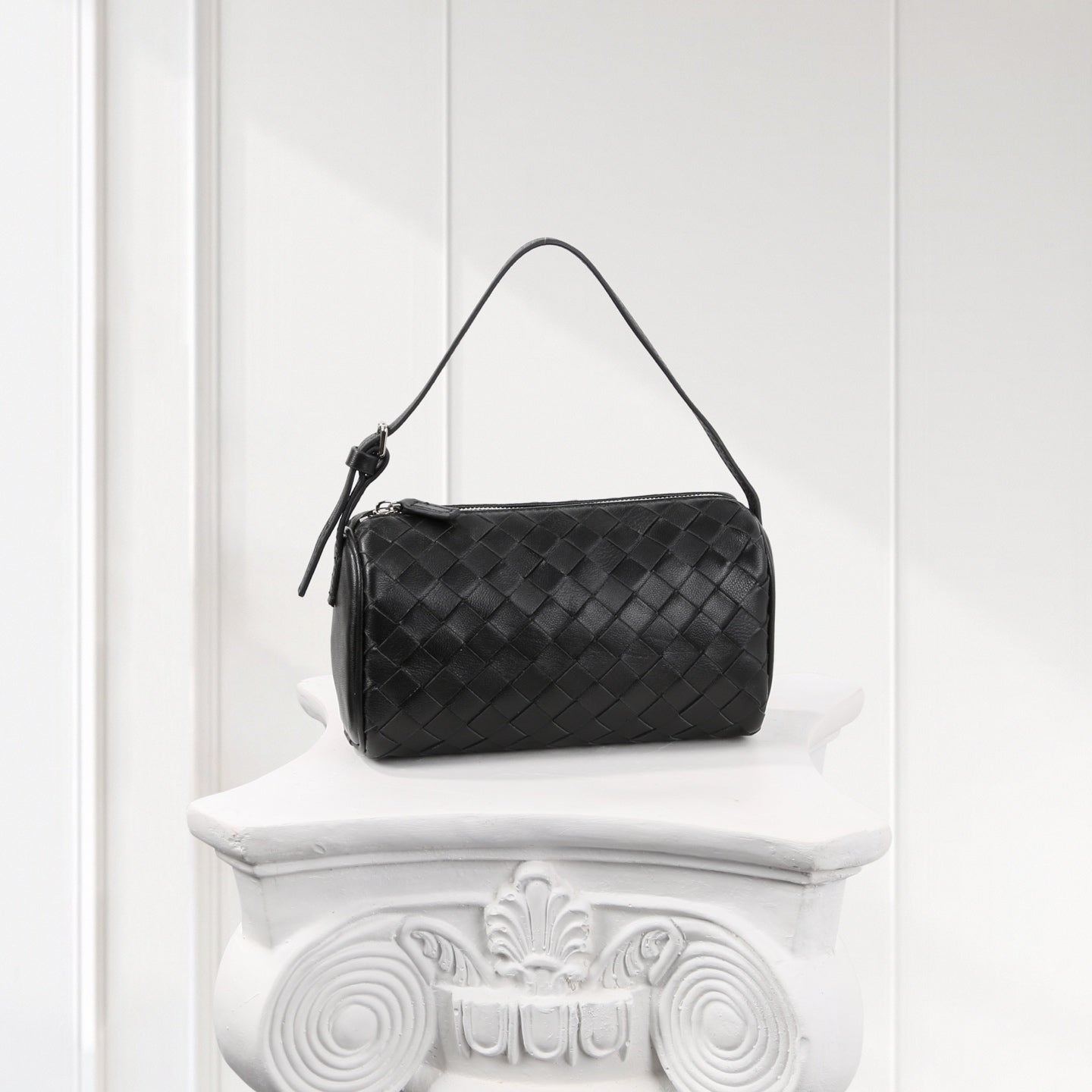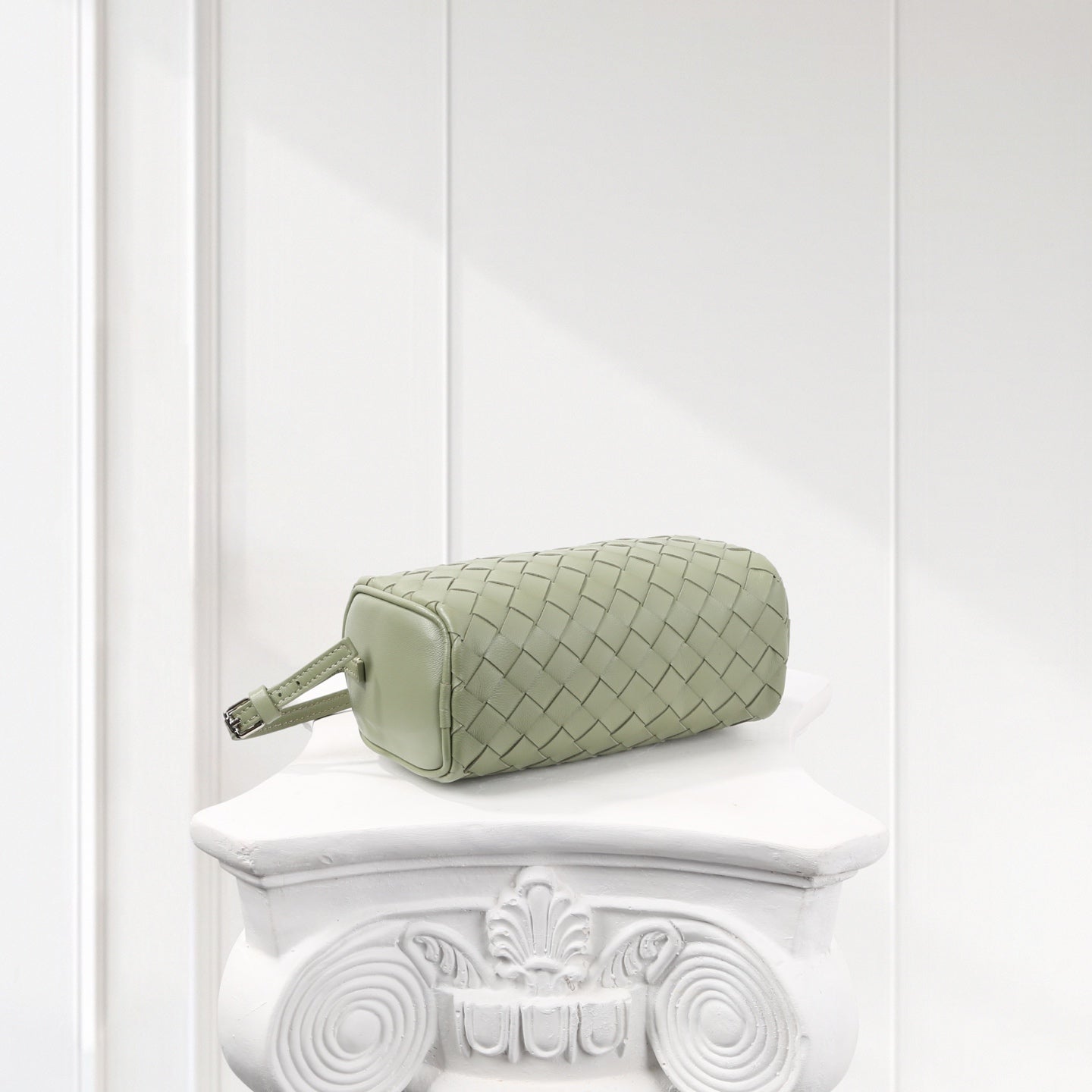Lambskin Leather Woven Boston Bag, Mini Designer Bag, Leather Box Shoulder Bag, Classic Leather Handbag, Minimalist Genuine Leather Crossbody Purse