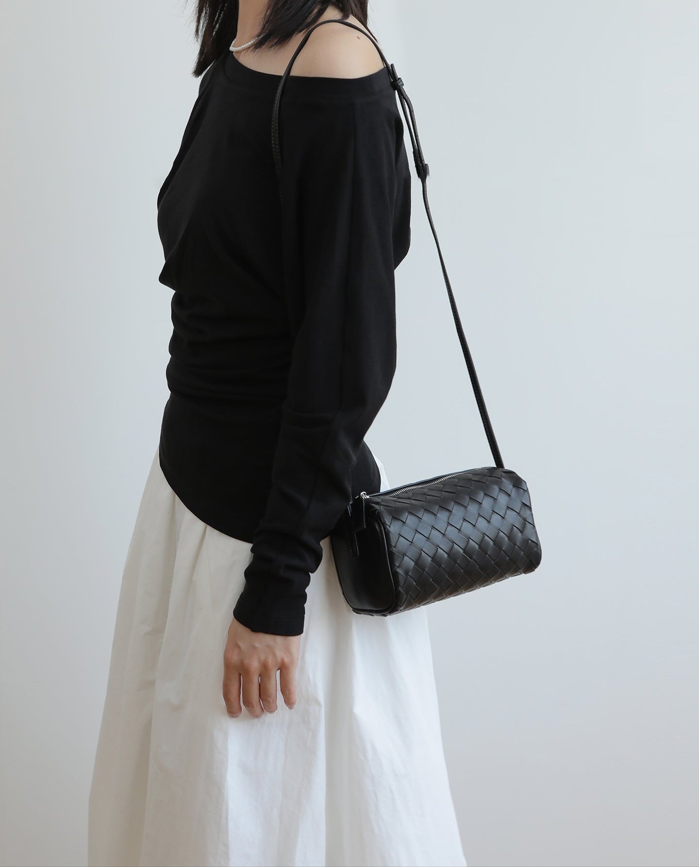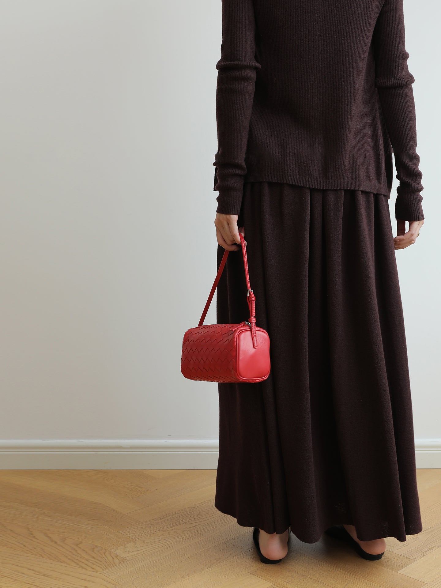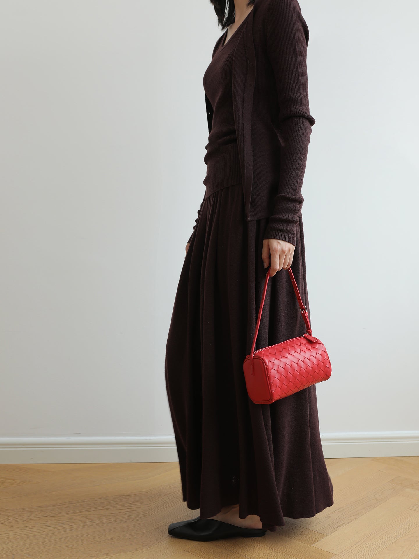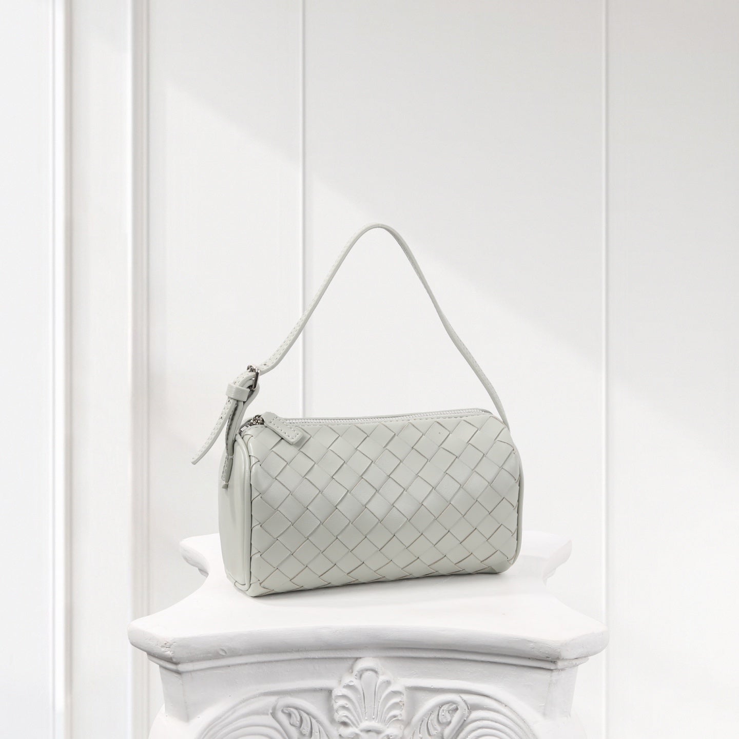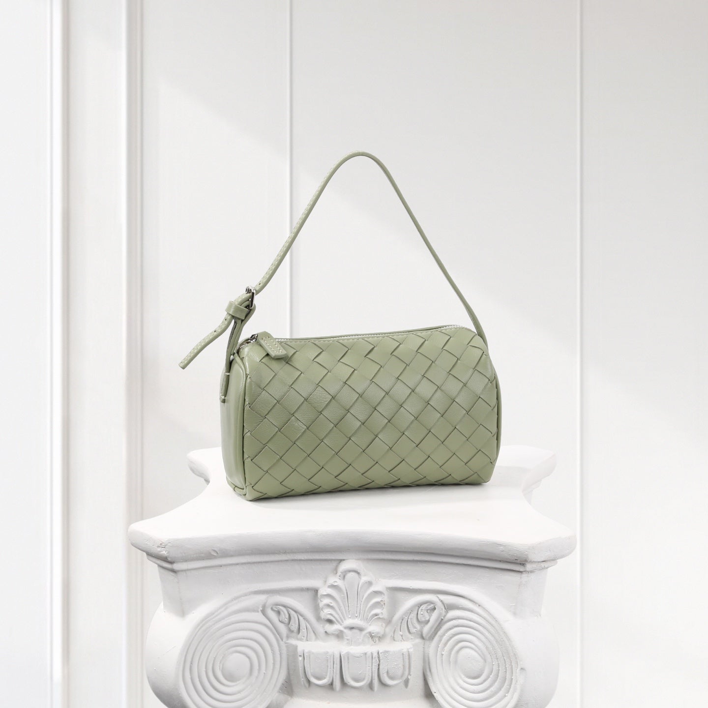 Lambskin Leather Woven Boston Bag, Mini Designer Bag, Leather Box Shoulder Bag, Classic Leather Handbag, Minimalist Genuine Leather Crossbody Purse