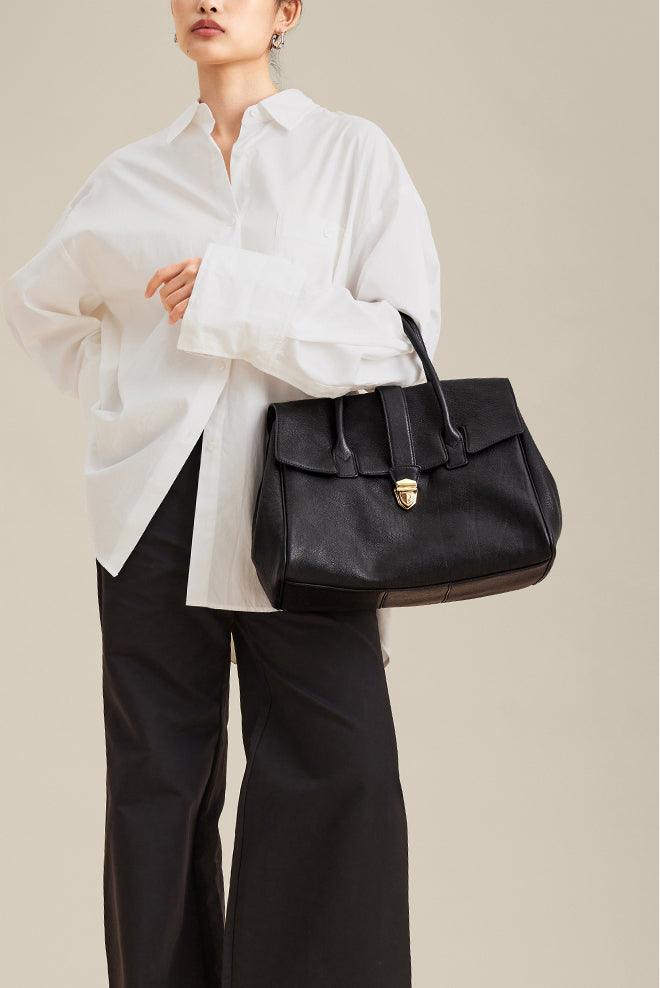 Large Elegant Soft Genuine Leather Tote Briefcase for Women