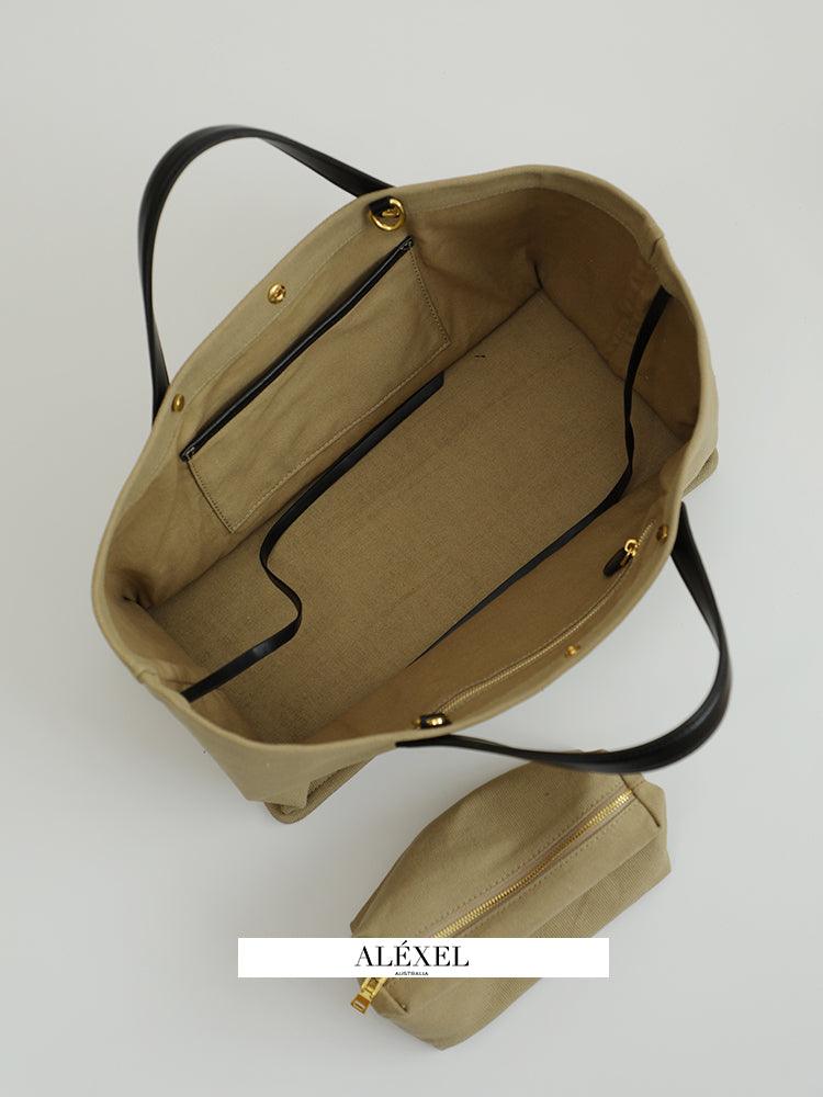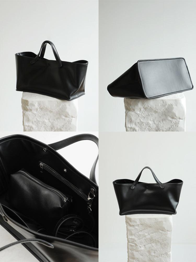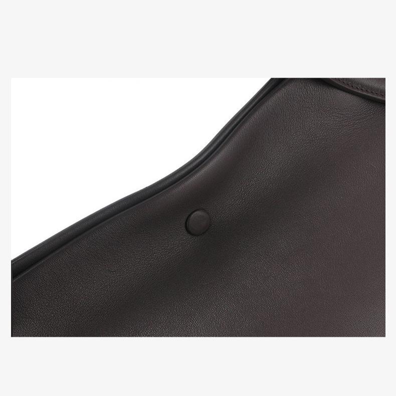 Very light weight, occassional bag. I’ve seen this on many other we sites for less $. I dont believe alexel crafts actually makes this bag since it is offered so widely online. Made me a little disappointed. Feels and smells like leather, lined with cloth. Closes smoothly.