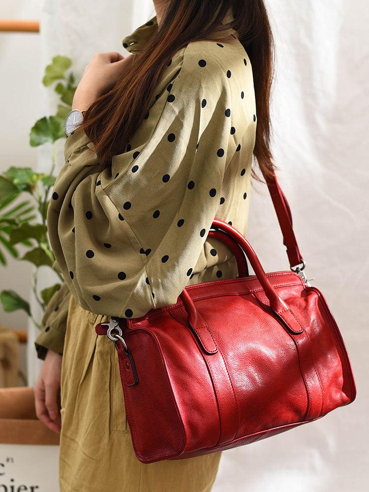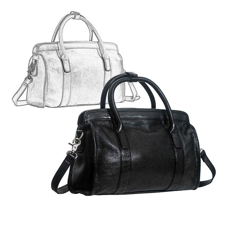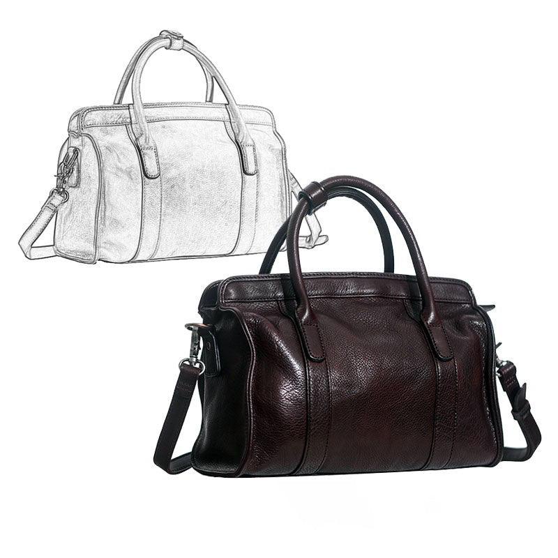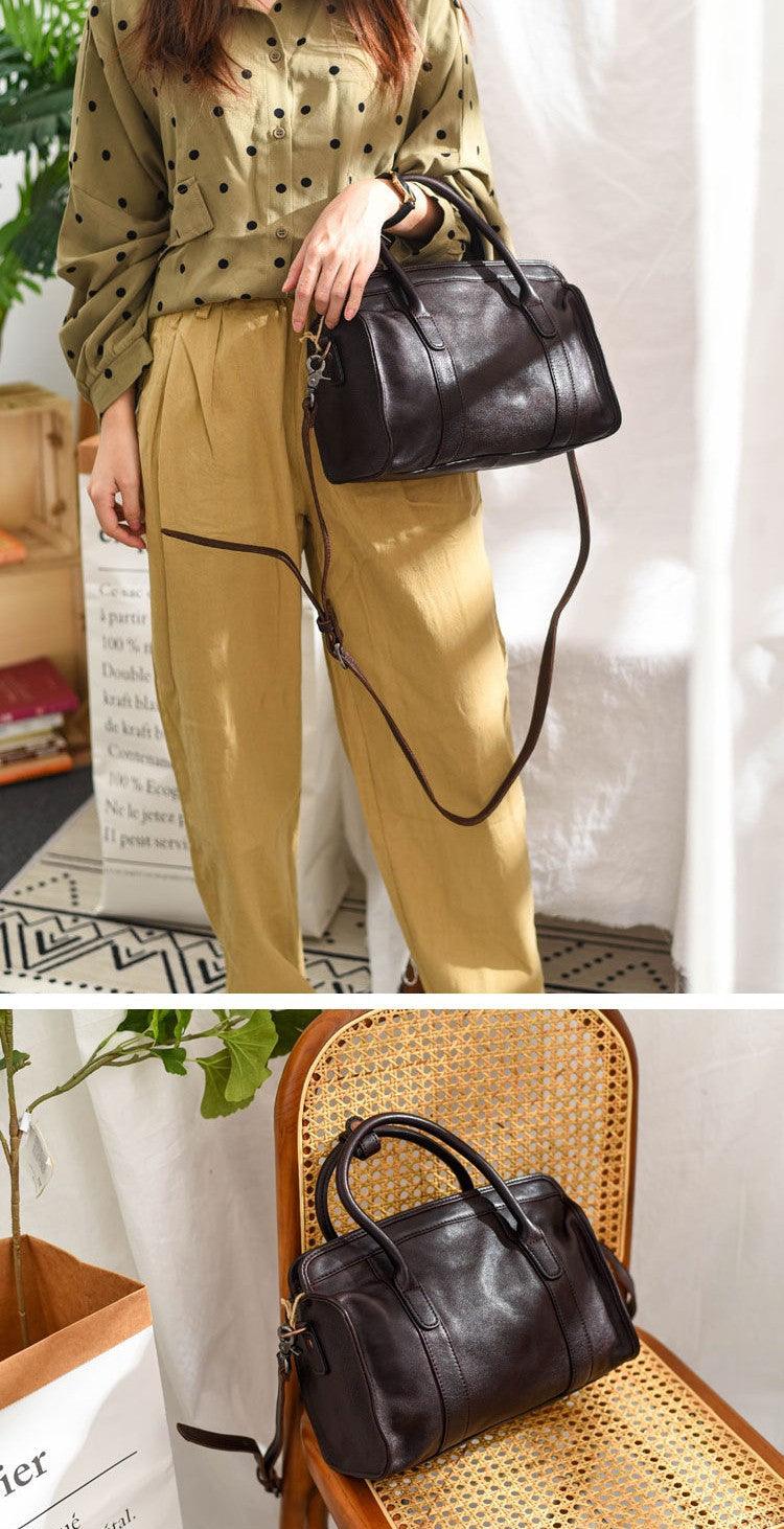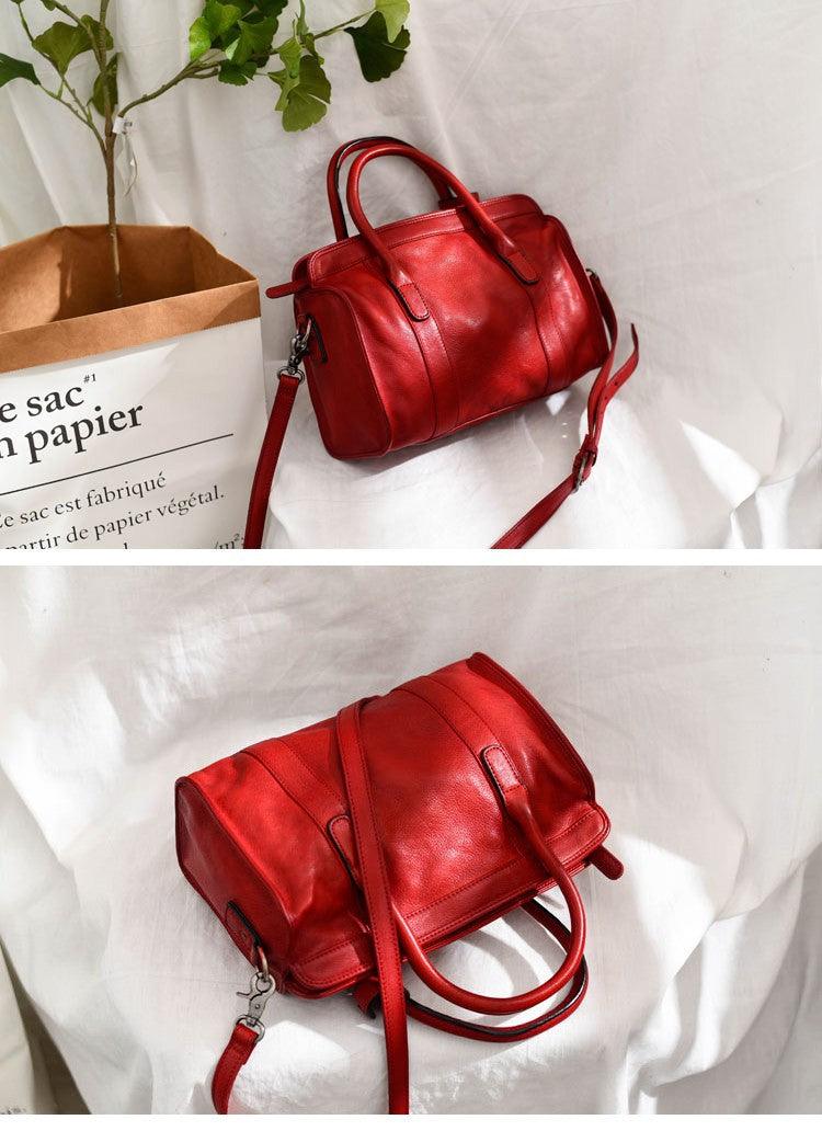 Large Size Retro Handcrafted Leather Tote Bag | Full Grain Leather Shoulder Bag | Cowhide Crossbody Bag | Boston Bag Handbag | Unisex Gift