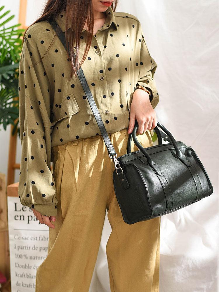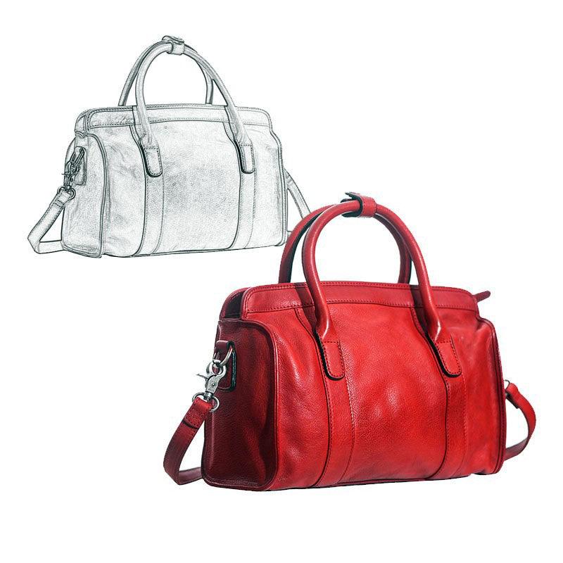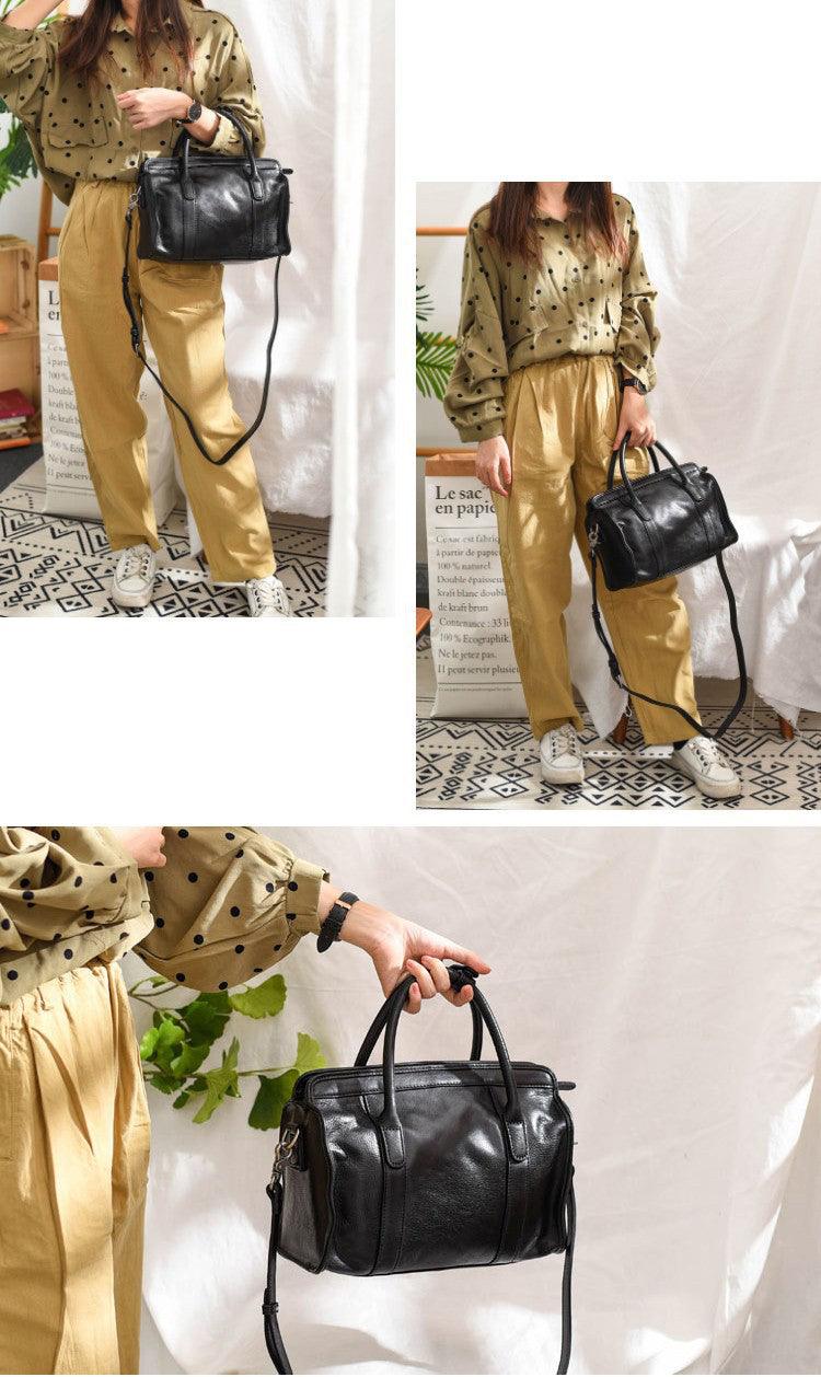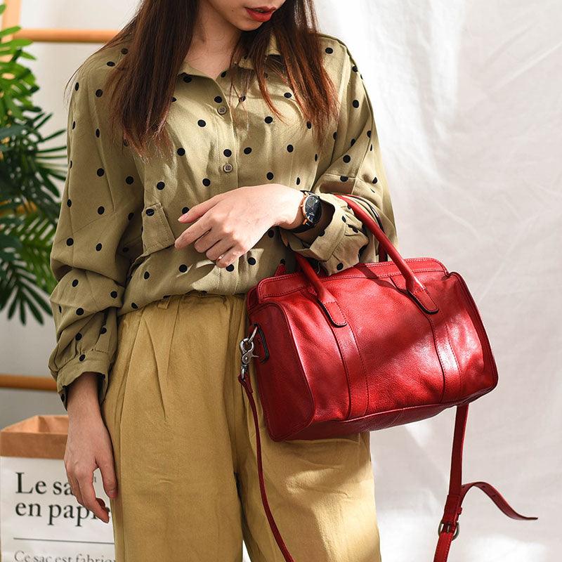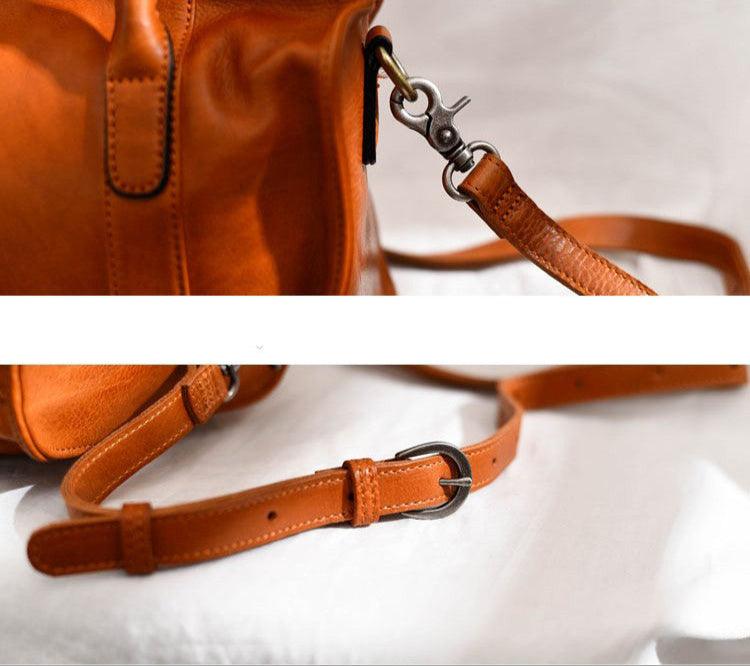 Large Size Retro Handcrafted Leather Tote Bag | Full Grain Leather Shoulder Bag | Cowhide Crossbody Bag | Boston Bag Handbag | Unisex Gift