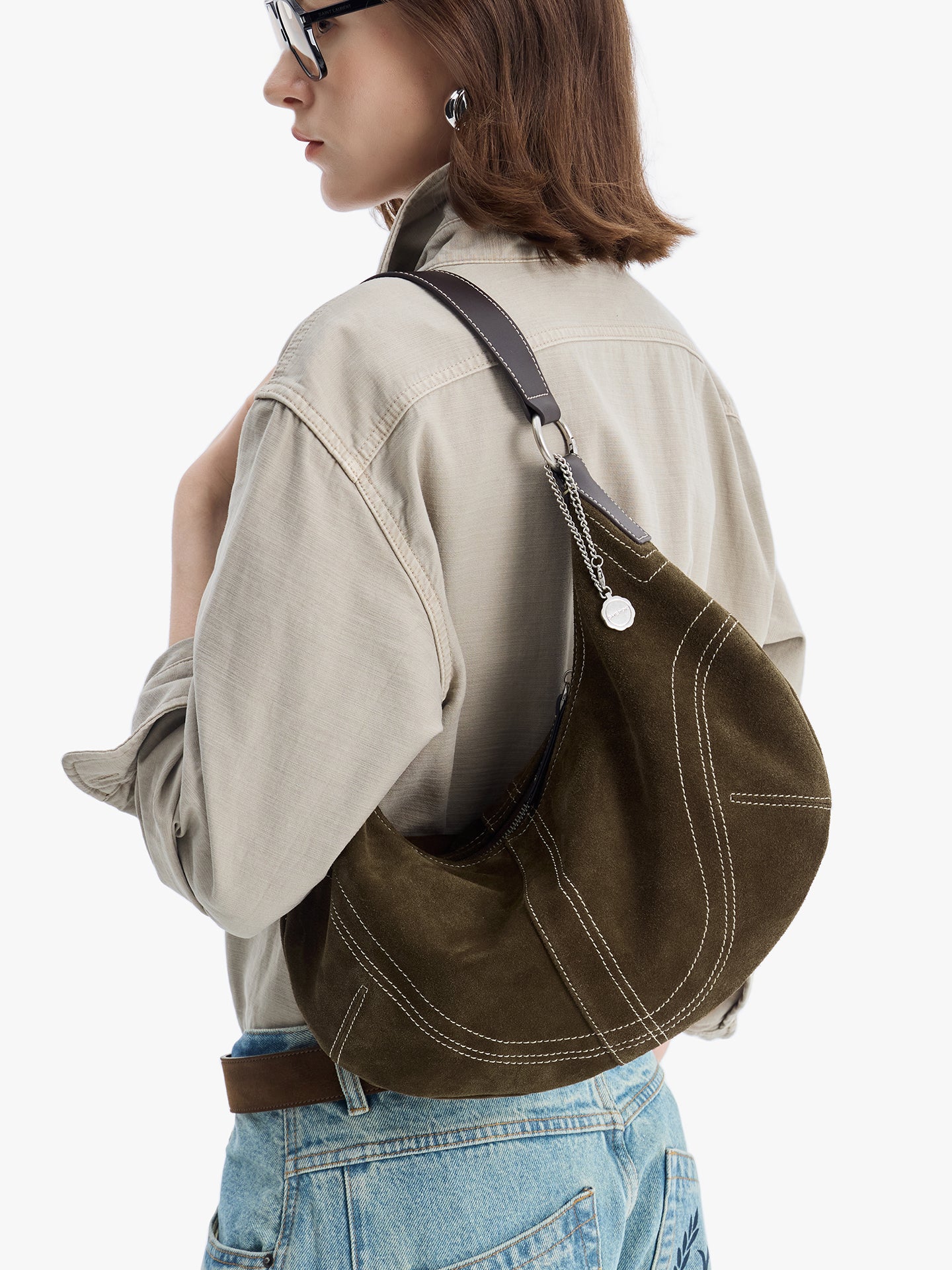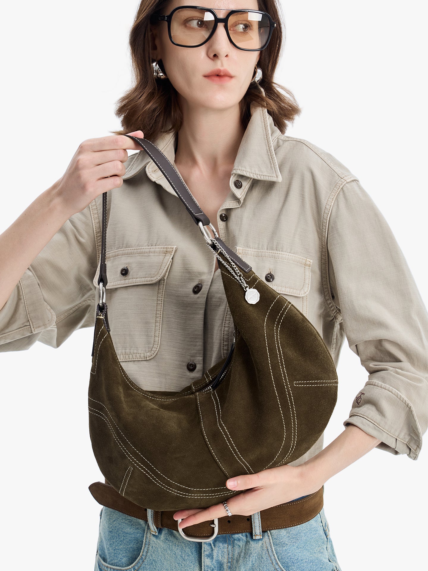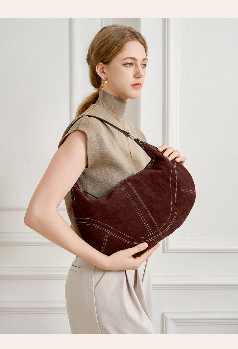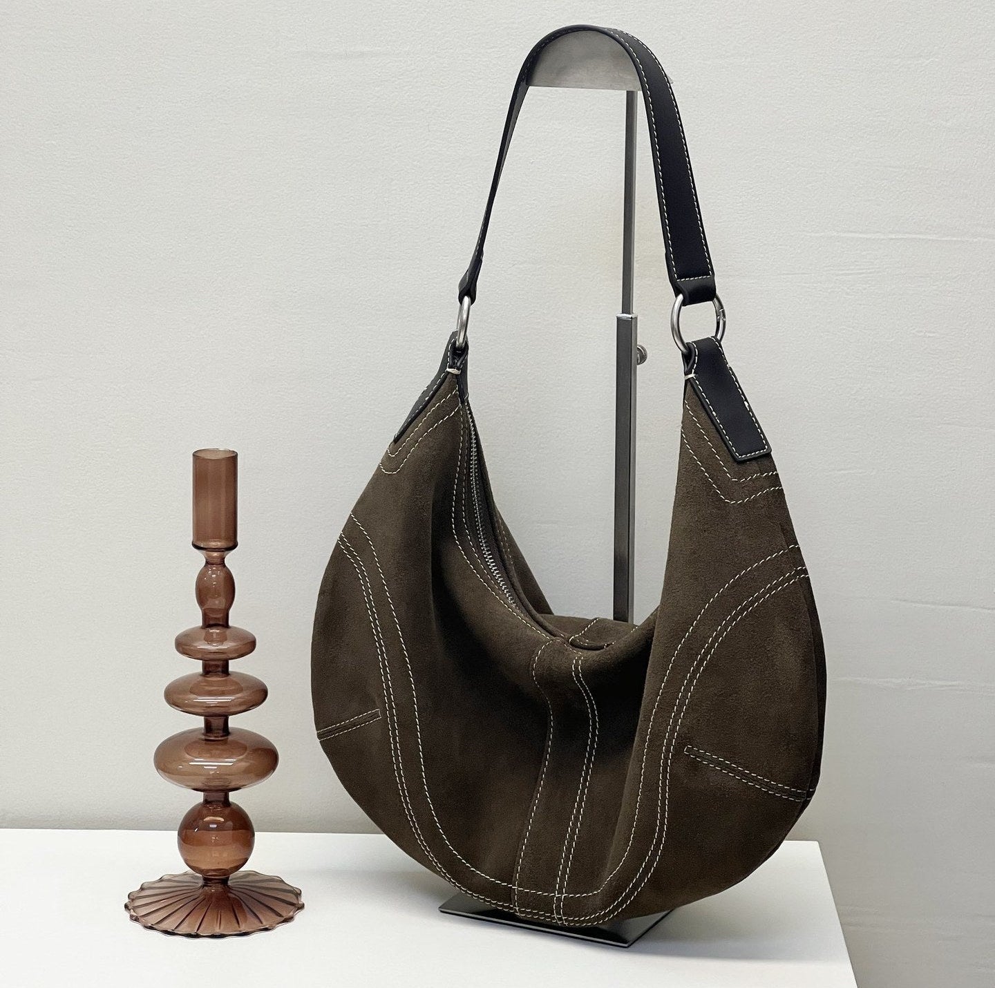 Large Suede Crossbody Purse, Black Suede Slouchy Bag & Crescent Hobo for Women