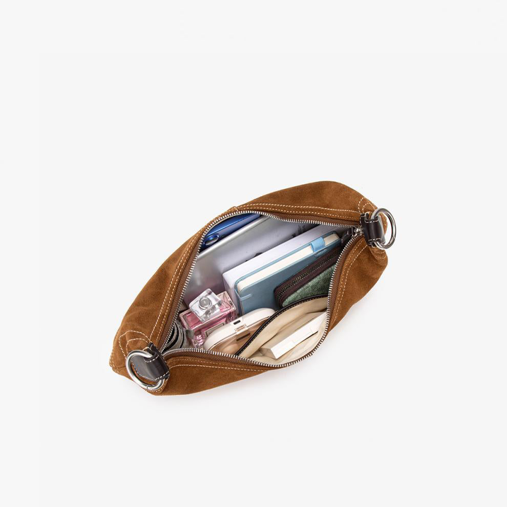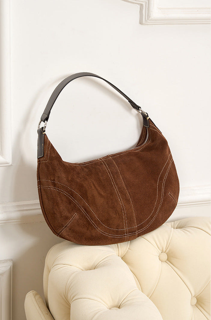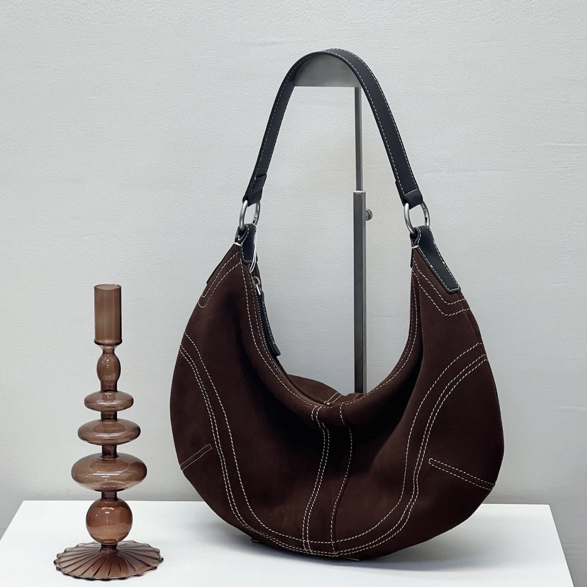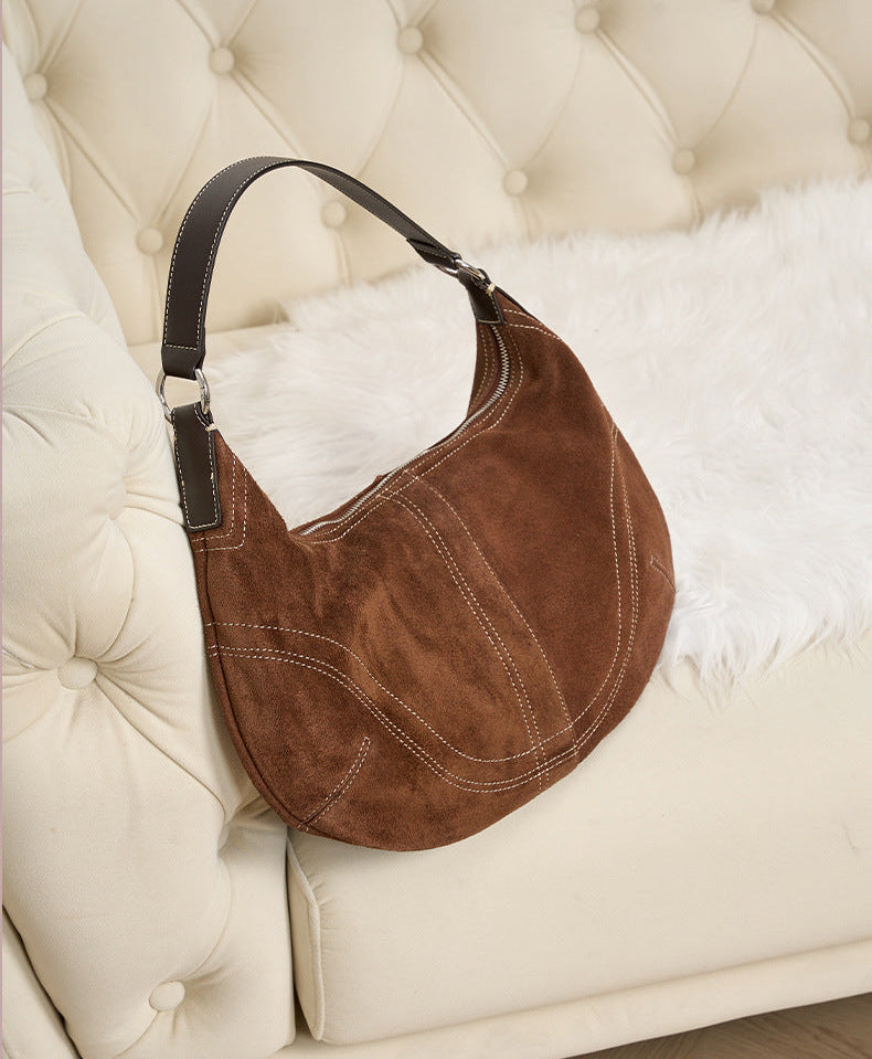 Large Suede Crossbody Purse, Black Suede Slouchy Bag & Crescent Hobo for Women