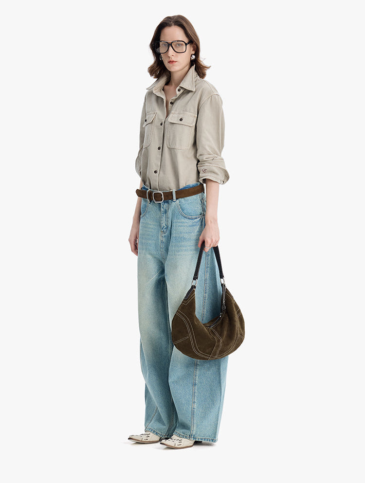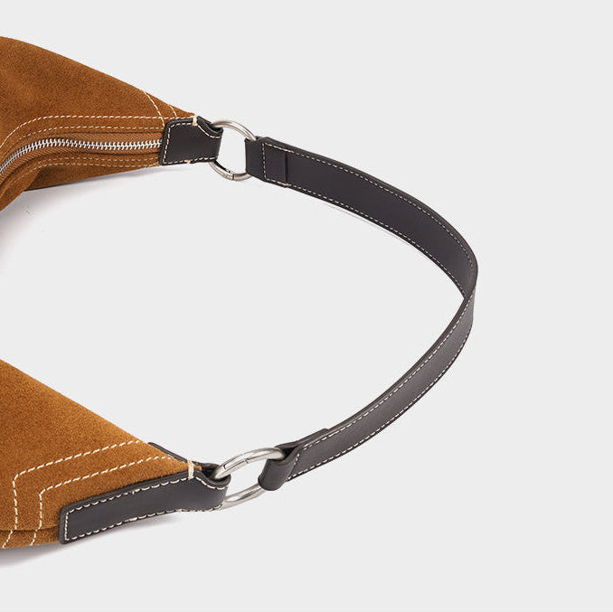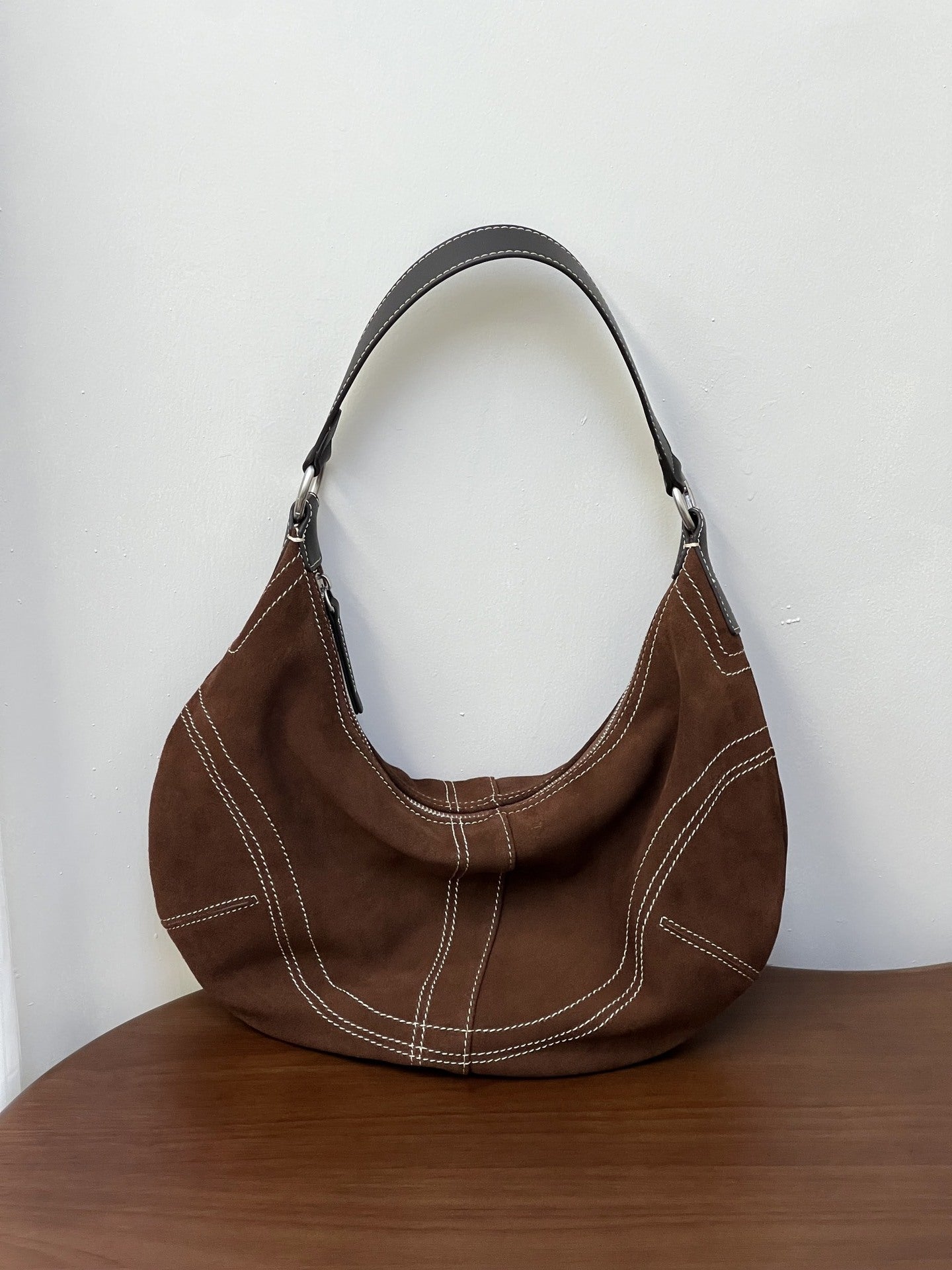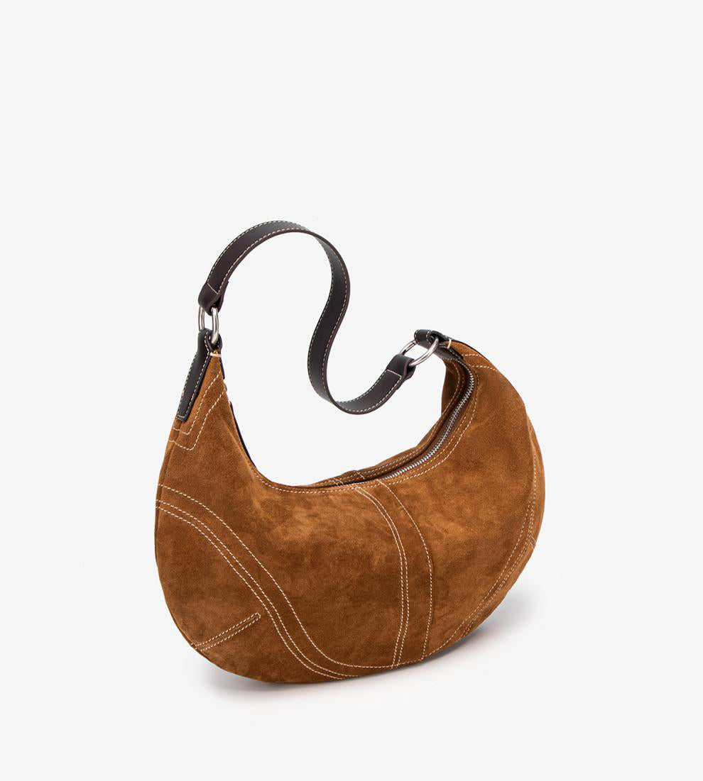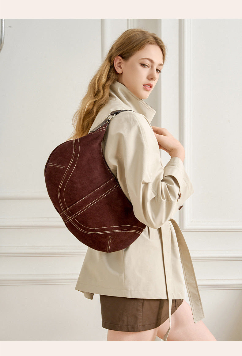 Large Suede Crossbody Purse, Black Suede Slouchy Bag & Crescent Hobo for Women