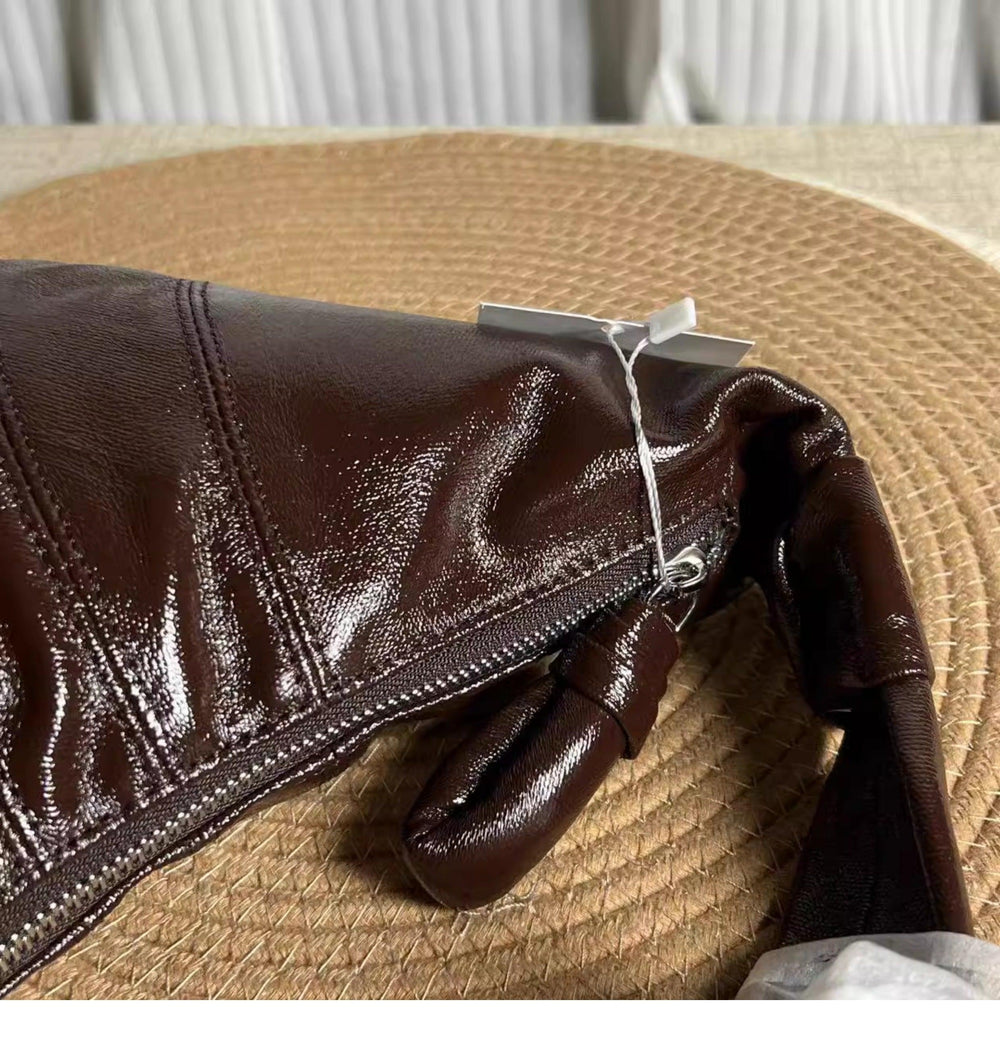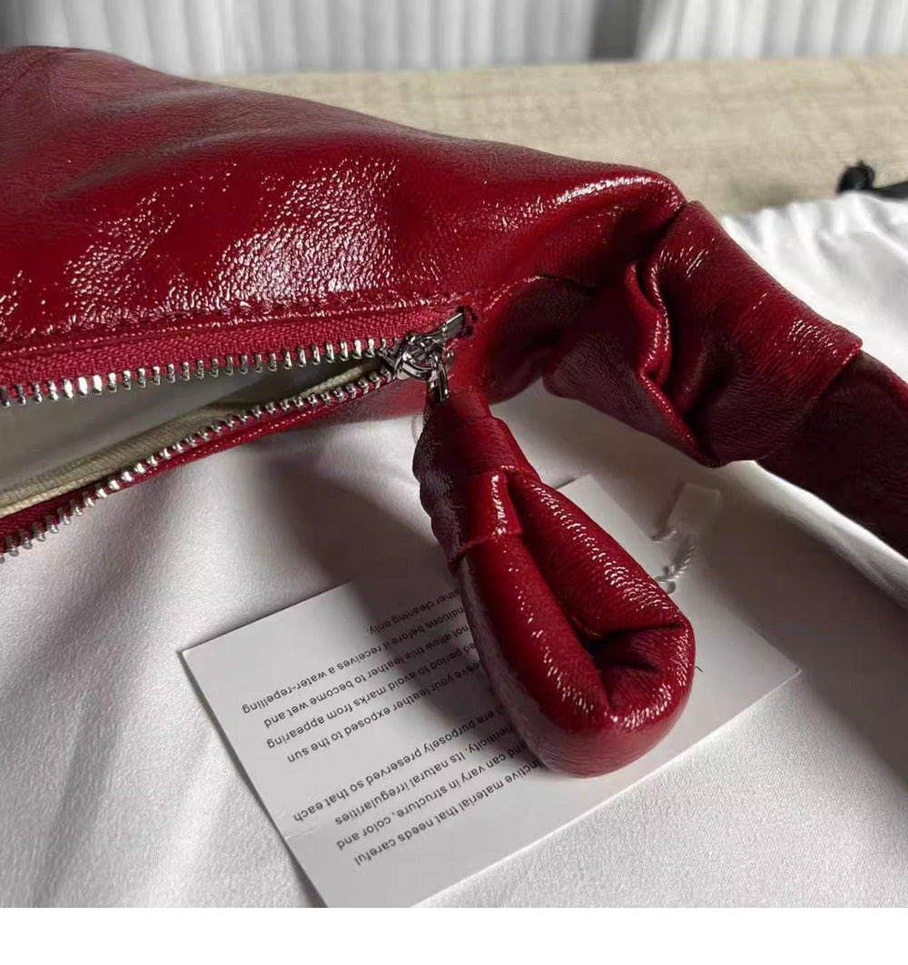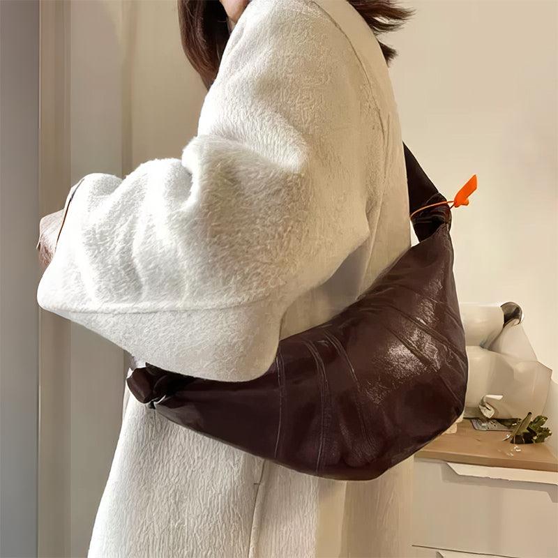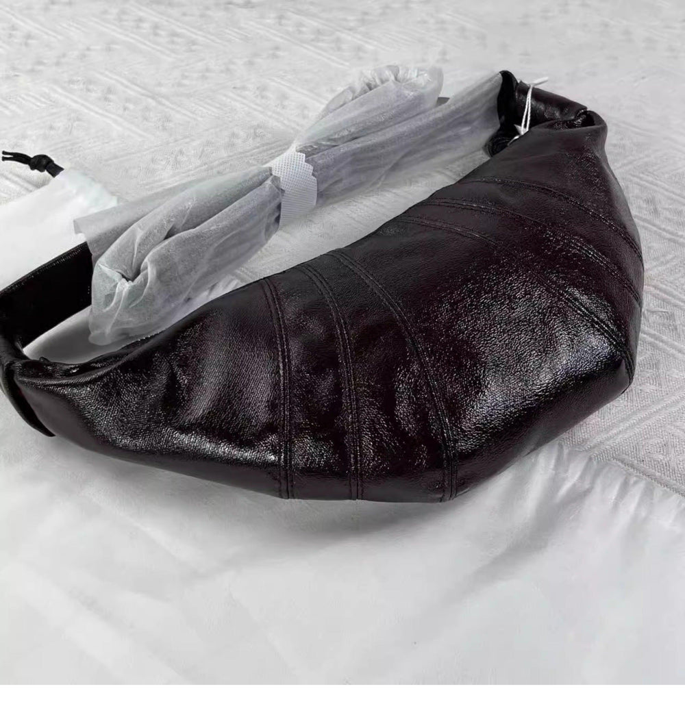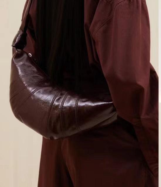 Very light weight, occassional bag. I’ve seen this on many other we sites for less $. I dont believe alexel crafts actually makes this bag since it is offered so widely online. Made me a little disappointed. Feels and smells like leather, lined with cloth. Closes smoothly.