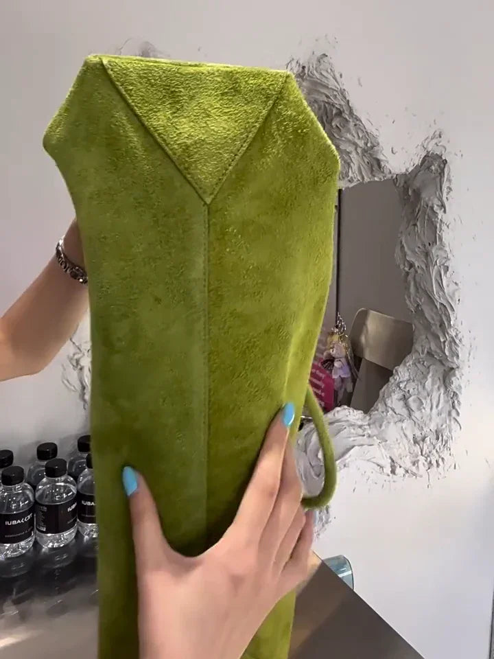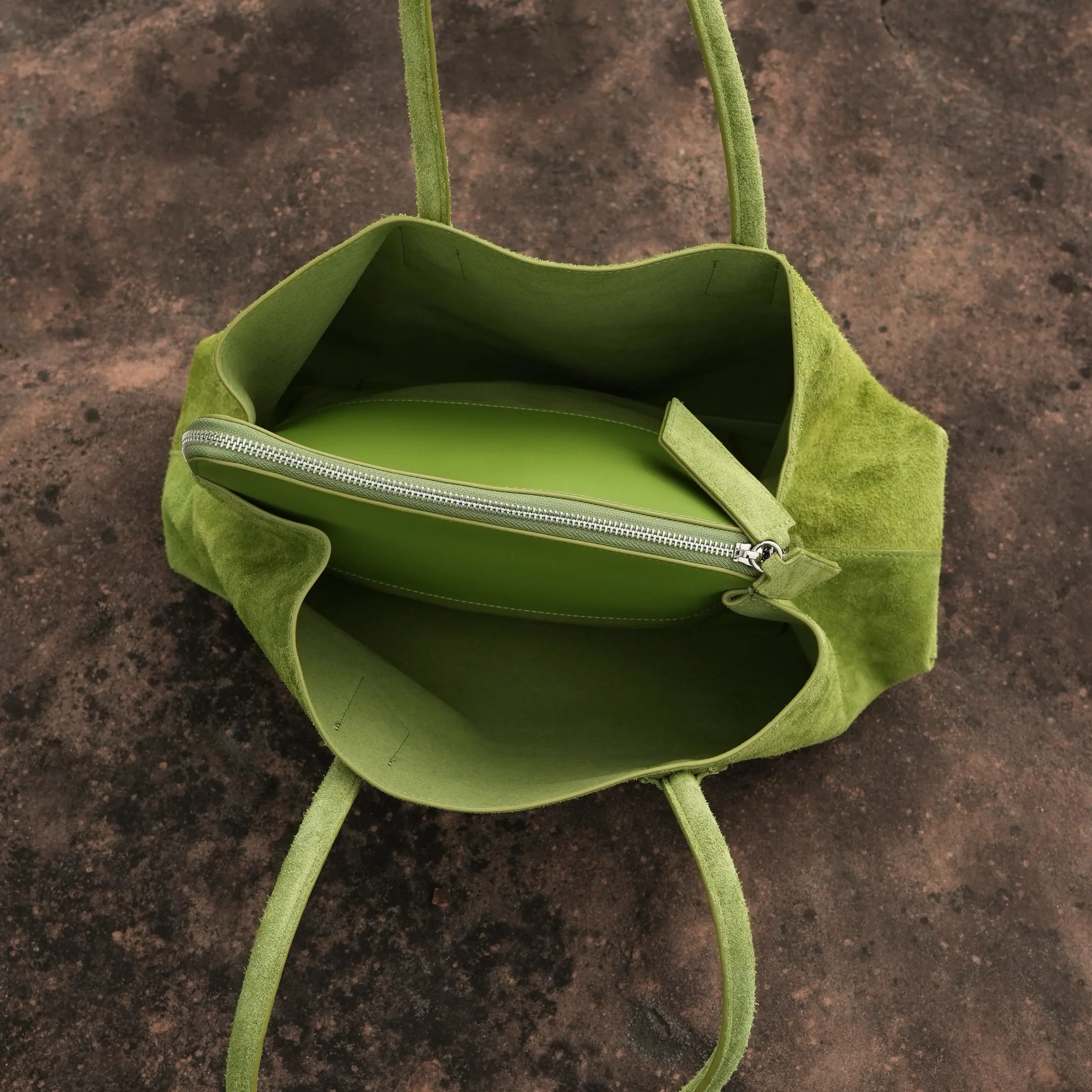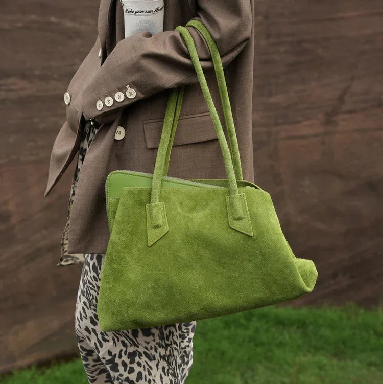 Luxury Green Suede Leather Tote Bag, Large Unique Fashion Shoulder Purse for Women