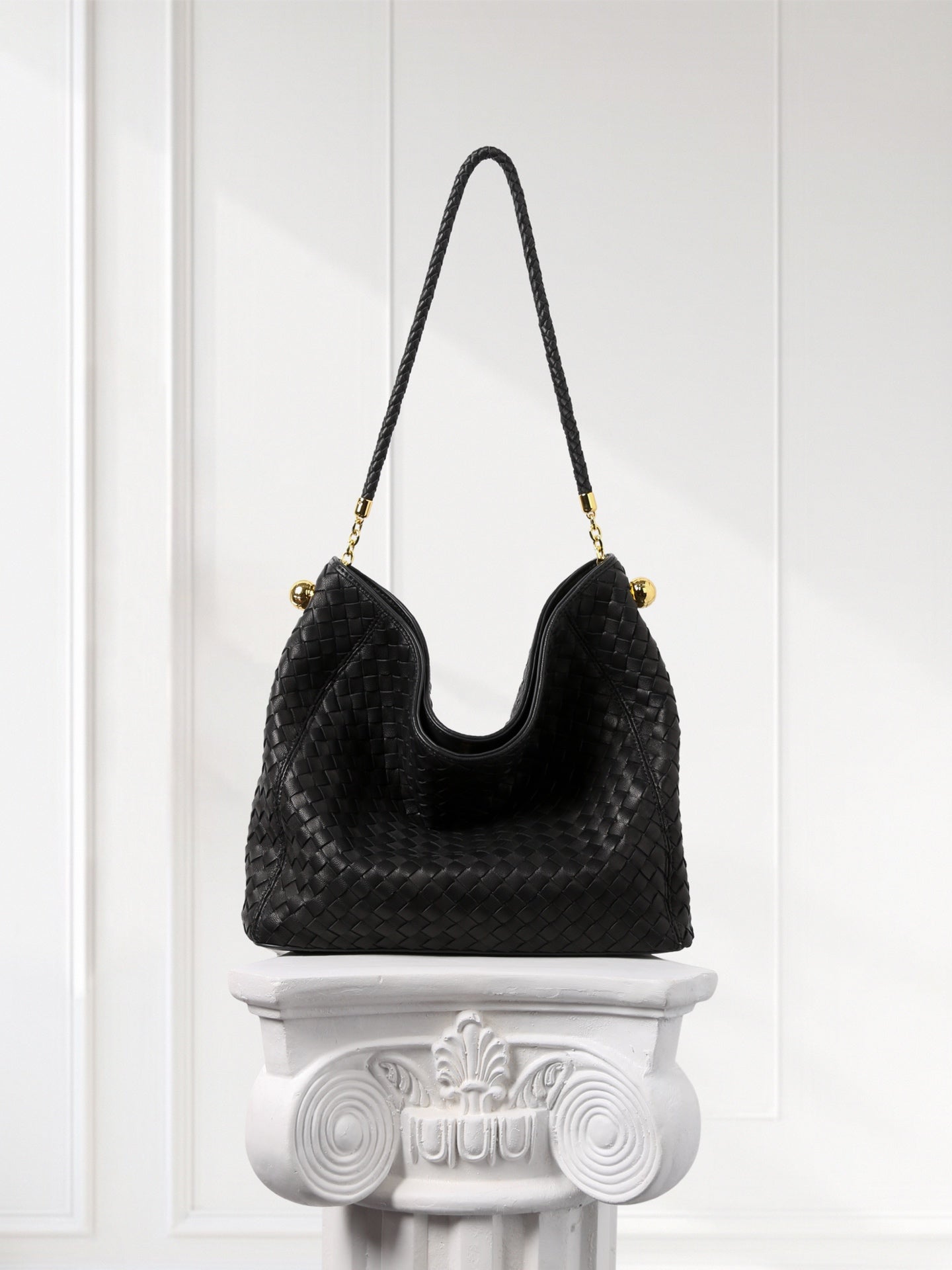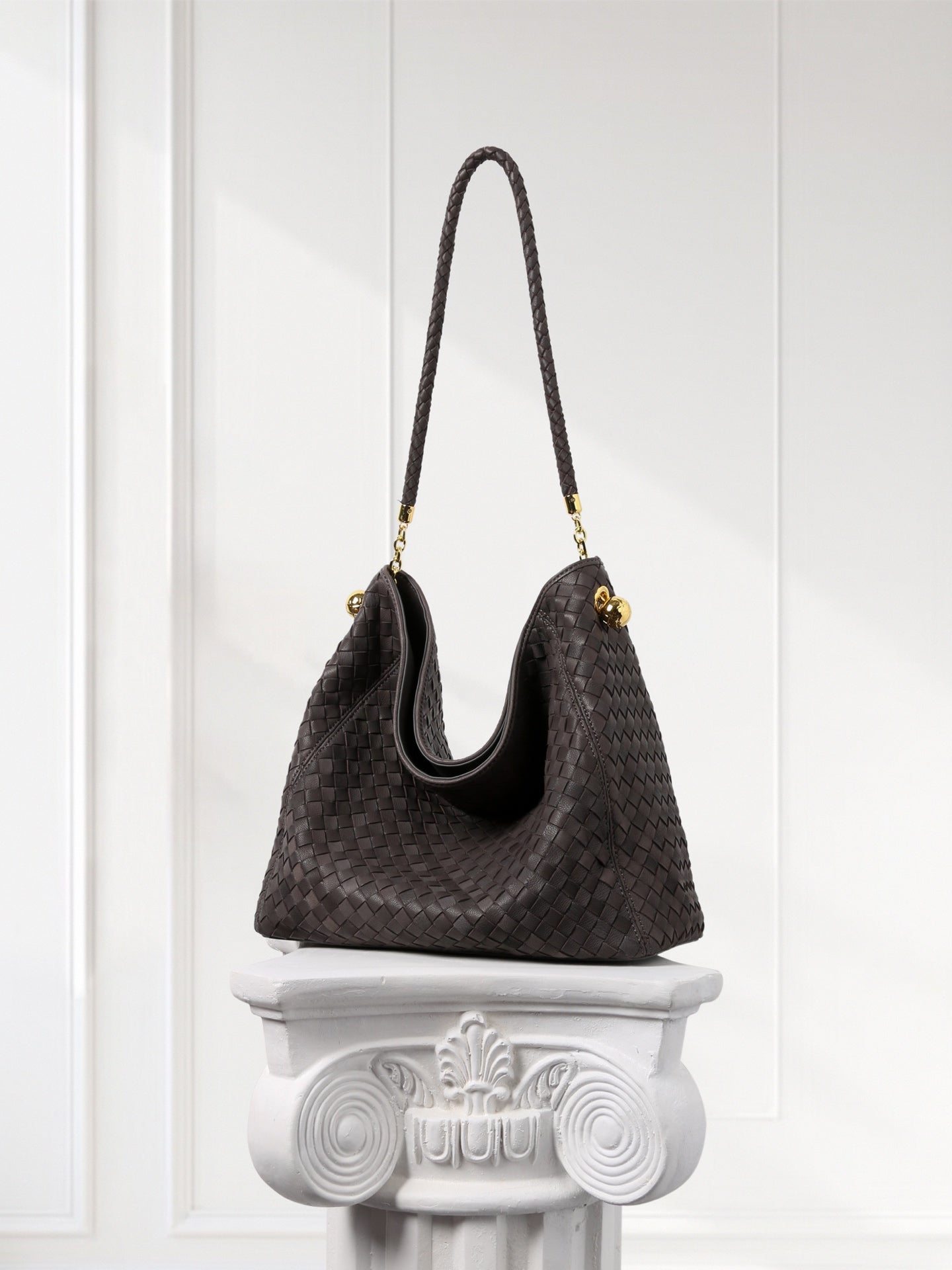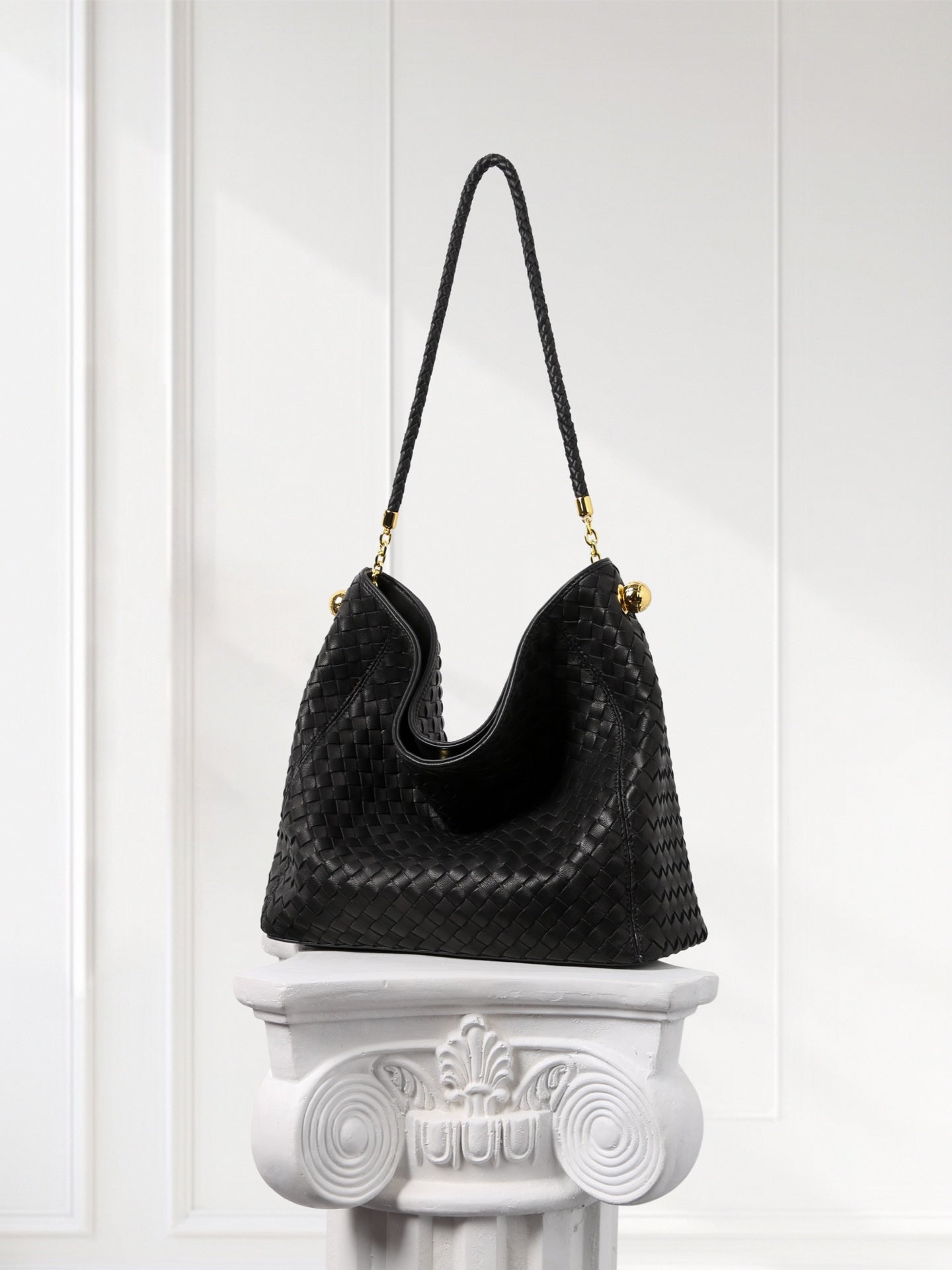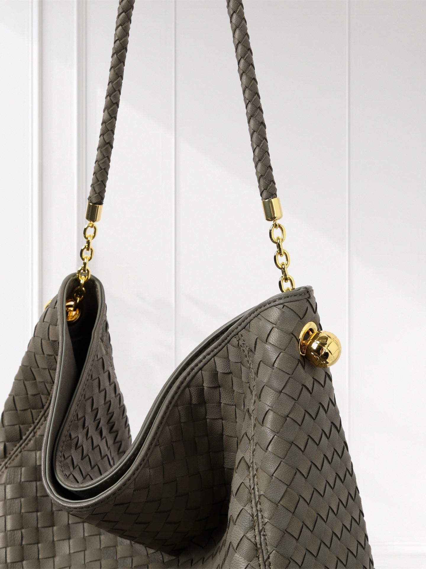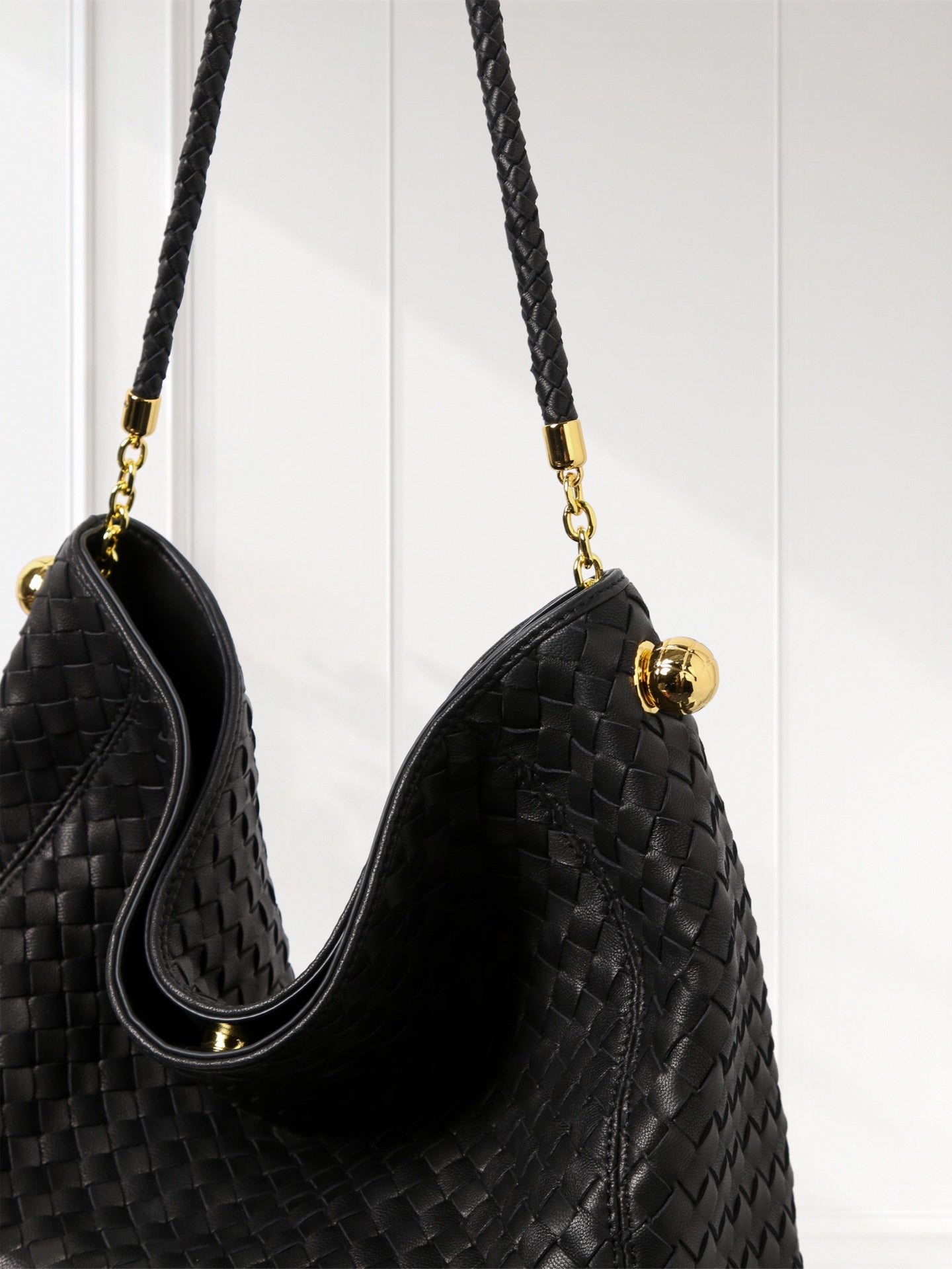 Luxury Lambskin Woven Leather Hobo Bag | Handcrafted Lightweight Soft Braided Shoulder Purse with Gold Hardware