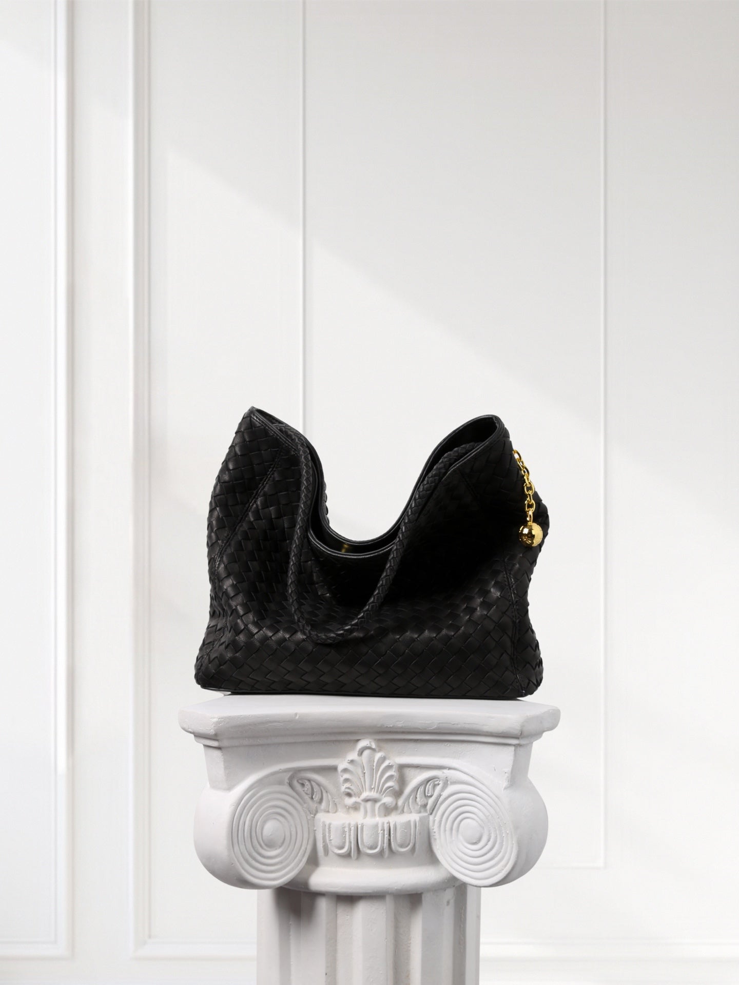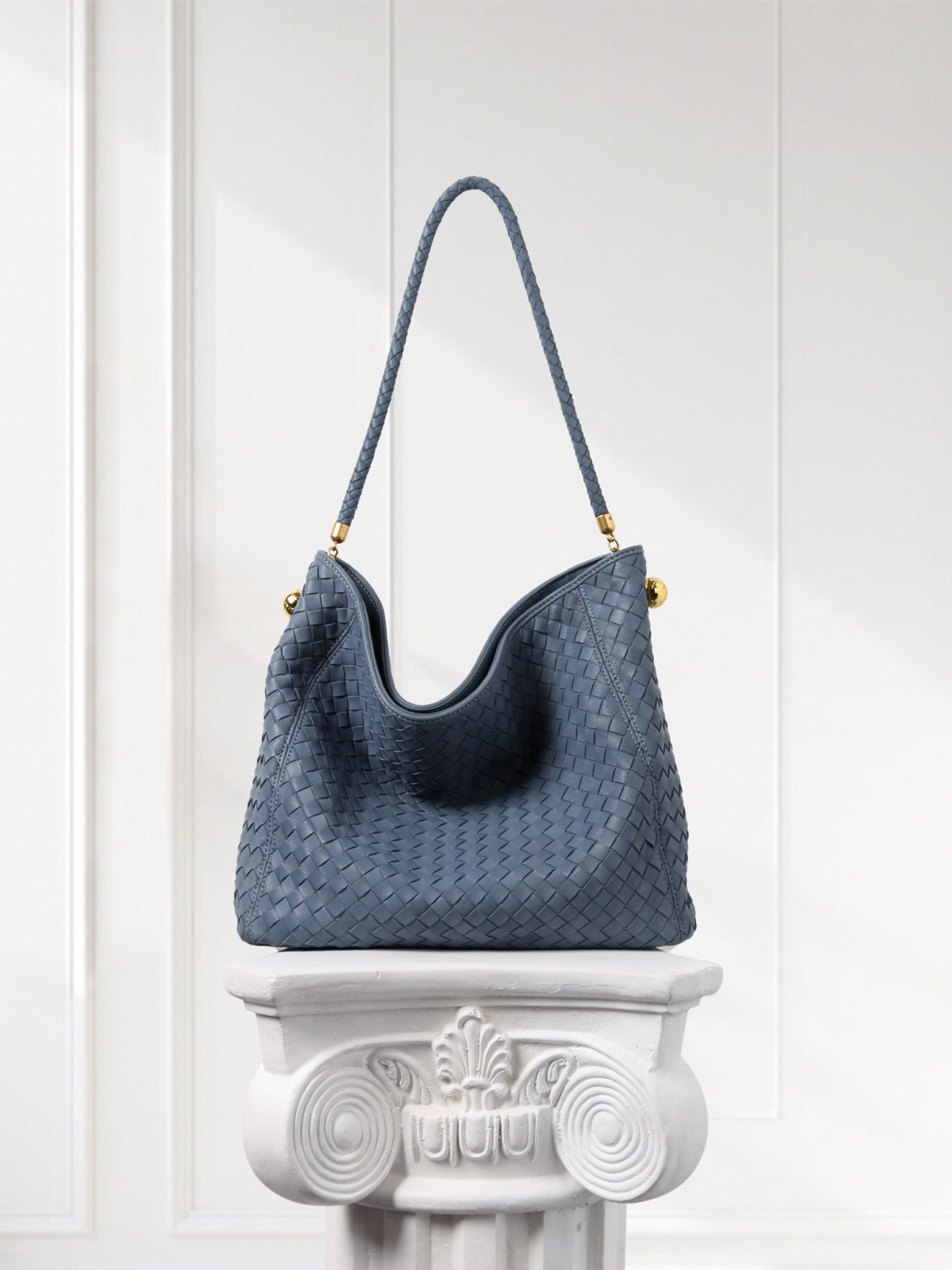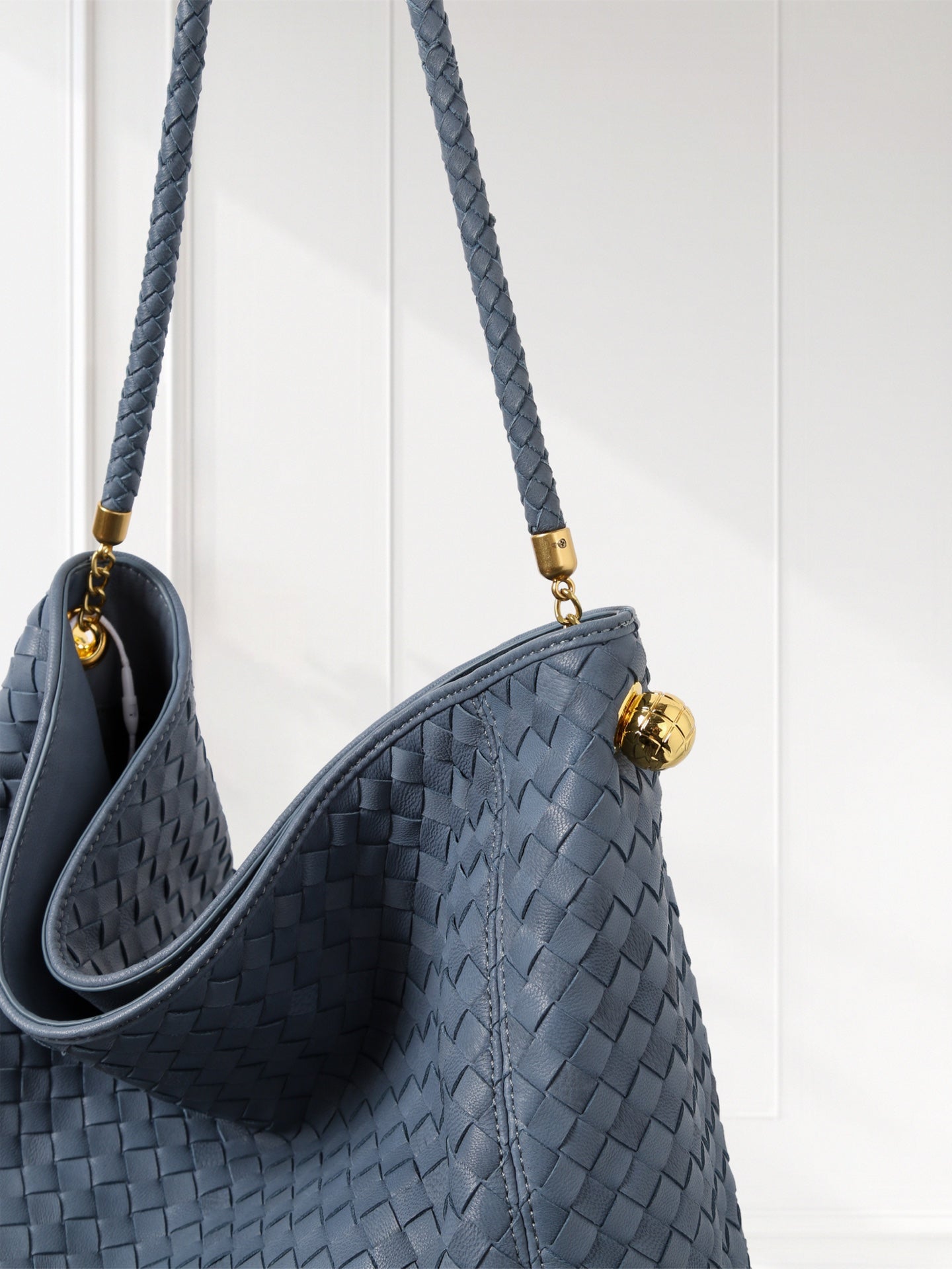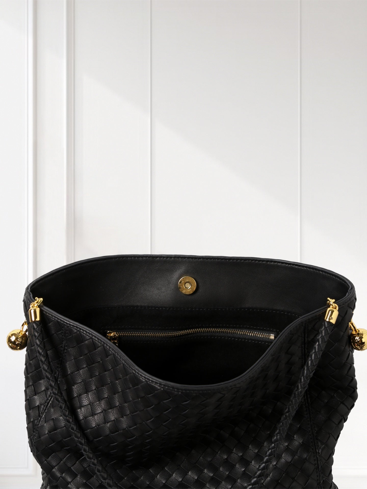 Luxury Lambskin Woven Leather Hobo Bag | Handcrafted Lightweight Soft Braided Shoulder Purse with Gold Hardware
