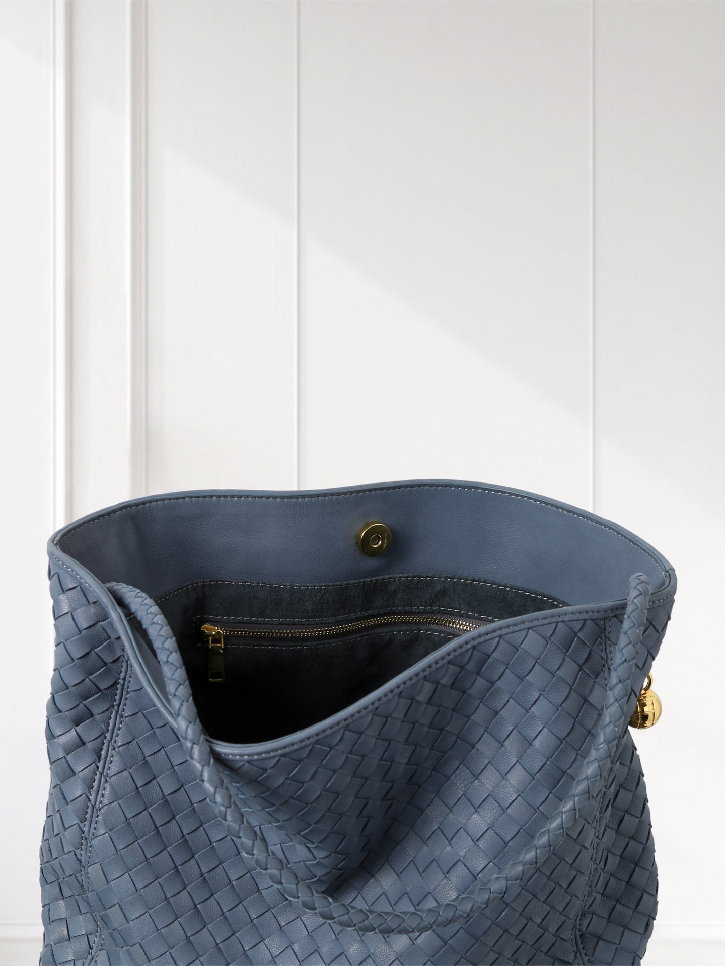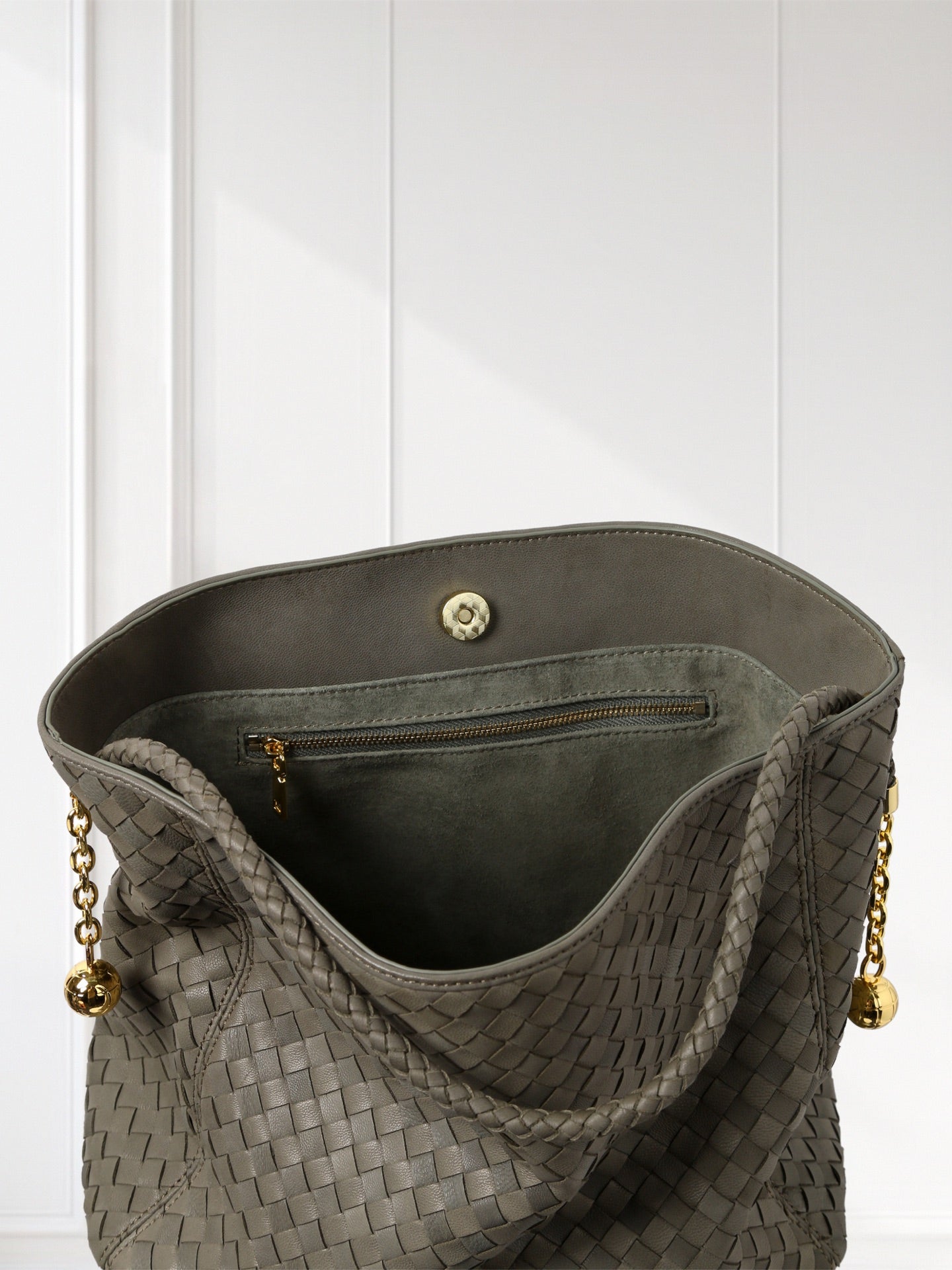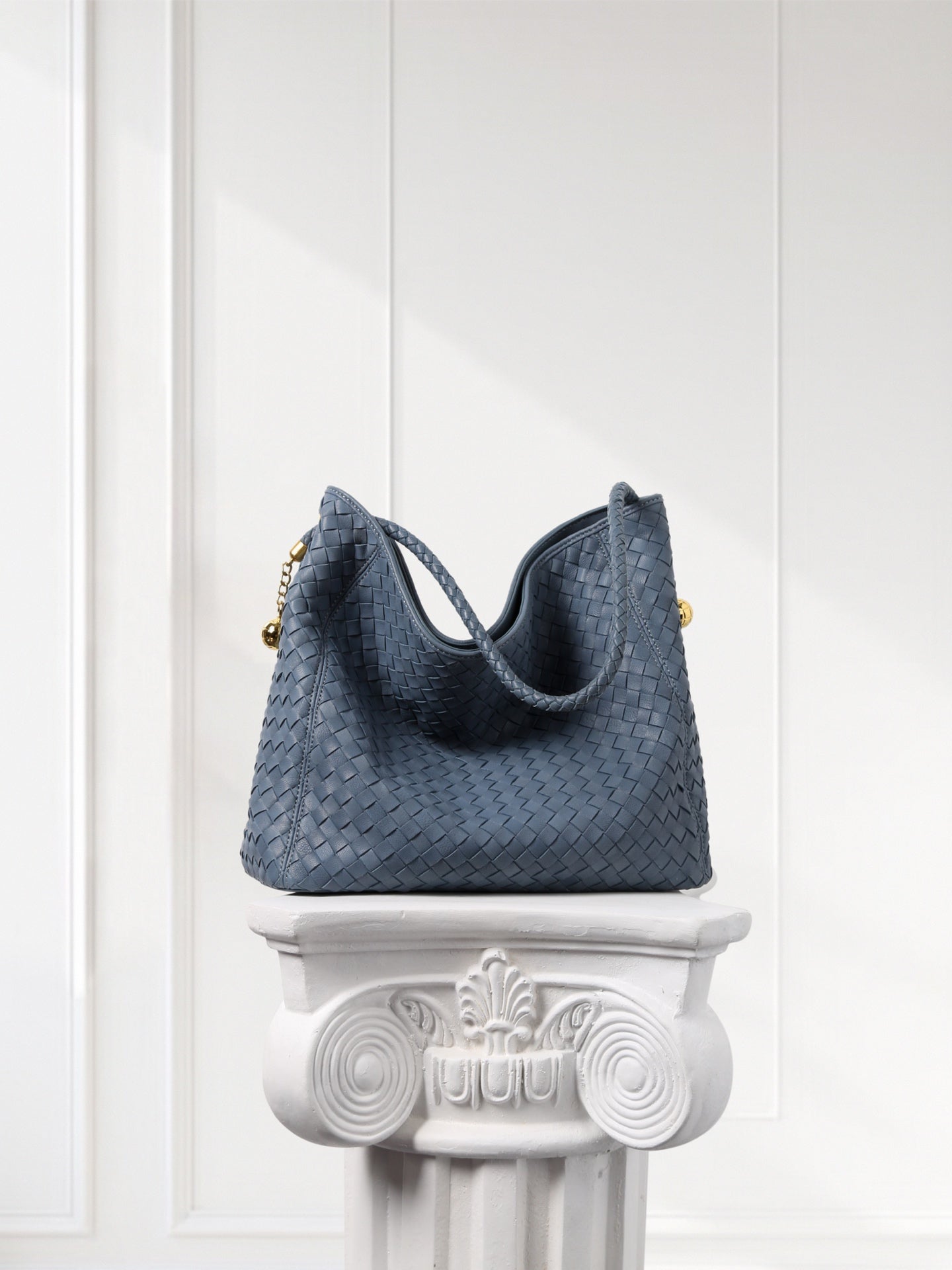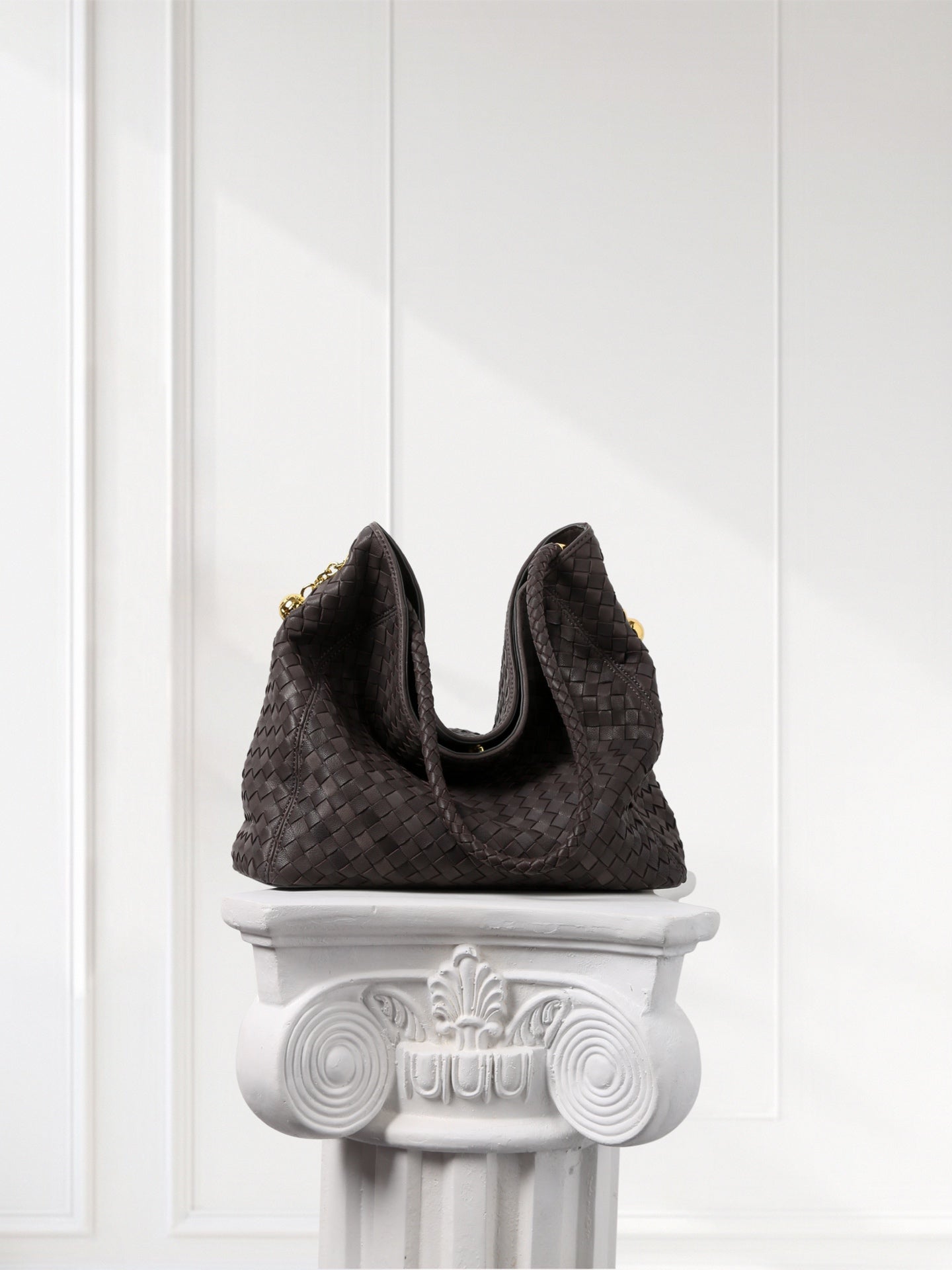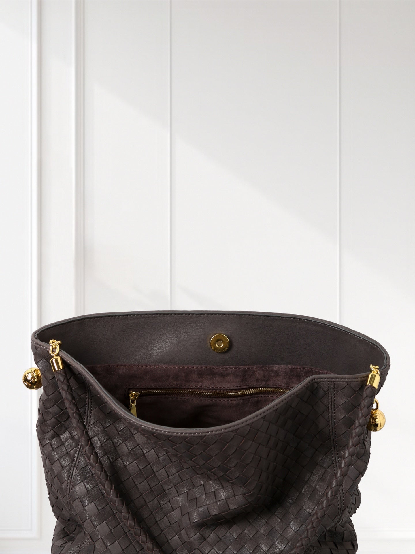 Luxury Lambskin Woven Leather Hobo Bag | Handcrafted Lightweight Soft Braided Shoulder Purse with Gold Hardware
