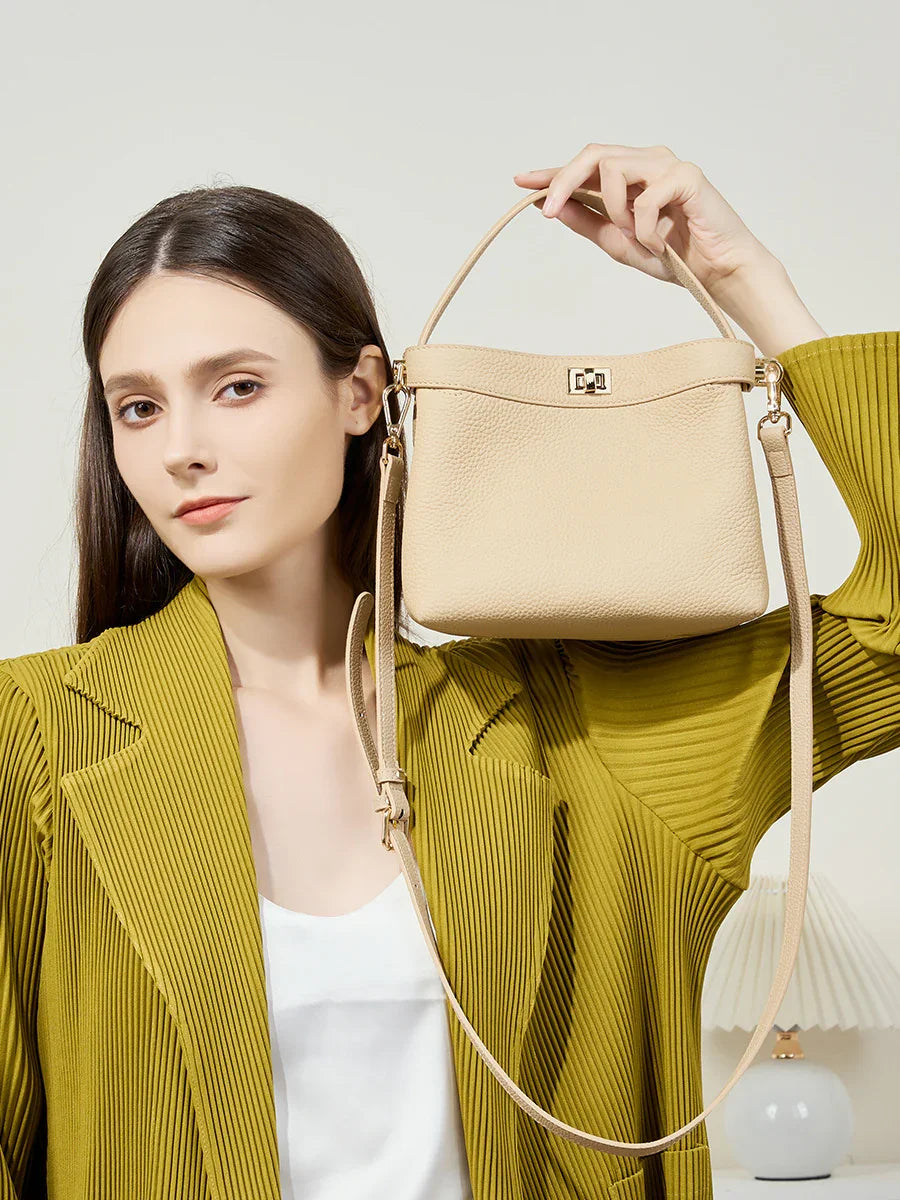 Darling little bag that I have found on many other websites for less money. Very nice pebbled leather and a detachable insert so you can use the purse with or without it.