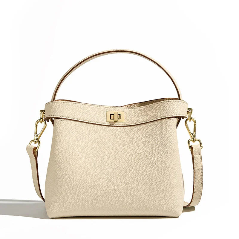 Very light weight, occassional bag. I’ve seen this on many other we sites for less $. I dont believe alexel crafts actually makes this bag since it is offered so widely online. Made me a little disappointed. Feels and smells like leather, lined with cloth. Closes smoothly.