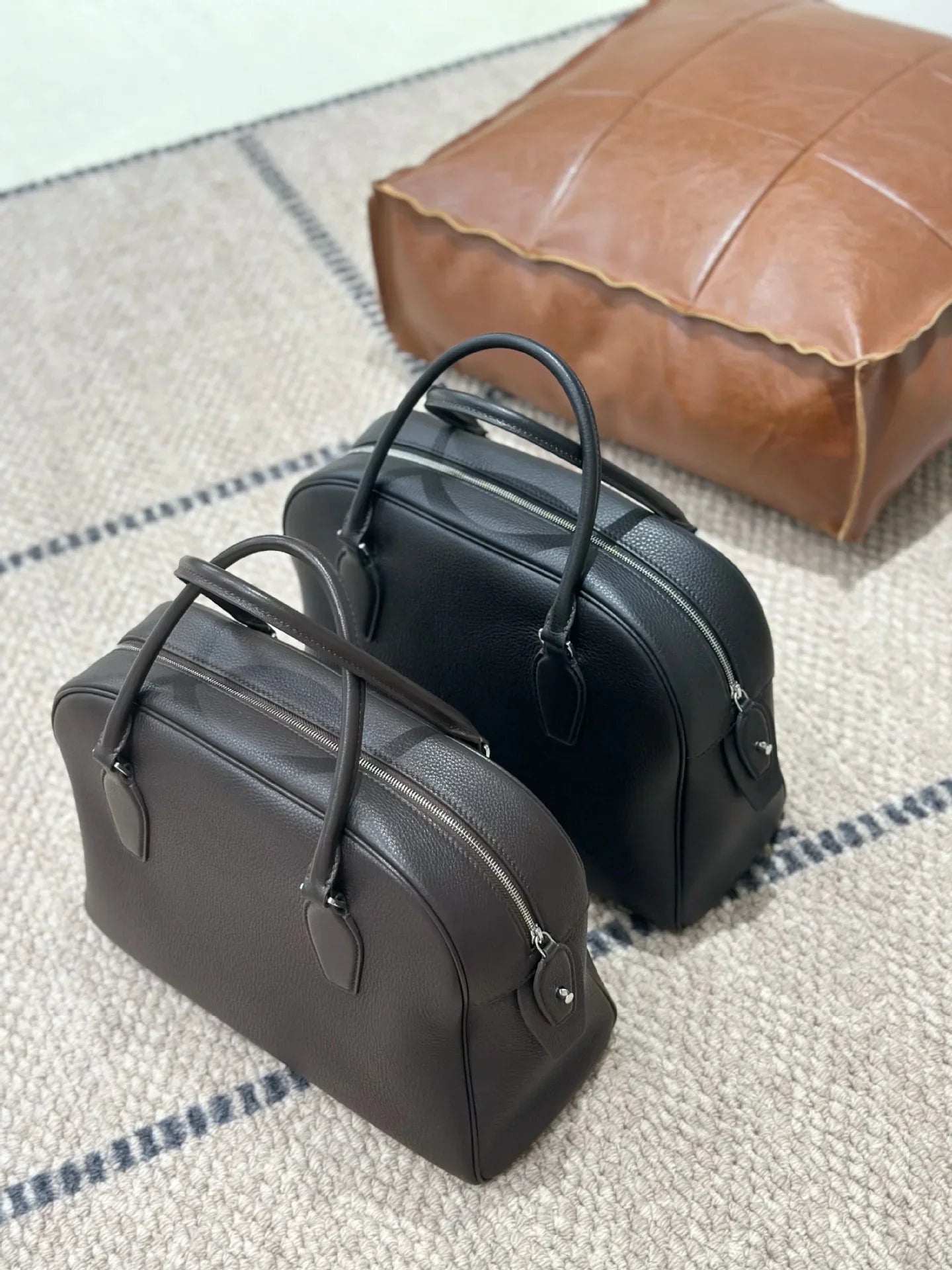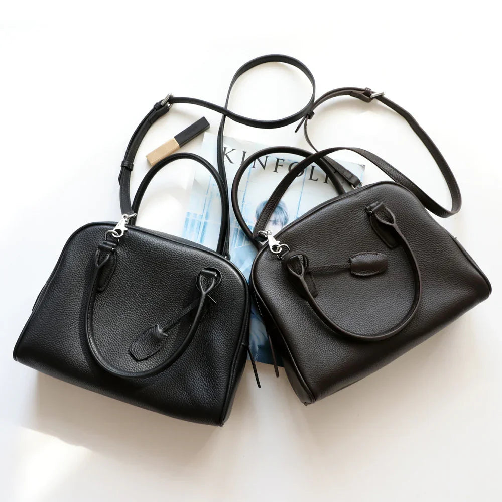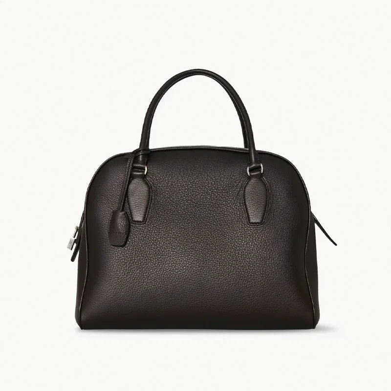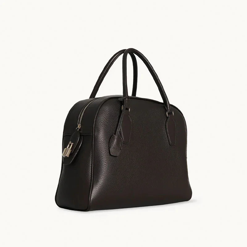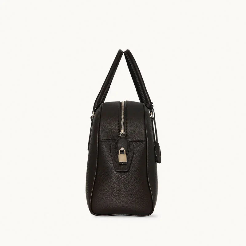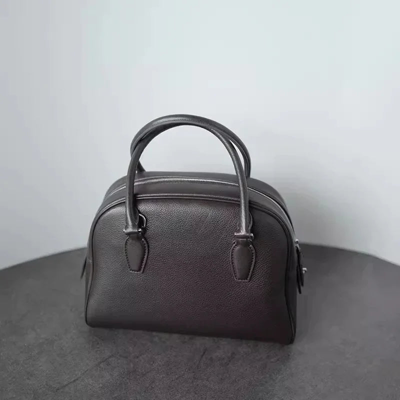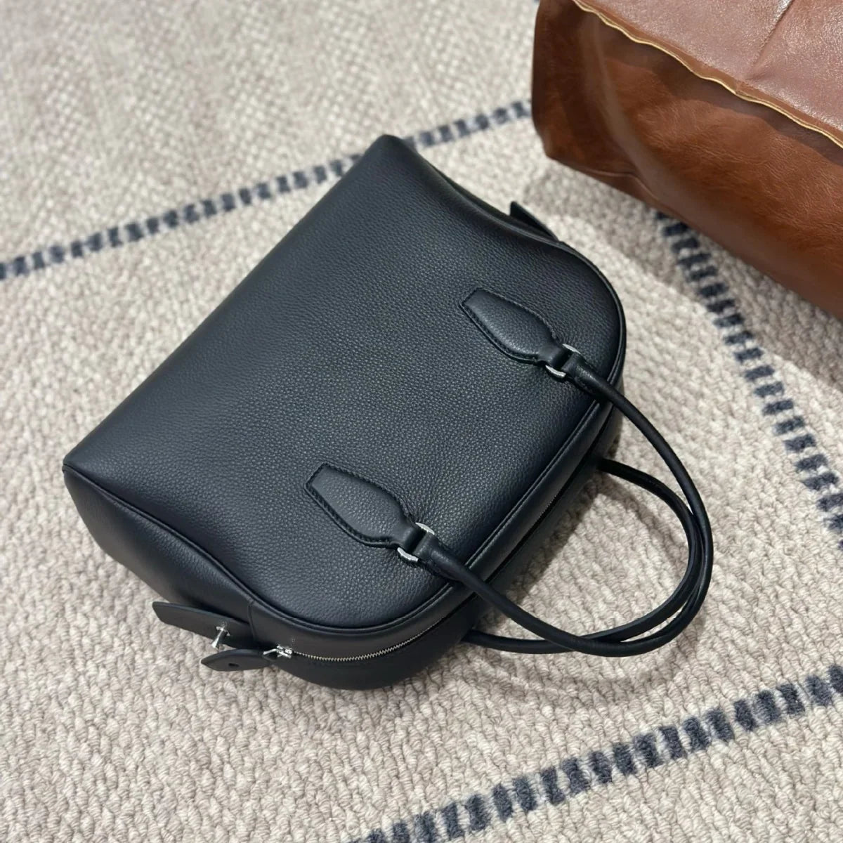 Luxury Pebbled Cowhide Leather Bowling Bag with Lock | Women’s Commuter Tote, Shoulder & Crossbody Handbag