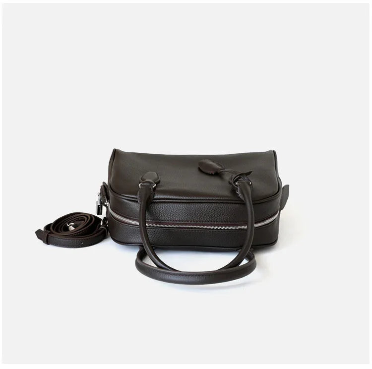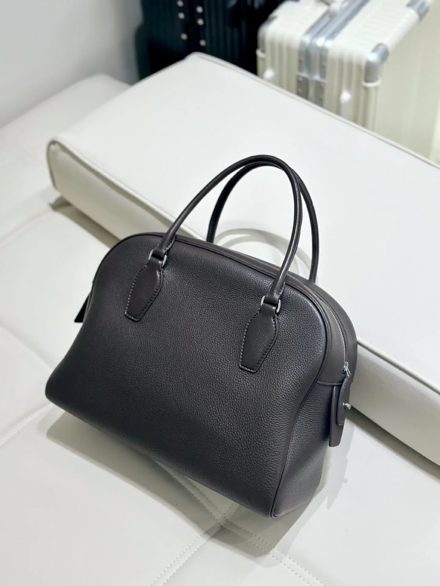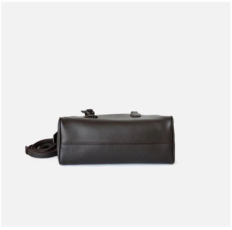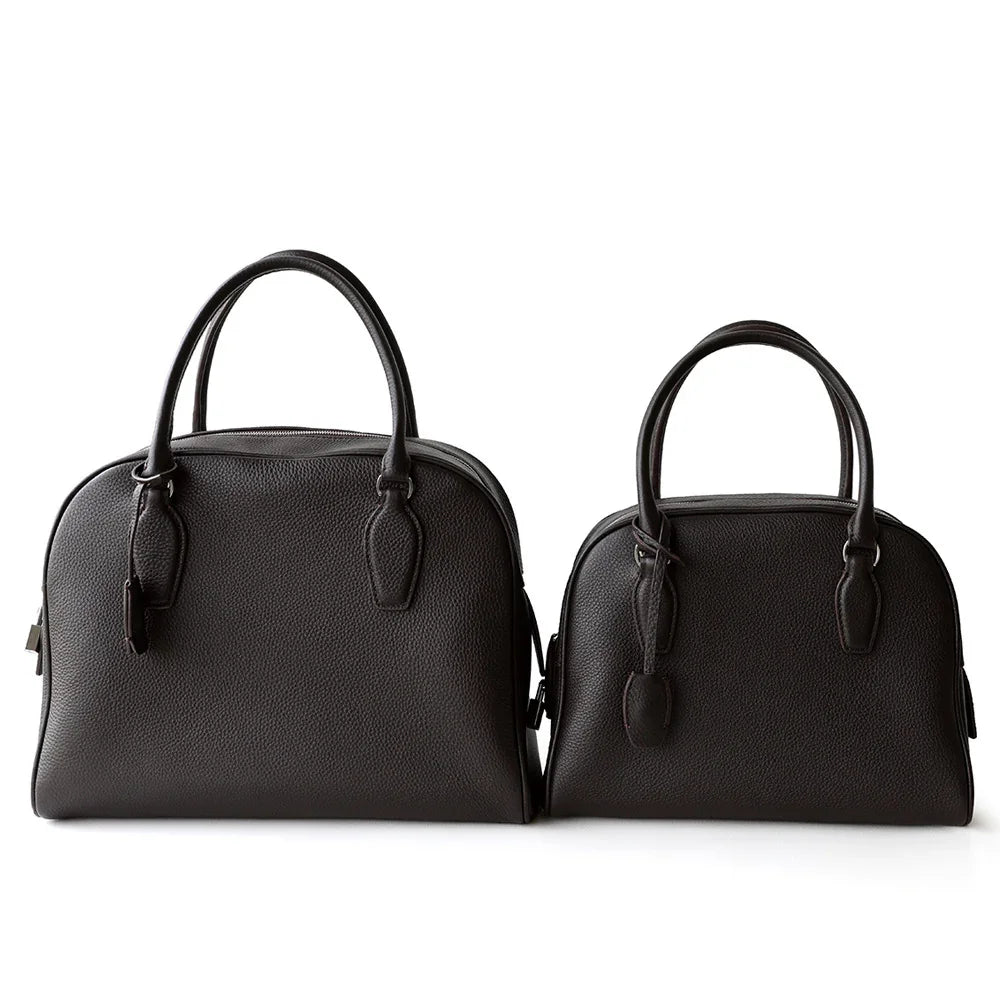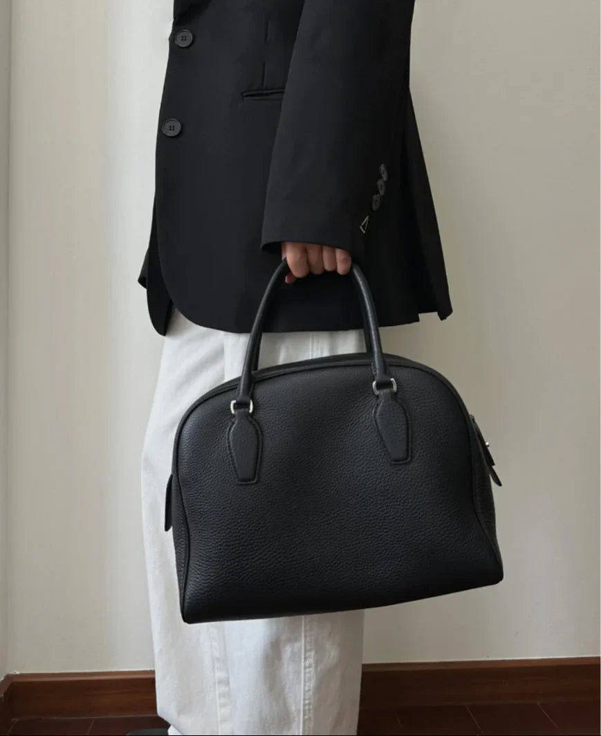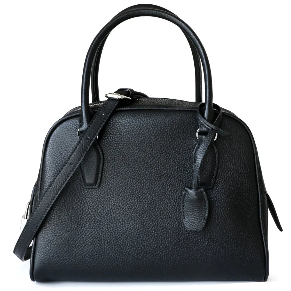 Luxury Pebbled Cowhide Leather Bowling Bag with Lock | Women’s Commuter Tote, Shoulder & Crossbody Handbag