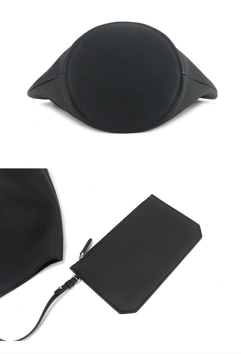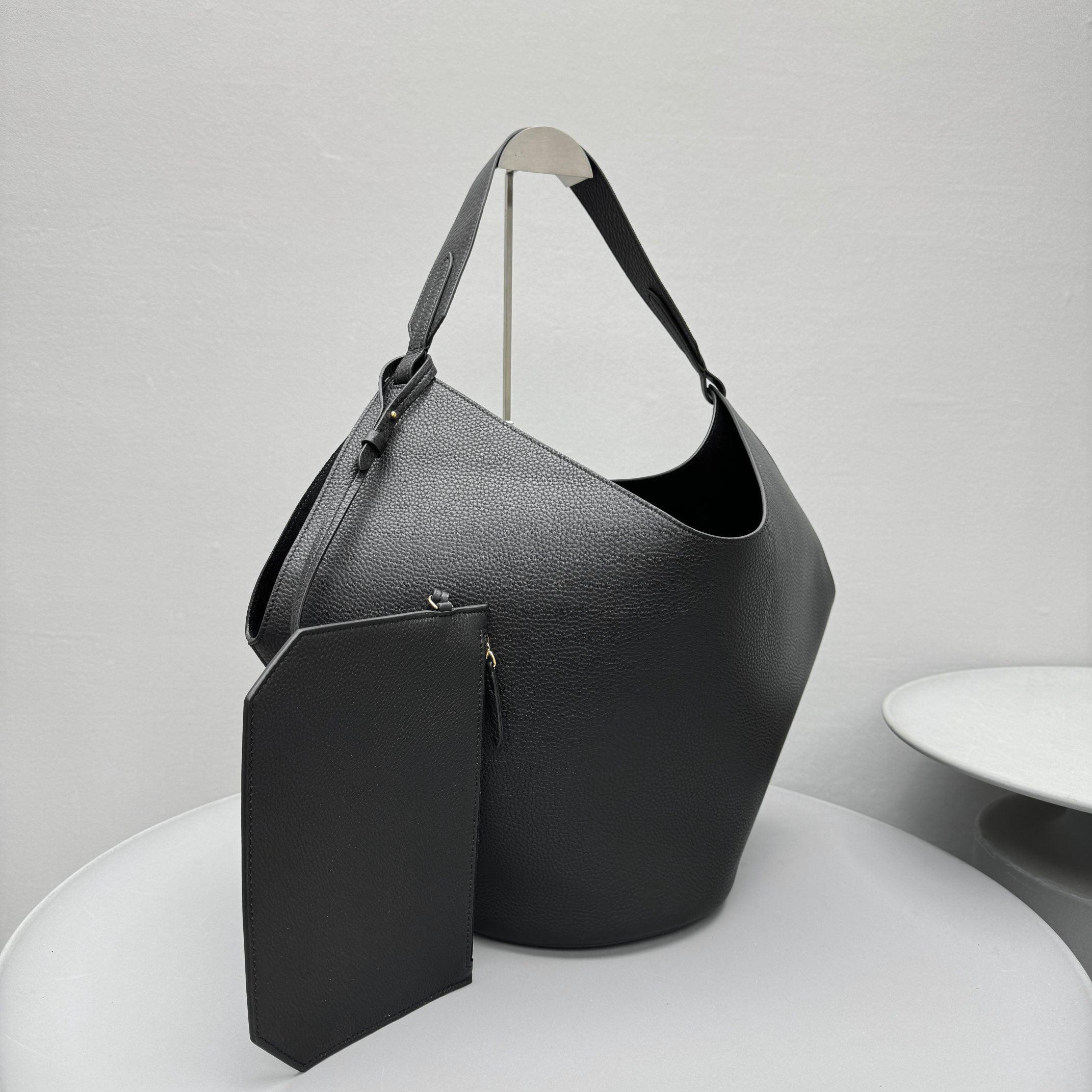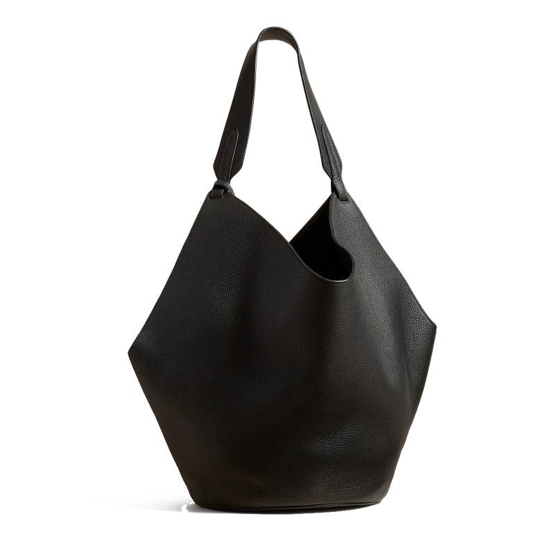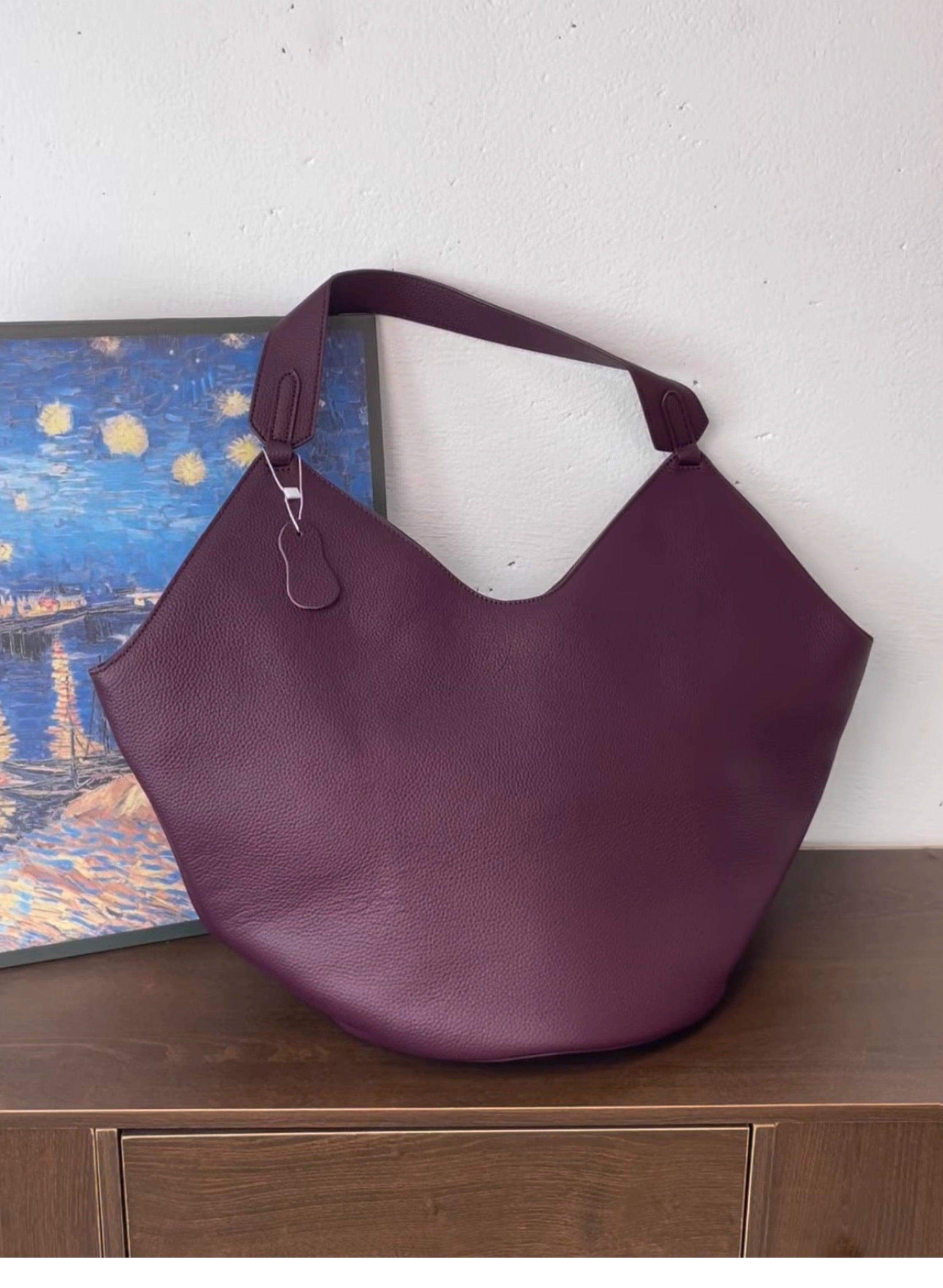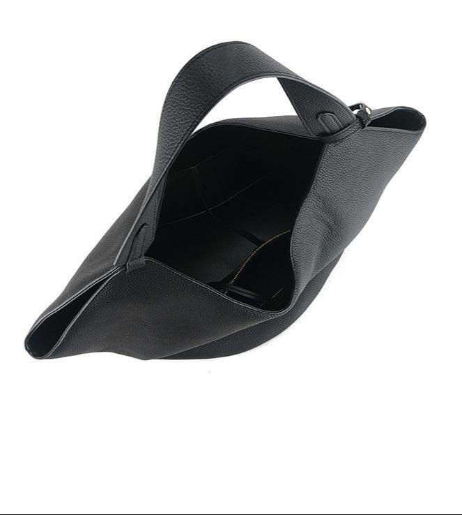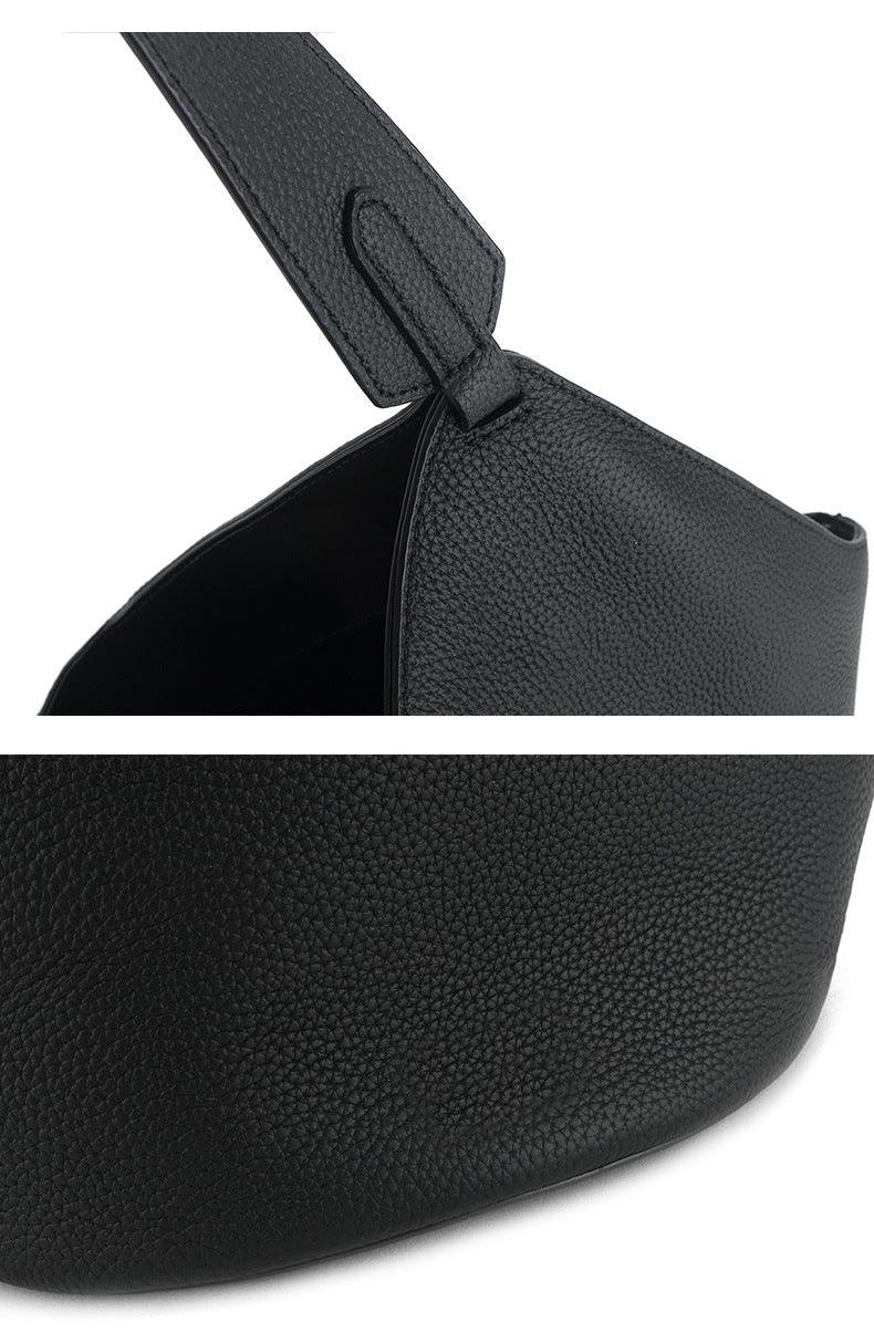 Luxury Pebbled Grain Leather Bucket Bag, Large Minimalist Cowhide Leather Tote Bag