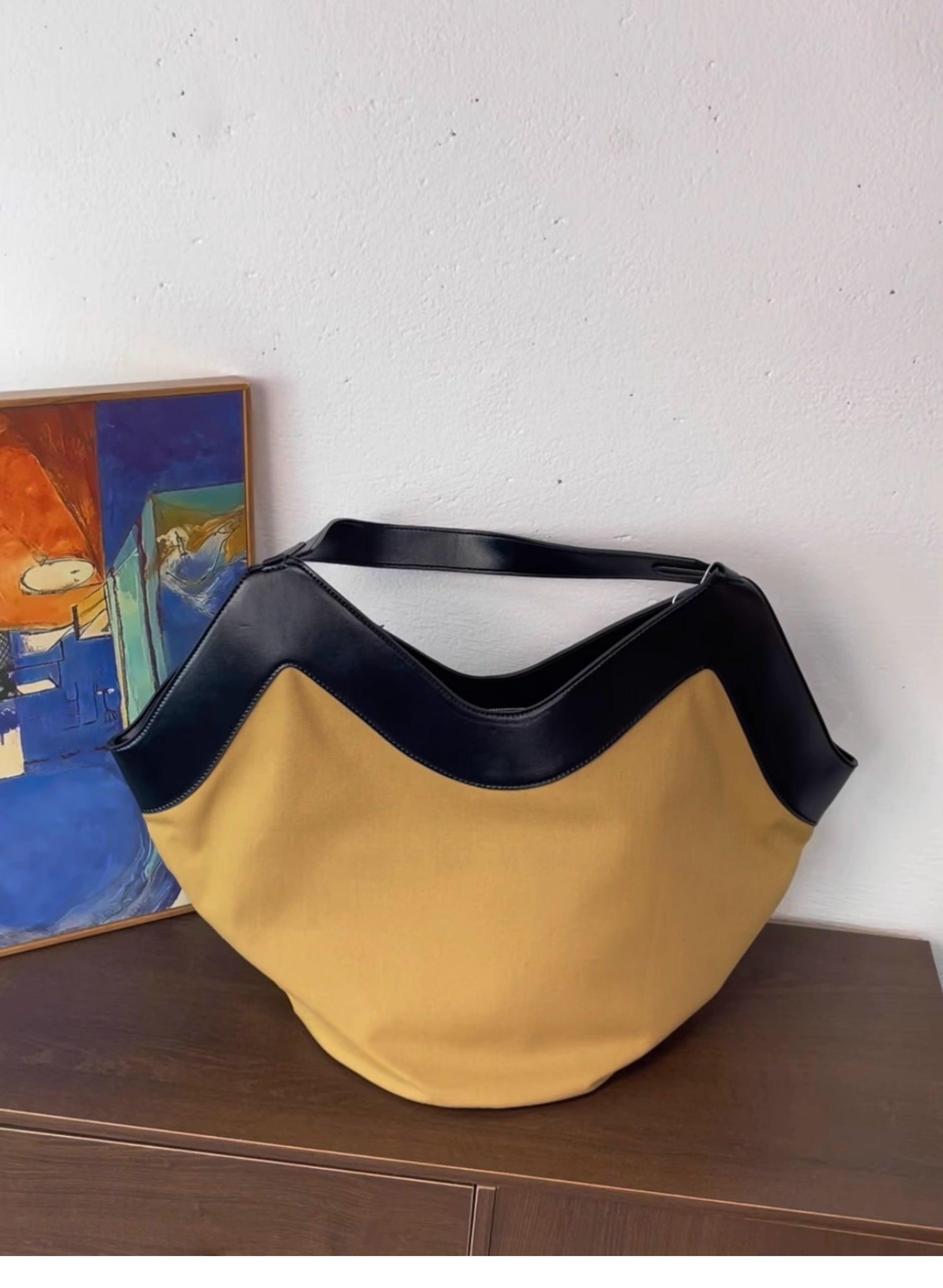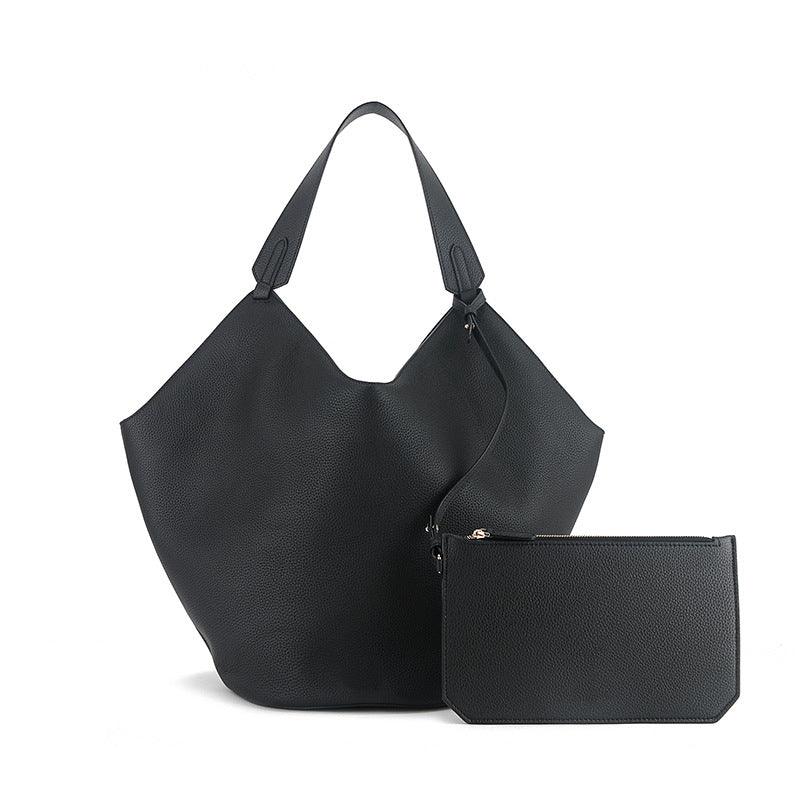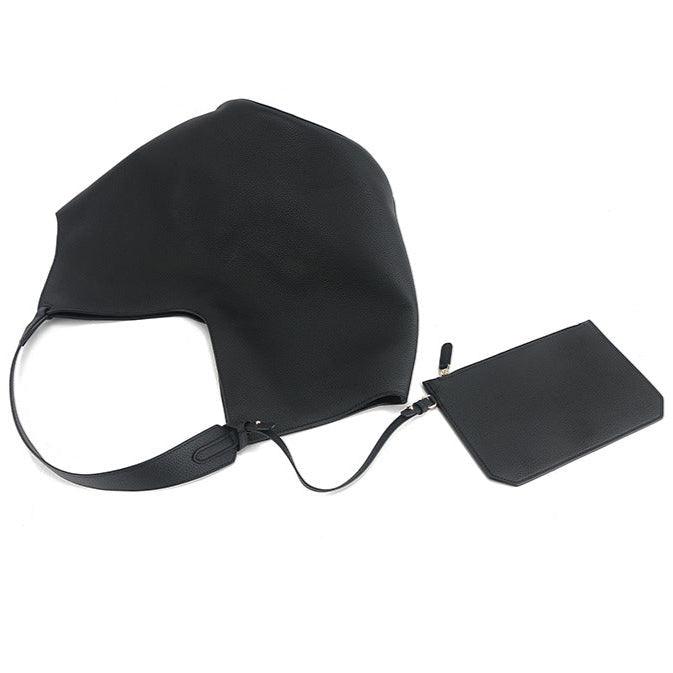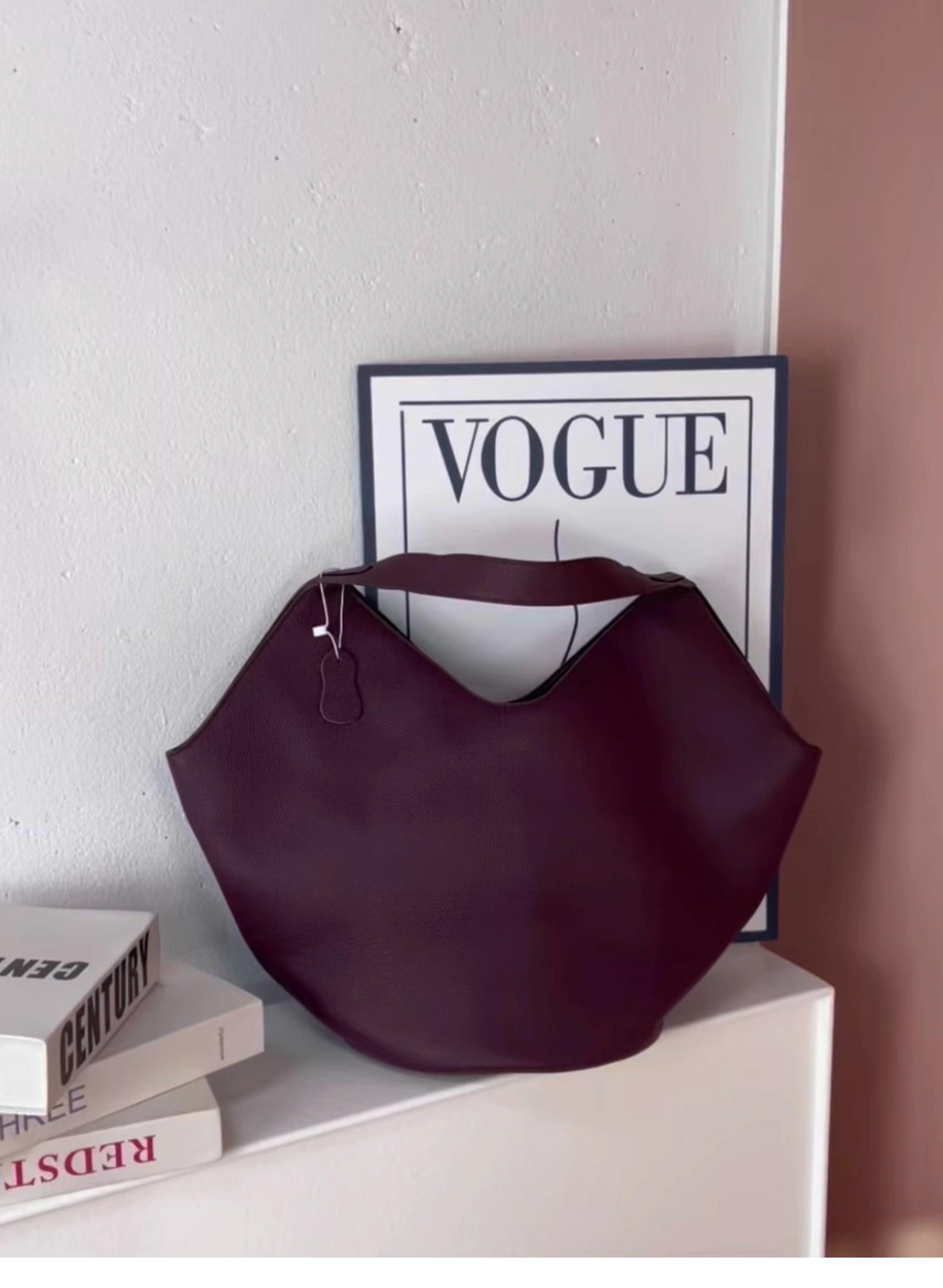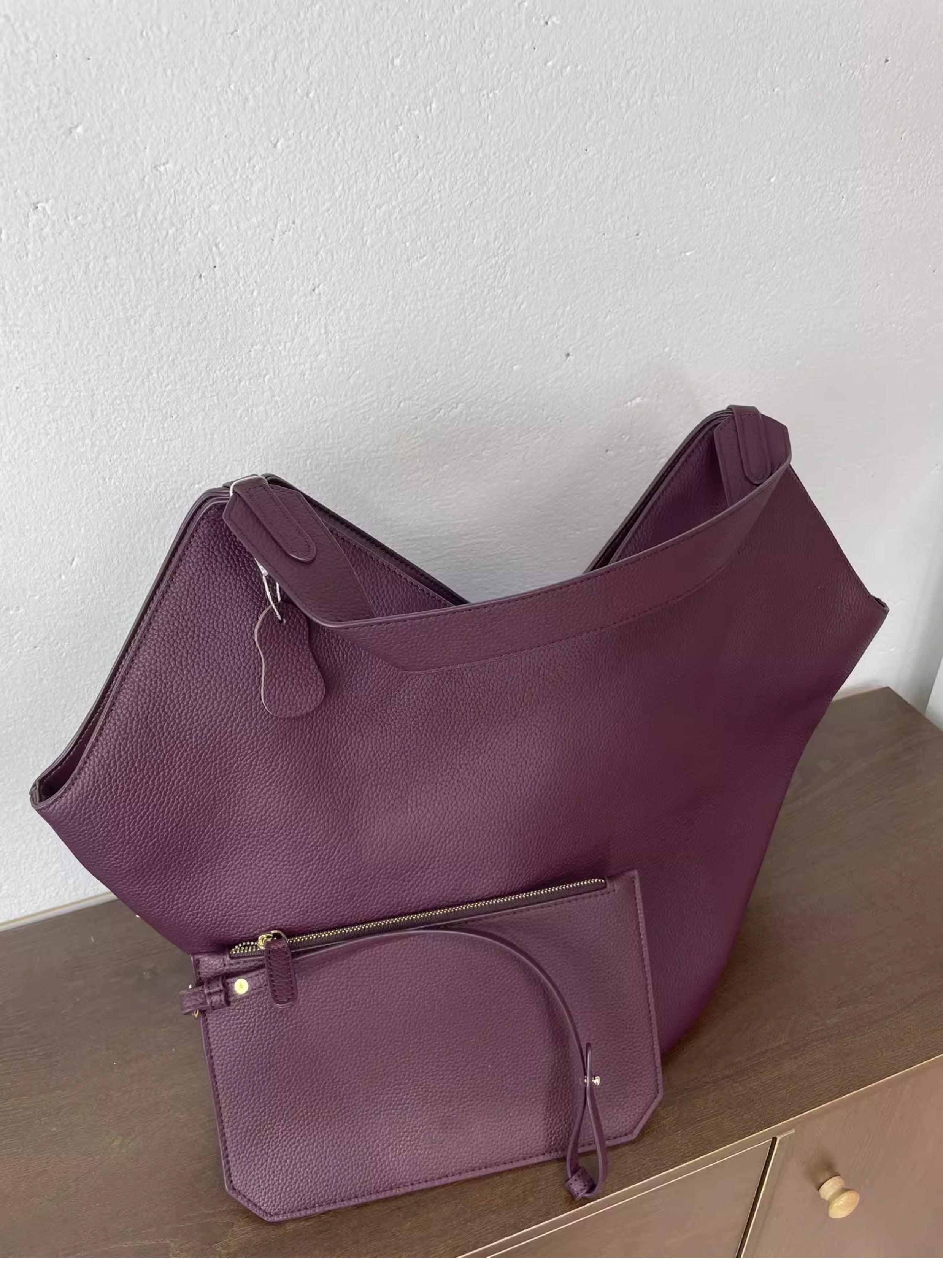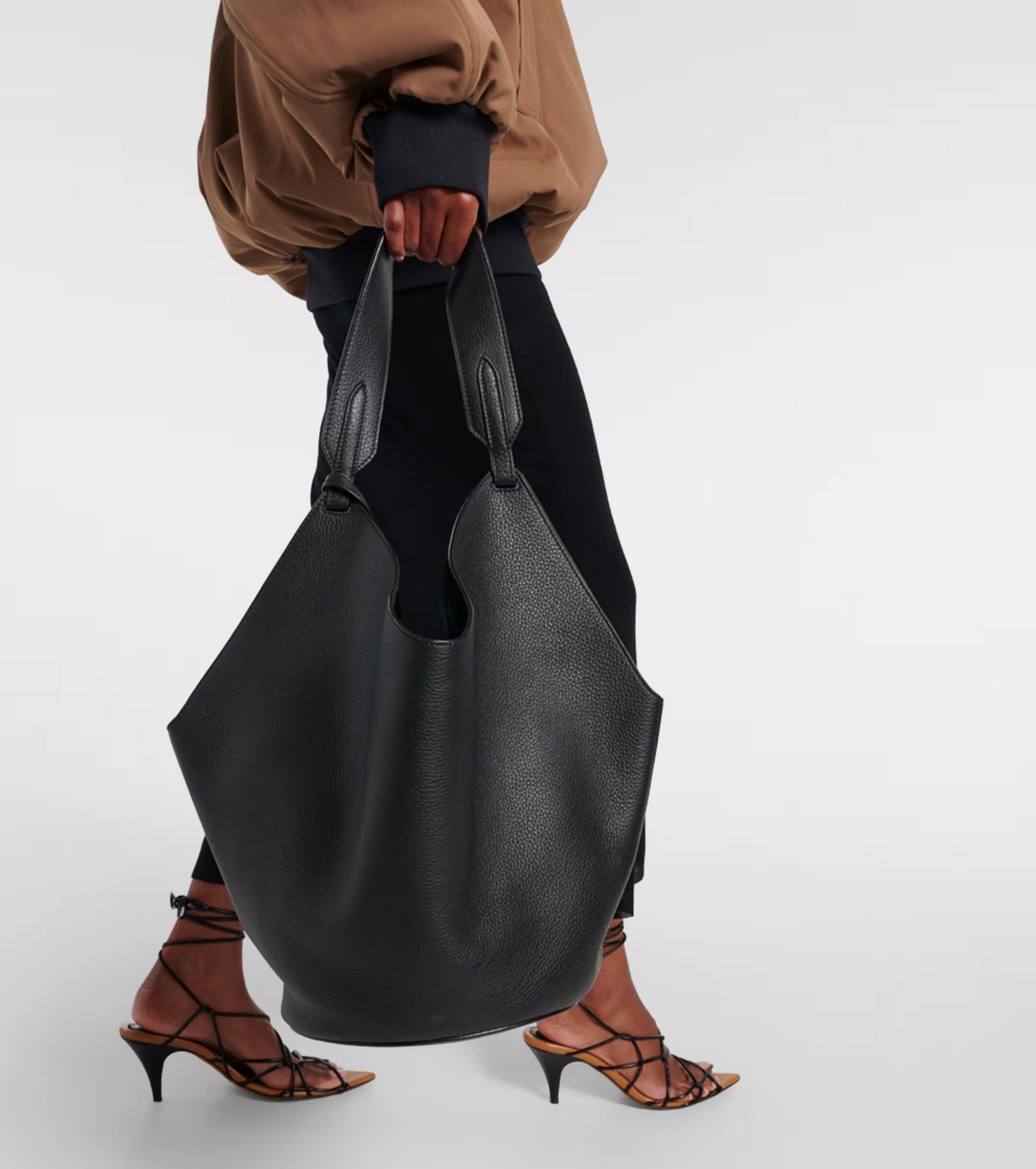 Luxury Pebbled Grain Leather Bucket Bag, Large Minimalist Cowhide Leather Tote Bag