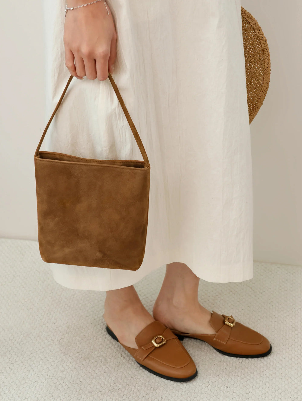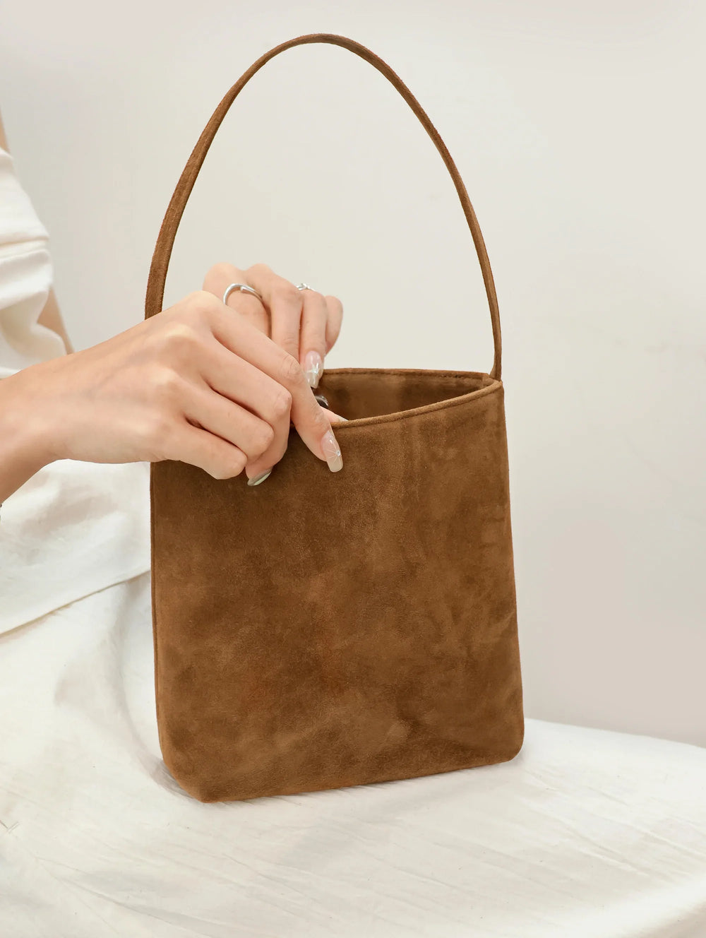 Lovely soft leather. Looks great. Perfect size for a laptop and a few other items. It’s unlined but comes with an insert. I wish it had a little slim inside pocket for items like a security card and lipstick, so they’re easily located
