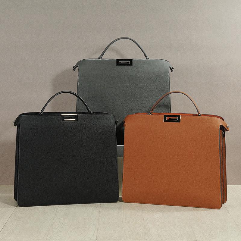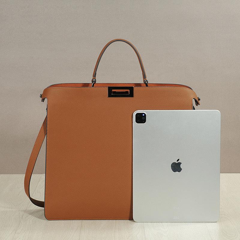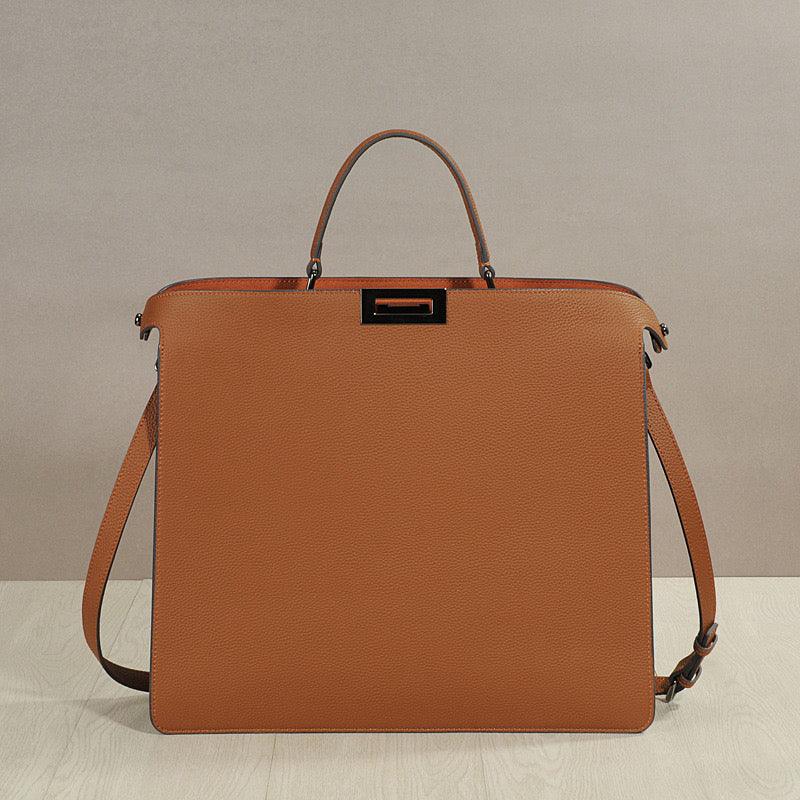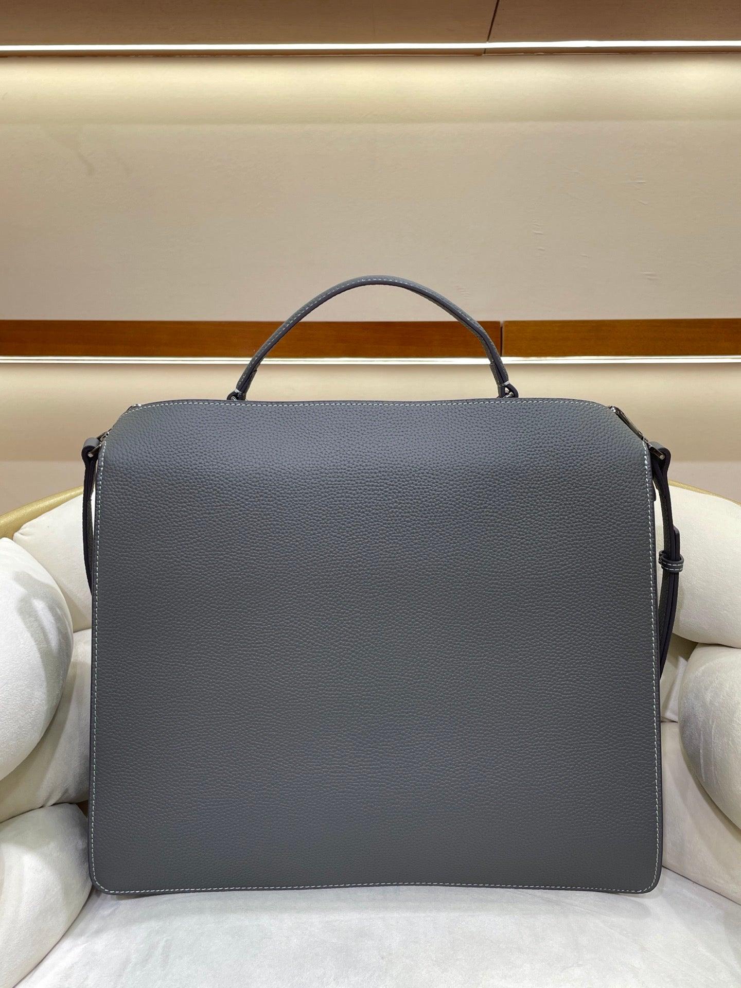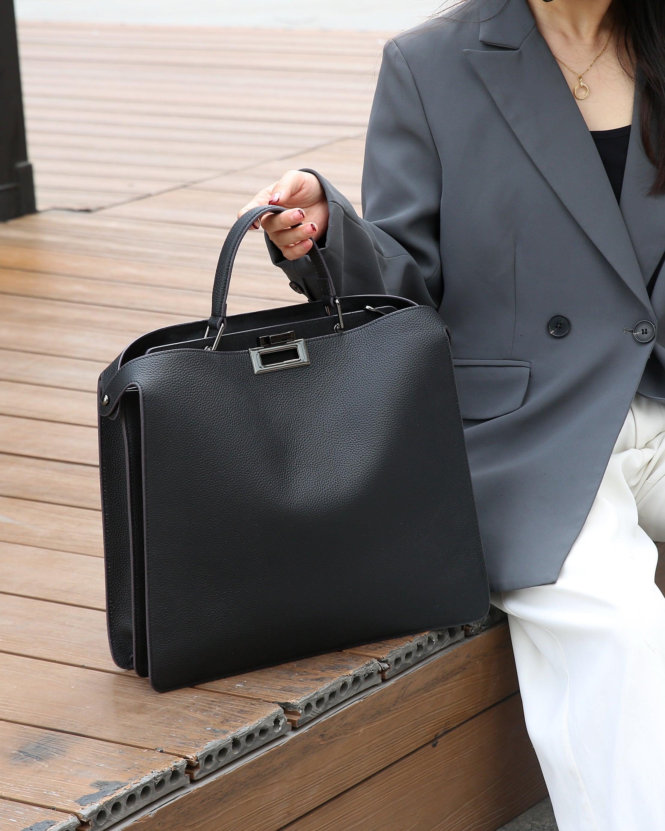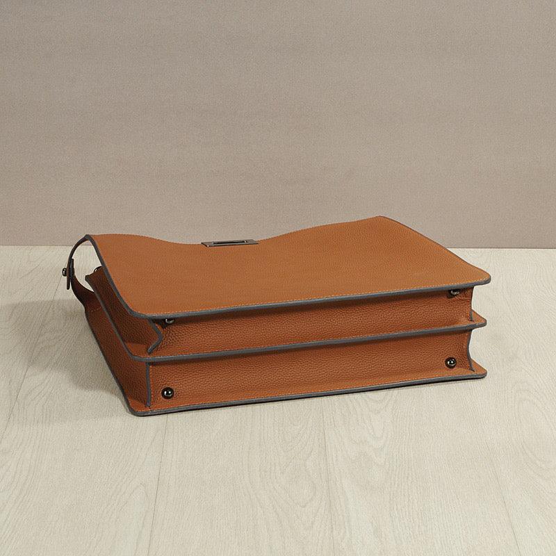 Luxury Togo Leather Structured Brief Tote, Unisex Shoulder Bag & Handbag, Laptop Bag