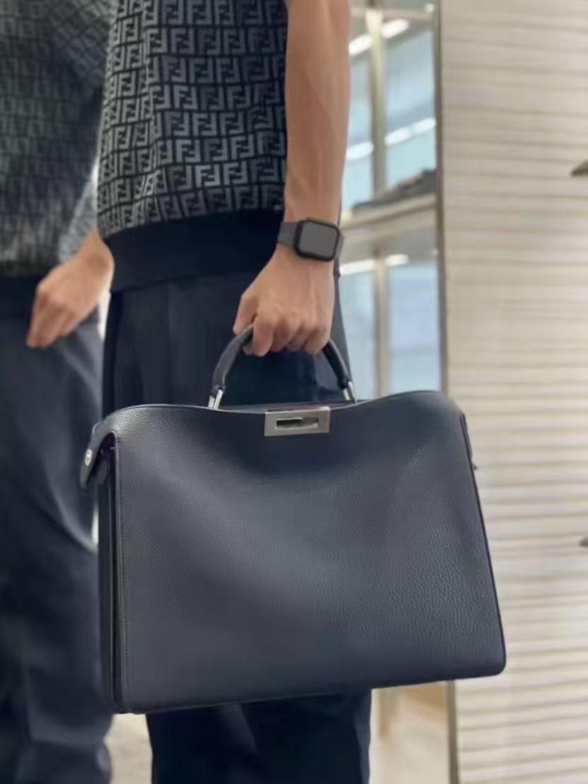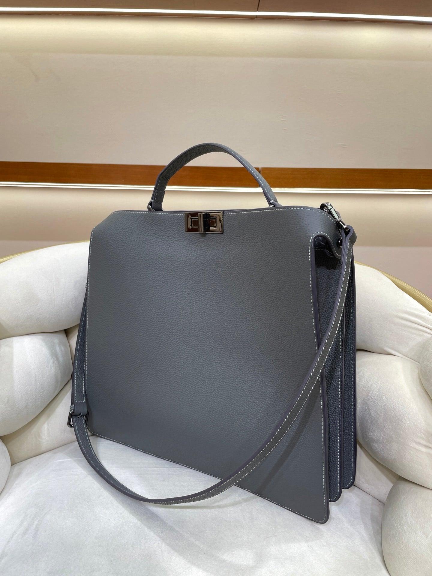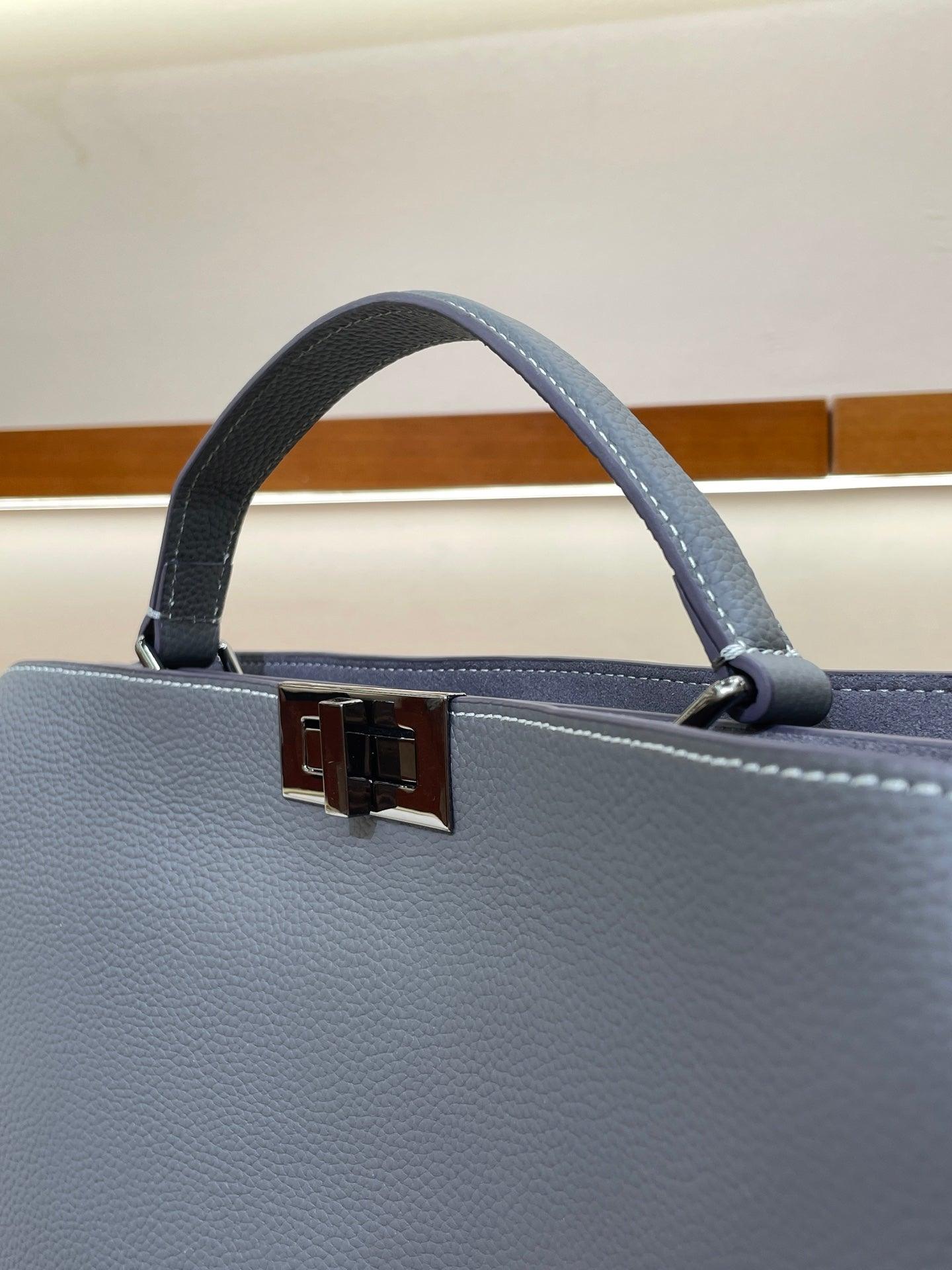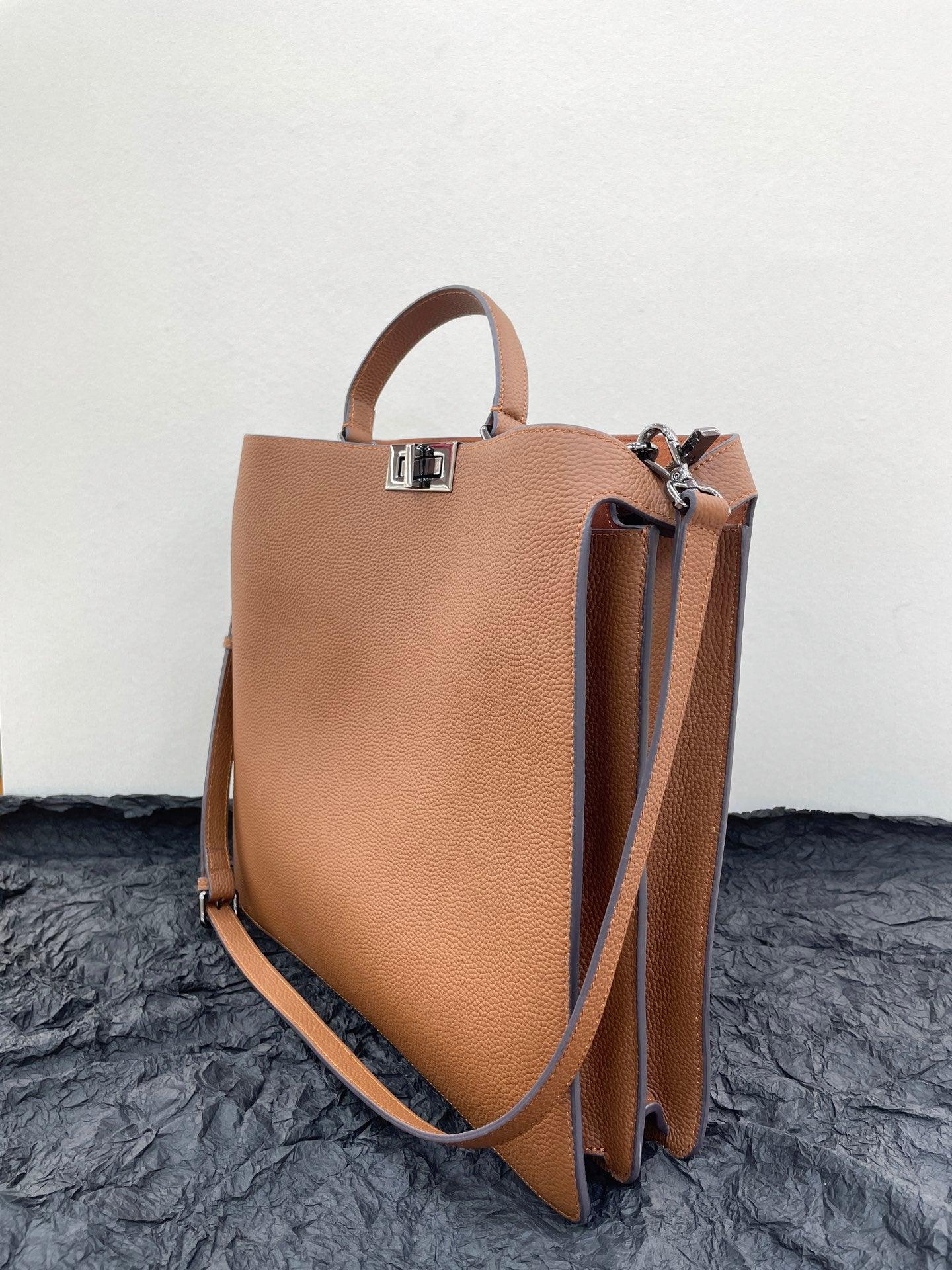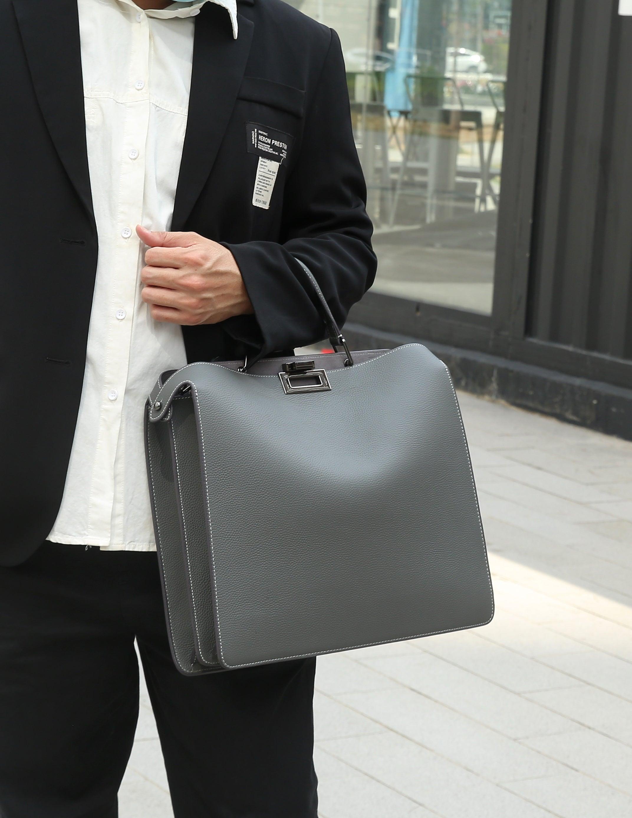 Luxury Togo Leather Structured Brief Tote, Unisex Shoulder Bag & Handbag, Laptop Bag