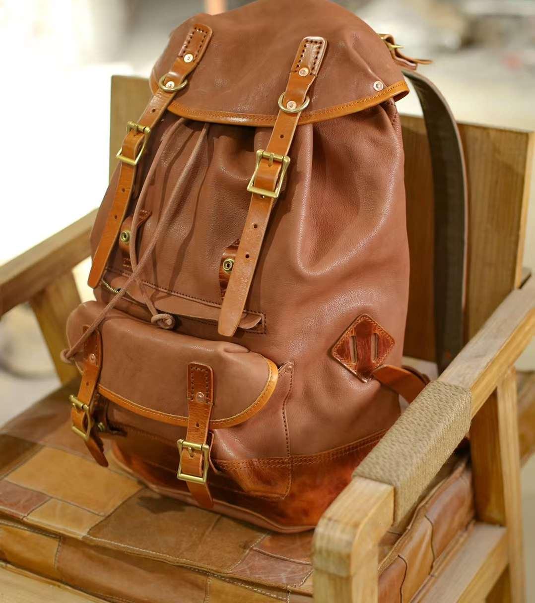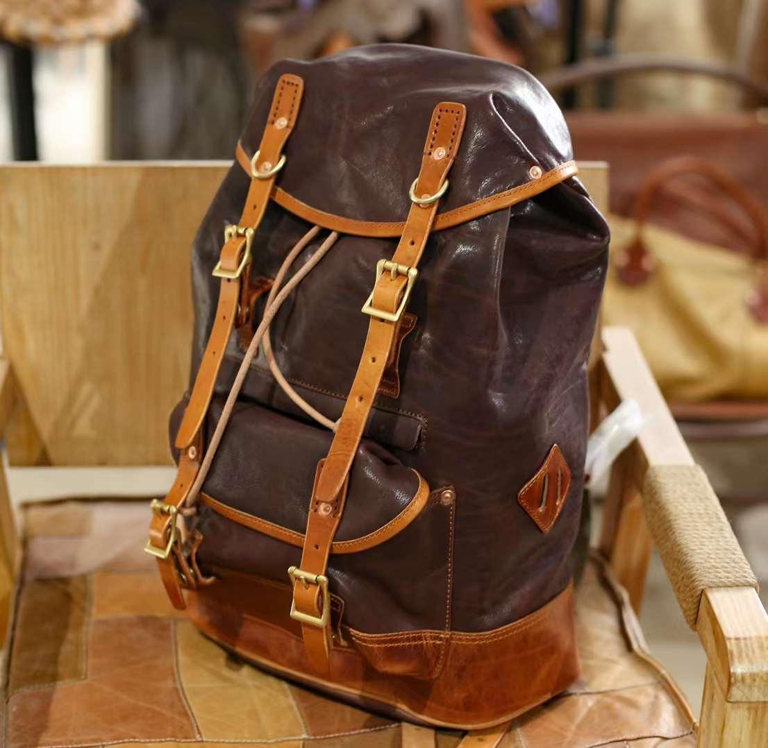 Military Style Cowhide Leather Backpack, Leather Travel Bag, Men Backpack Sack, Sea Sack, Army Backpack, Sailor Bag, Full Grain Leather