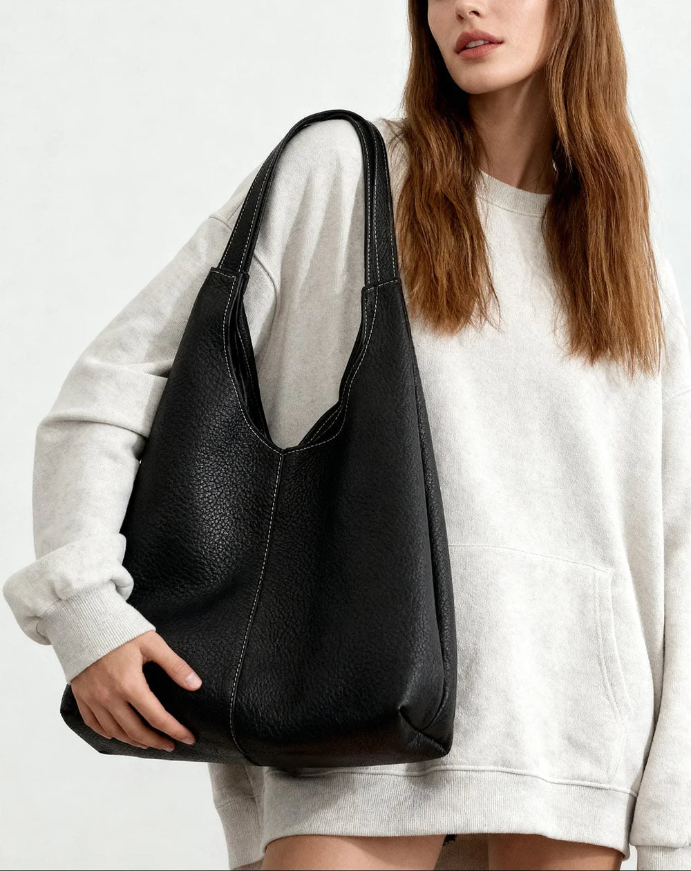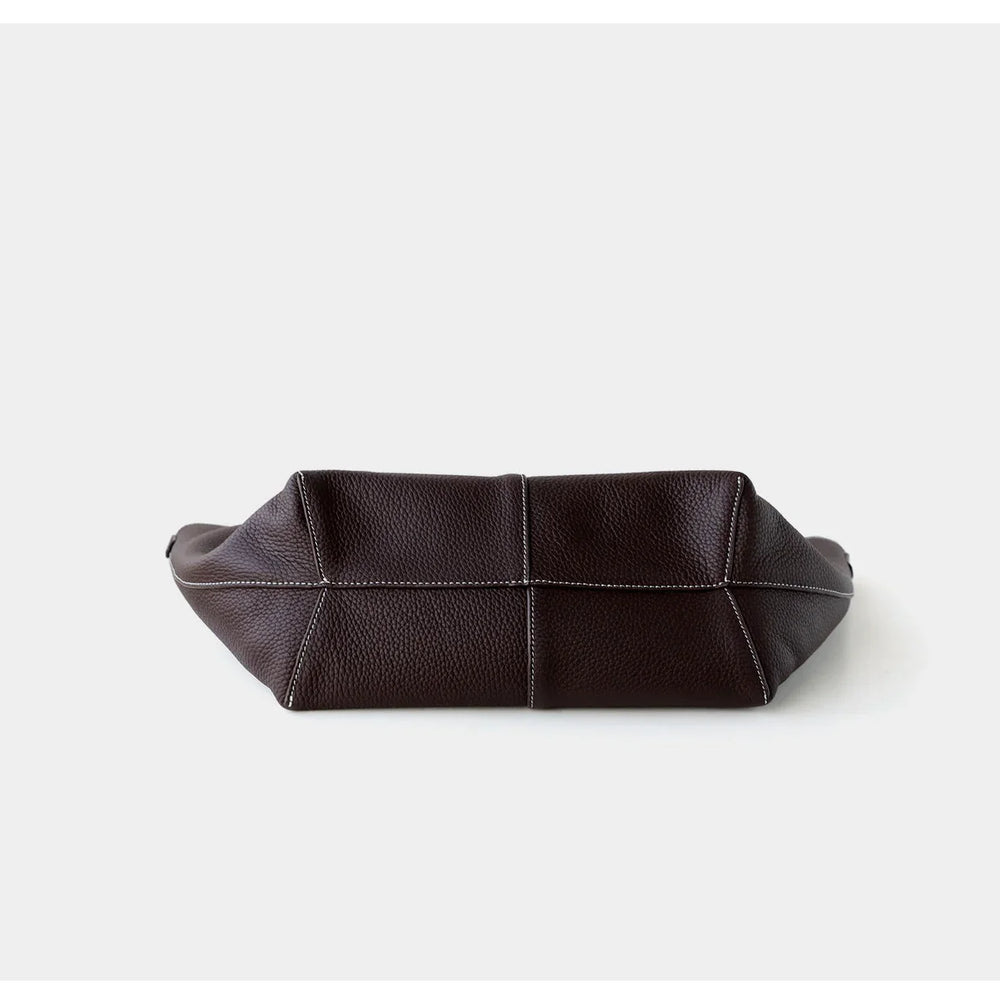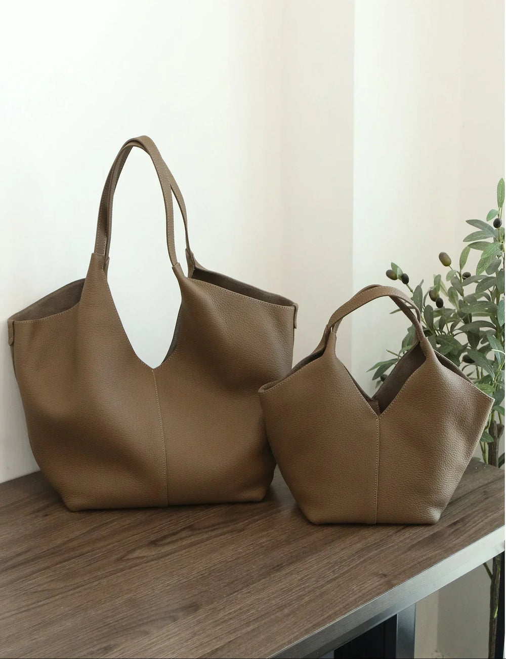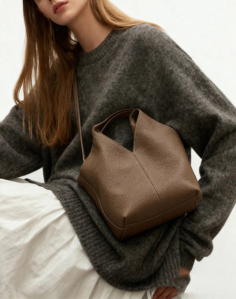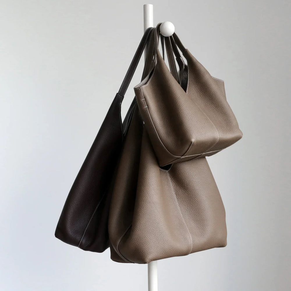 I regret getting a larger size, but I like the quality of the bag. The shape is unique, and the quality of the leather is good. I wish the bag had interior pockets